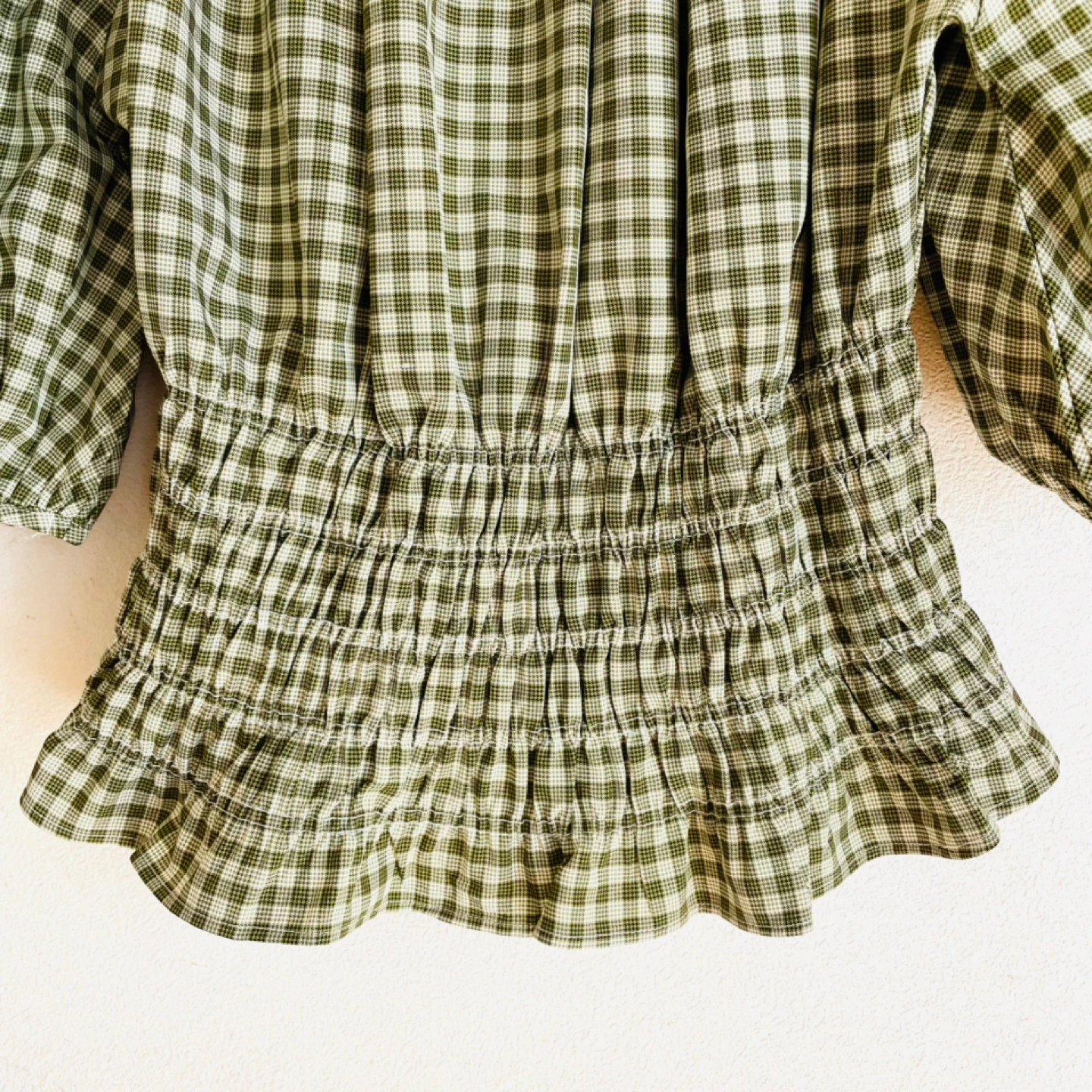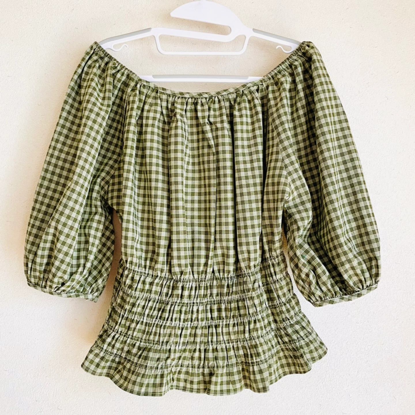 archivesアルシーヴ チェック柄のオシャレなオフショルダーのブラウスです。 ウエスト部分の太めのシャーリングと袖のボリューム感が華奢見えするアイテムです。デコルテもきれいに見せてくれます。 さらっとした生地感で、シワにもなりにくいです。 サイズ M 素材 ポリエステル100% カラー グリーン×ホワイトのチェック柄 五分袖 お渡しは、祖師ヶ谷大蔵駅の他千歳船橋 千歳烏山 八幡山 成城 ユニクロ世田谷千歳台店なども可能ですのでお気軽にご相談ください。