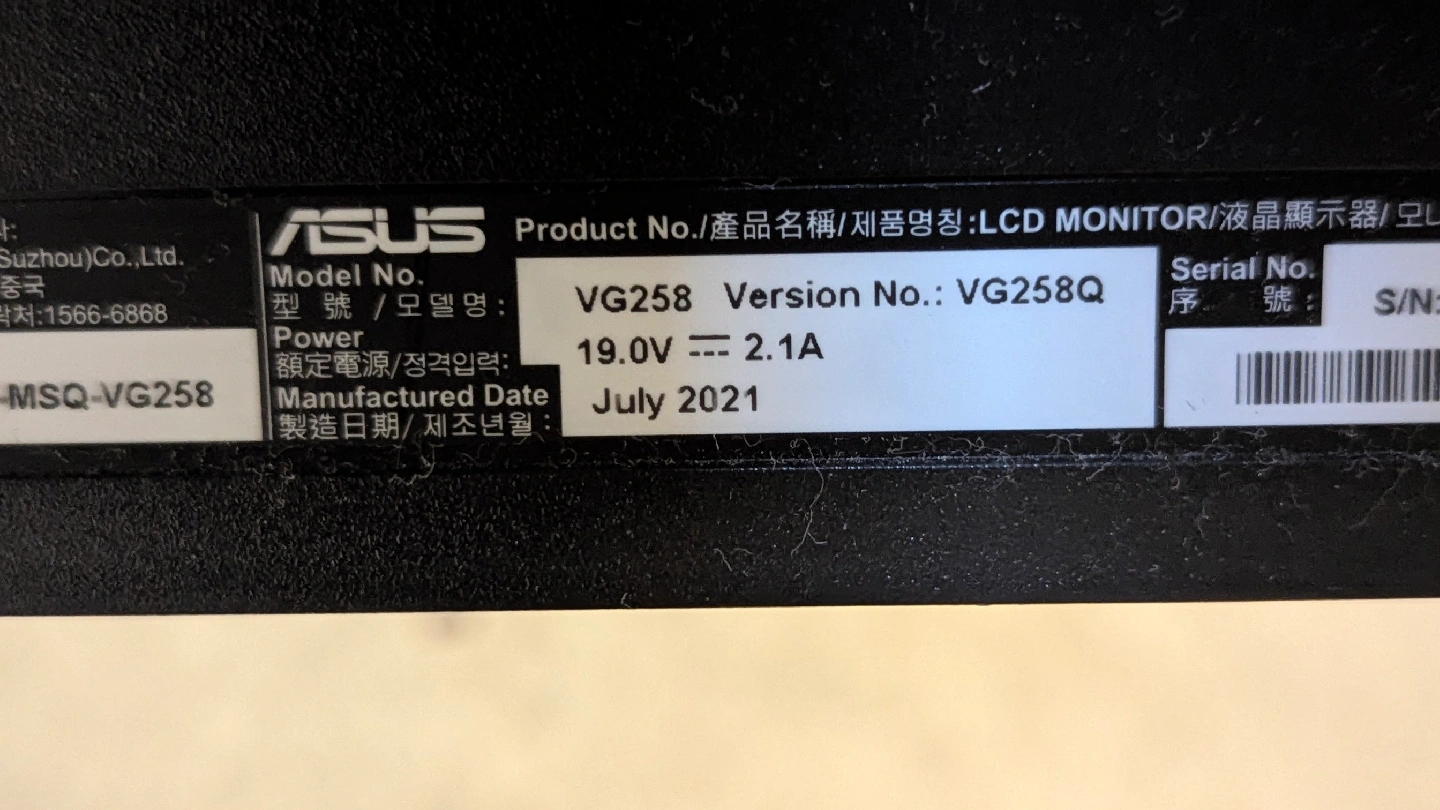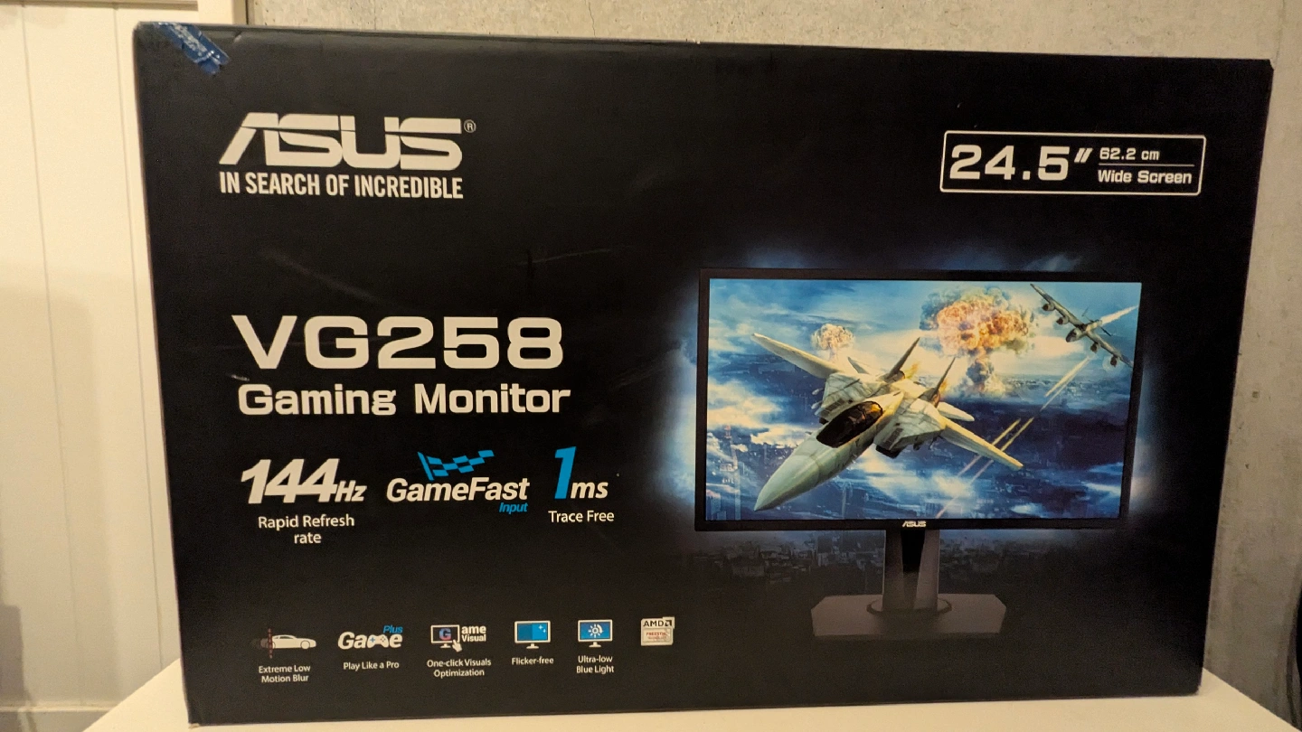 ASUS VG258Q ゲーミングモニター 24.5型のモニターです。 ・本体 ・スタンド ・電源アダプター ・DPケーブル 動作確認済み。 問題なく使用していました。 ご連絡の際は、お取引可能な最短の日時を明記していただけると助かります。 大泉学園駅より徒歩6分ほど。大泉中学校付近の自宅前にて受け渡し。 よろしくお願いいたします。 (他のフリマアプリでも掲載しているため予告なく削除する場合あり)
