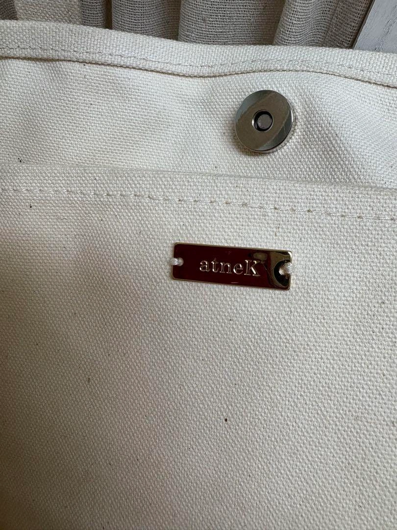 atnaK アトネック トートバッグ2way 高さ 約31.5cm (マチとの境界線がないため置いた状態で計測) 幅 約38cm(本体1番上の部分) マチ 約17cm ※色は映りの具合などで違いがあるかもしれませんがご了承願います。 iPhoneでの撮影のため正しいお色を伝えることが不可能なため色に絶対的なこだわりのある方は検討をお控え願います。 《状態》 使用感・全体的に汚れがあります。 細かいことが気になる方・お店にあるような完璧な商品を希望される方は検討をお控え願います。 ご不明点はお気軽にお問い合わせください。
