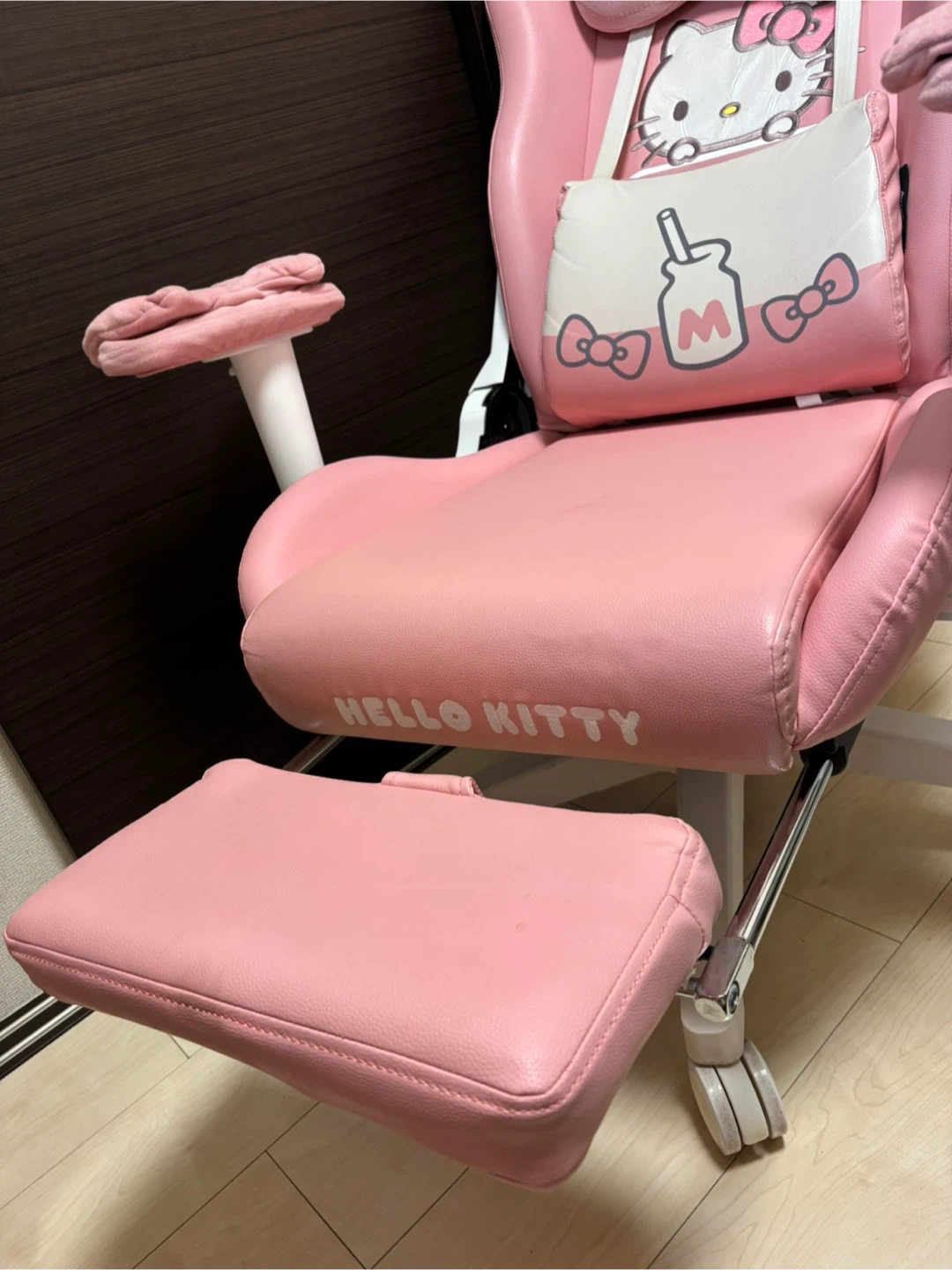 AutoFullのゲーミングチェア(ハローキティモデル)です🎀 【特徴】 ・背もたれはリクライニング可能 ・フットレスト(足置き)付きで快適です ・デザインもとても可愛く、お部屋の雰囲気が明るくなります✨ 【状態】 2022年11月に購入しました。 全体的にきれいな状態です。 もともと座面用のカバーも付属していましたが、現在は劣化が見られるため付属しません。 【受け渡し】 川崎市高津区諏訪エリアにて手渡しのみとなります。 詳細な住所はメッセージにてお知らせいたします。 当日はチェアを1階まで運び出すお手伝いも可能です。 お気軽にお問い合わせください⭐️
