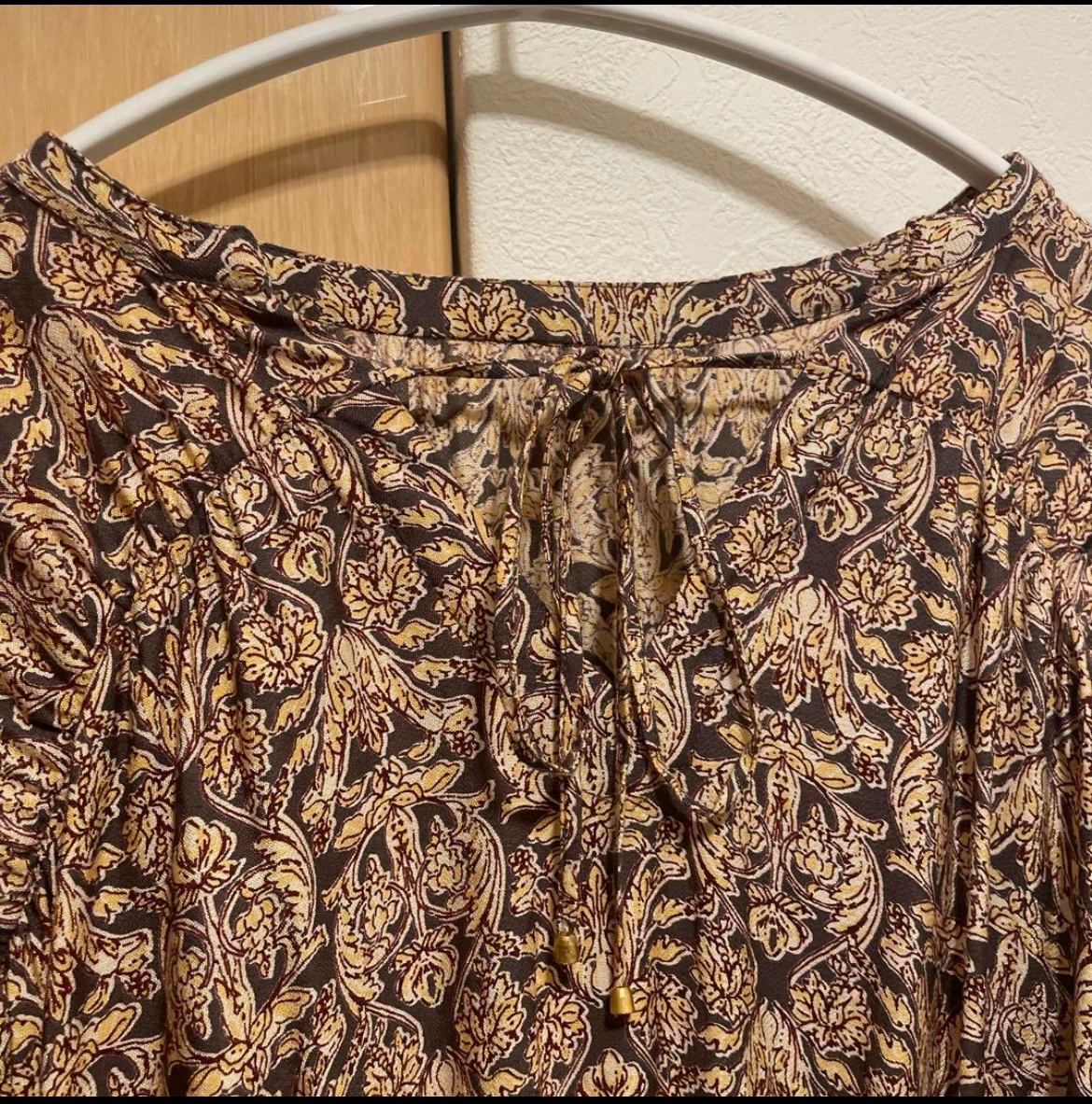 限界お値下げ 着用した記憶もないままに自宅保管品になります。 特筆すべき難は見当たりません。 当方162cm、体に当てた感じでは足の甲に当たる程のしっかりとした長さがあります。 身幅はゆったり目。 ☆これから秋に向けてピッタリです。 ☆裏地無し ☆サイドポケットあり ☆胸元(首周り前)おリボン こちらの商品はフリマアプリにも出品しておりいいねを頂いておりますので突然の削除の可能性がございます。 勿論キャロットでの出品をお安くしております。