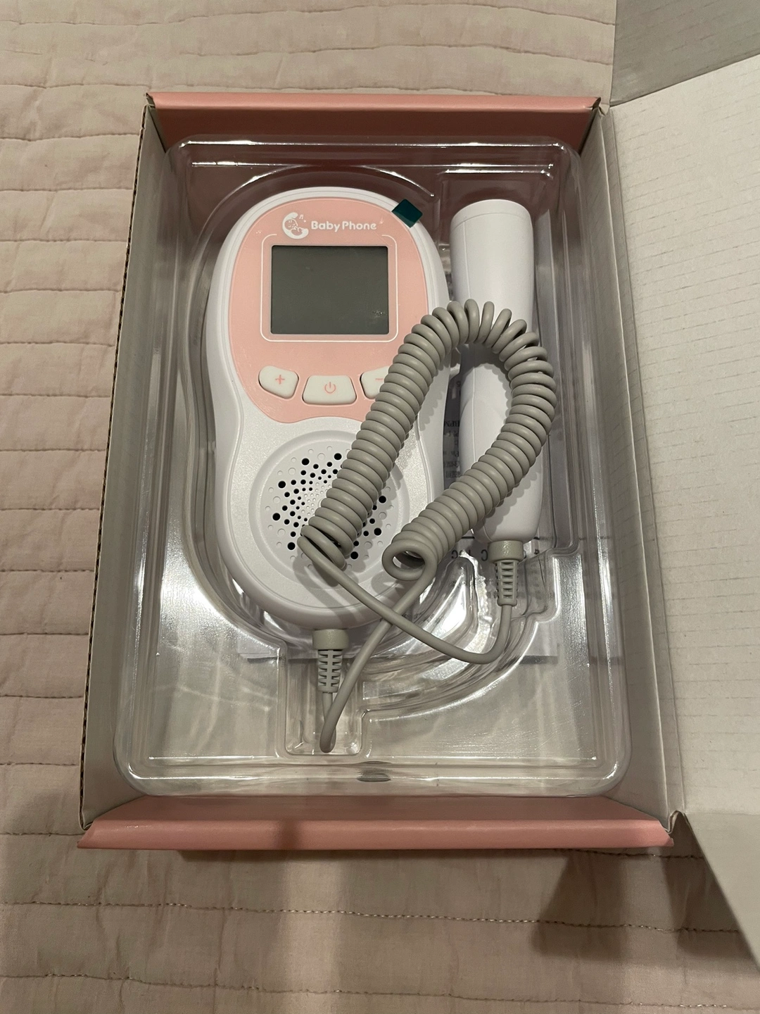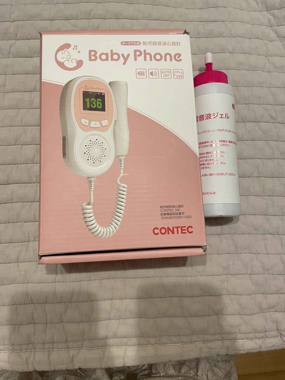 Baby Phone ベビーフォン 胎児超音波心音計 2023年8月頃に購入。 妊娠初期〜中期のお守りがわりで、病院の検診が2週間から4週間になった時、次の検診までの期間赤ちゃんが心配で、おうちでこれを使用して赤ちゃんの心音を確認して安心できました。 実際は2〜3回しか使用せず、目立った汚れはありません。 本体消毒済み。 取扱説明書あります。 ジェル残量7割以上。 定価7,980円 中古品のためご理解いただける方にお願いいたします。 即購入okです。 ペット、喫煙者なしです。