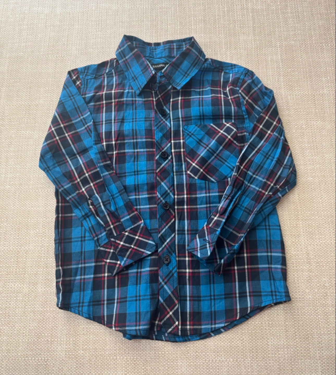 ご覧いただきありがとうございます。 BANANA GROVEのチェック柄長袖シャツ、サイズは110cmです。 - ブランド: BANANA GROVE - カラー: ブルー/レッド/ブラック - サイズ: 110cm - デザイン: チェック柄 - ポケット: 胸ポケットあり どなたかに着ていただけると嬉しいです。 タグの裏面に記名があるため、マジックで塗り潰します。 お渡し前にアイロンをかけますが、畳じわがつく可能性があります。ご容赦くださいませ。