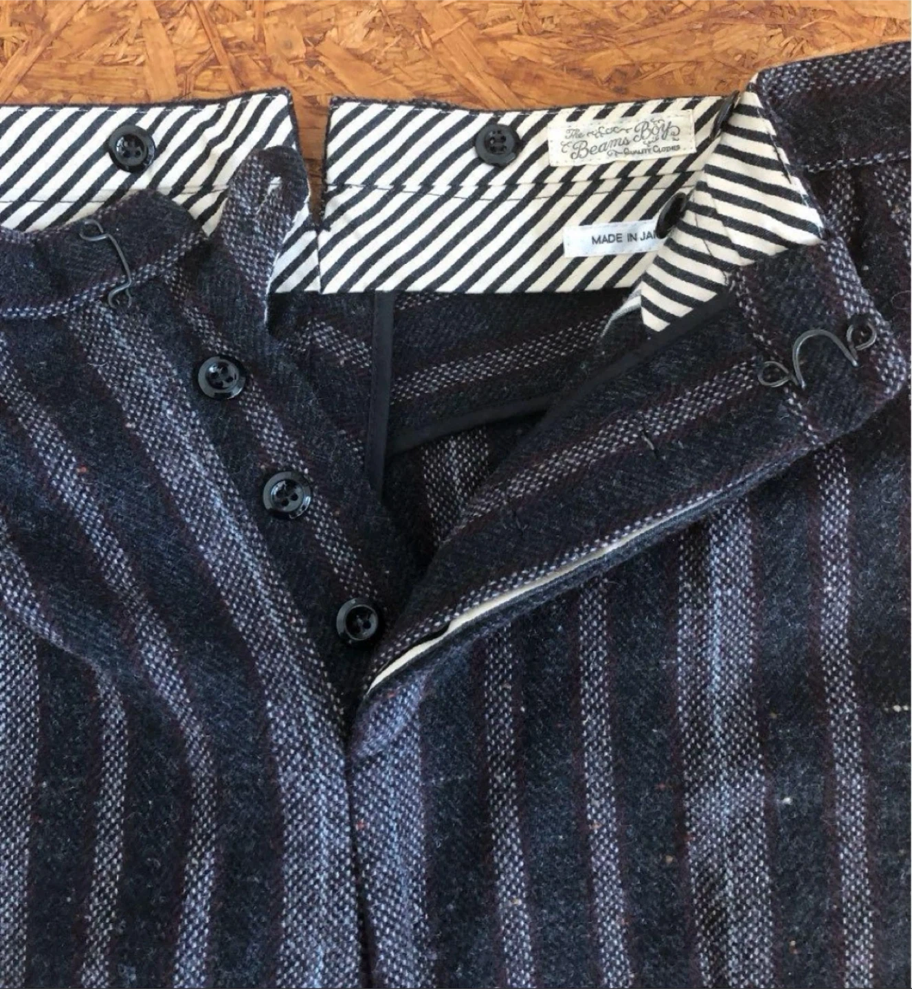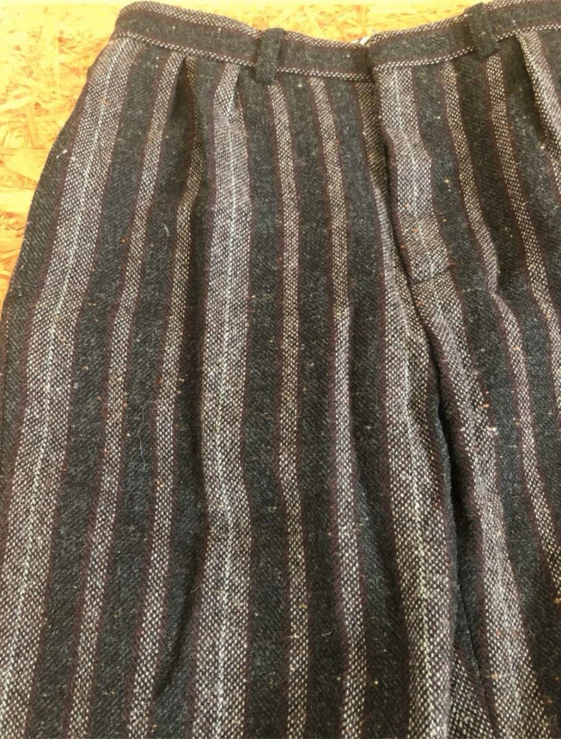 渋谷のビームスで購入したウール素材のパンツです。 もともとセンタープレスが入っていましたが、フラットな状態でもお好みでお召し頂けると思います。 メンズライクなスタイリングに是非どうぞ。 サイズ表記:0 ややゆったりした作りなので、S〜Mサイズ相当 股下60cm、ウエスト72cm 素材:毛70% ポリエステル25% ナイロン、アクリル 日本製 サイドポケット2つ、後ろポケット1つ あくまで中古品ですので、ご理解の上ご購入下さい。 お引き渡し場所はこのほか、代田橋駅、笹塚駅、下北沢駅等ご相談ください。よろしくお願い致します。