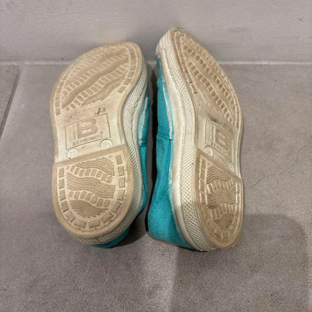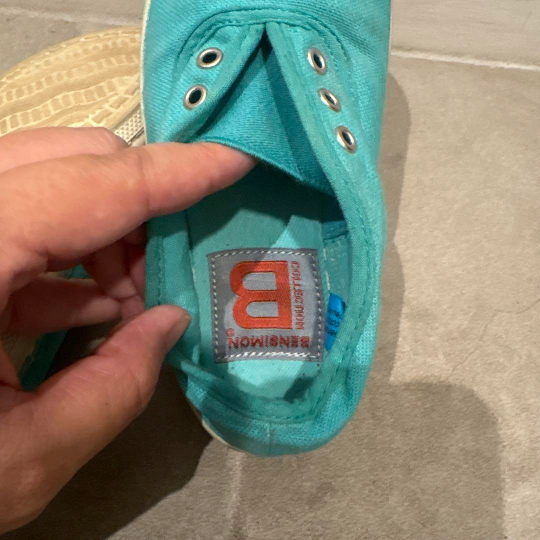 フランス発のBENSIMON(ベンシモン)のキャンバススリッポンです。 軽くて履きやすく、ゴム入りで脱ぎ履きも簡単です。 シンプルなデザインで、通園やお出かけにも合わせやすいかと思います。 カラー:ターコイズブルー サイズ:26(約16.5cm/8½) 素材:キャンバス×ラバー ブランドタグ・ロゴ入り 【状態】 全体的にやや使用感はありますが、まだまだご使用いただけるかと思います。 ソールに多少の擦れや汚れがあります(写真参照)。 目立つ破れや大きな ダメージはありません。 【おすすめポイント】 •軽量で柔らかく、子どもの足にも優しいフィット感 •おしゃれなフレンチカラー •保育園・幼稚園・公園遊びにもぴったり ご希望の方はお気軽にご連絡ください。