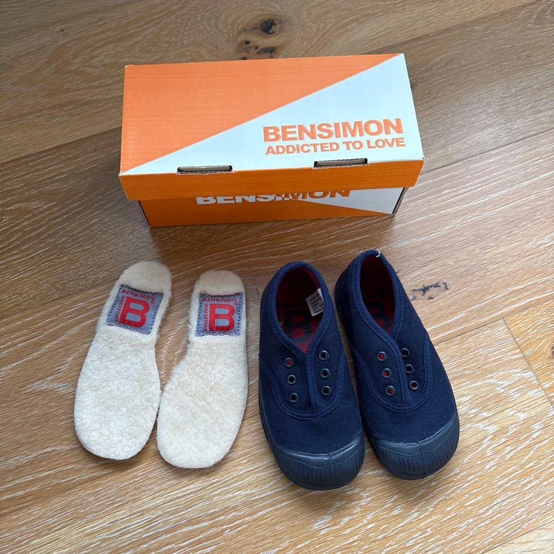 ネイビーのBENSIMONスリッポンです。ラバーソール、インソール付き。 ブランド: BENSIMON モデル名: スリッポン 色: ネイビー 付属品: インソール ソールの素材: ラバー サイズ:23表記 13.5cmくらい スリッポン型ですがキレイめのお出かけ用にも使えるしっかり感があります。モコモコのインソールが付いています。 専用の箱が不要な方は500円お値下げ可能ですので、ご連絡ください。 ご希望の方はお気軽にご連絡ください。
