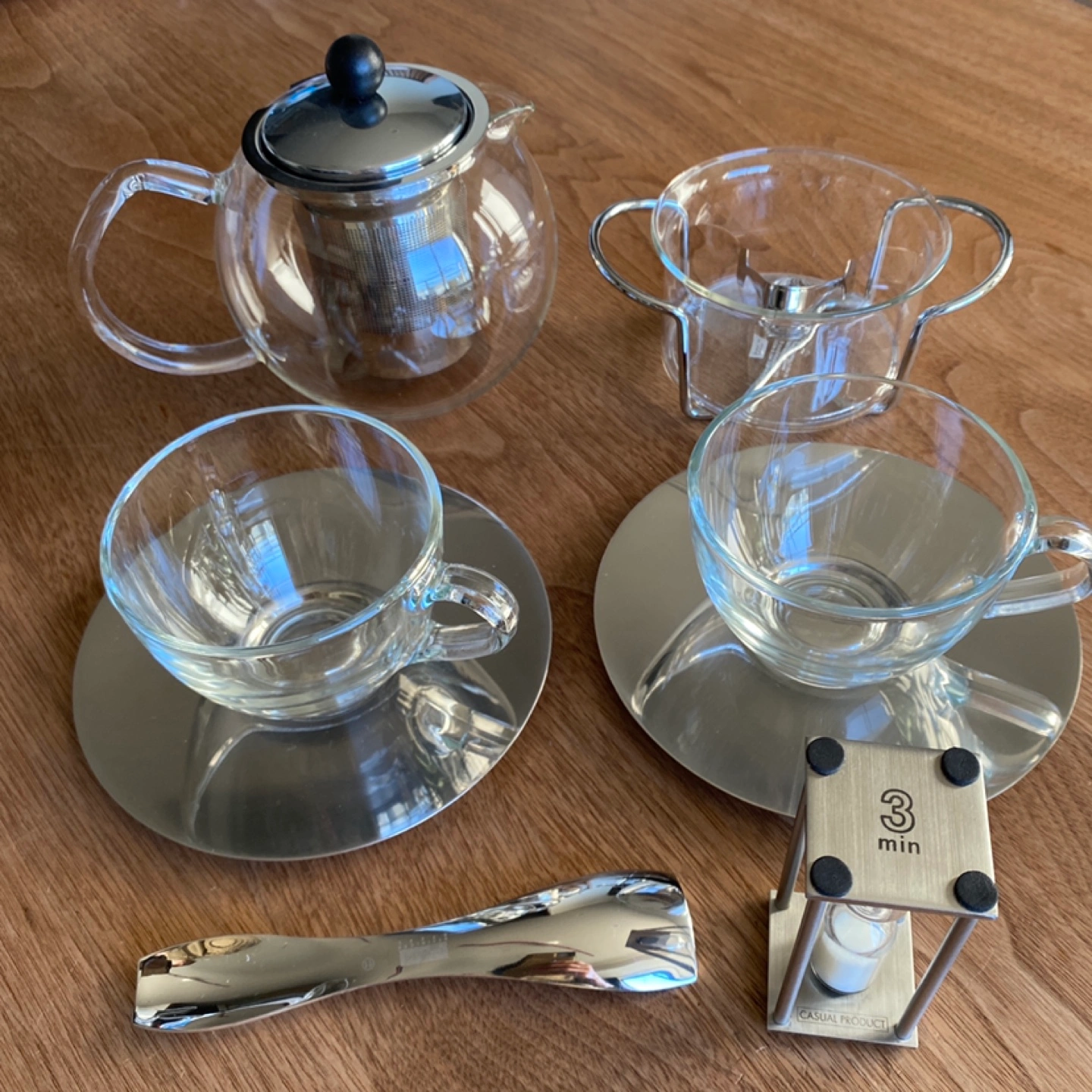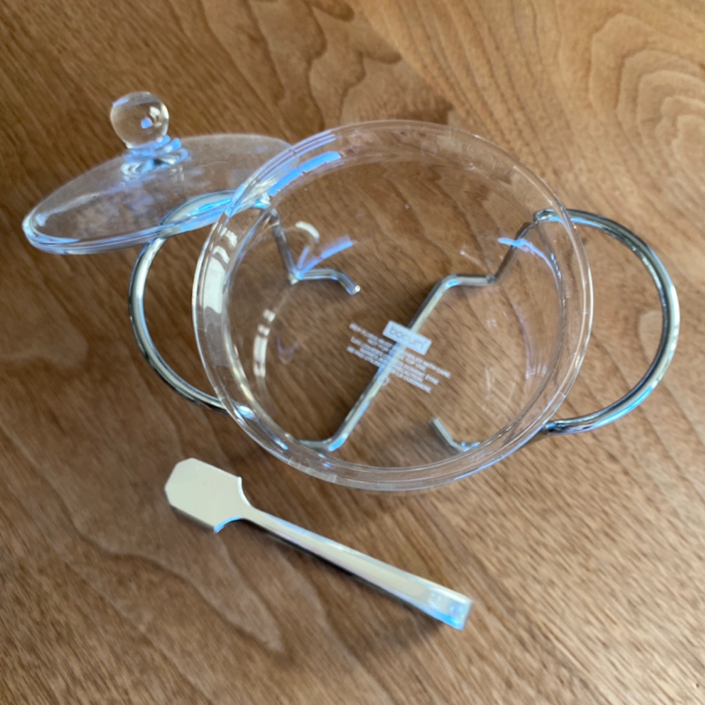 ポダム アッサム ティーセット bodum ASSAM アッサム ティープレス 0.5L シュガーポット シュガートング付き ティースプーン 茶さじ 砂時計 3min カップ&ソーサー 2客 bodumのティーポット、味や香りが移らない高品質のガラスビーカー、ガラスハンドルです。 好みの濃さにお茶を抽出できるステンレス製のプランジャーに、過抽出を防ぐステンレス製のフィルターを採用しています。 紅茶、ハーブティー、フレーバーティー、緑茶、中国茶等様々な茶葉の本来の香りを楽しめます。 飾って美しいので未使用のまま自宅保管していました。 飾り棚を廃棄する事になり使用してくれる方へお譲りしたいと思います。 専用の箱はありません。 代用の箱に入れてお渡しします。
