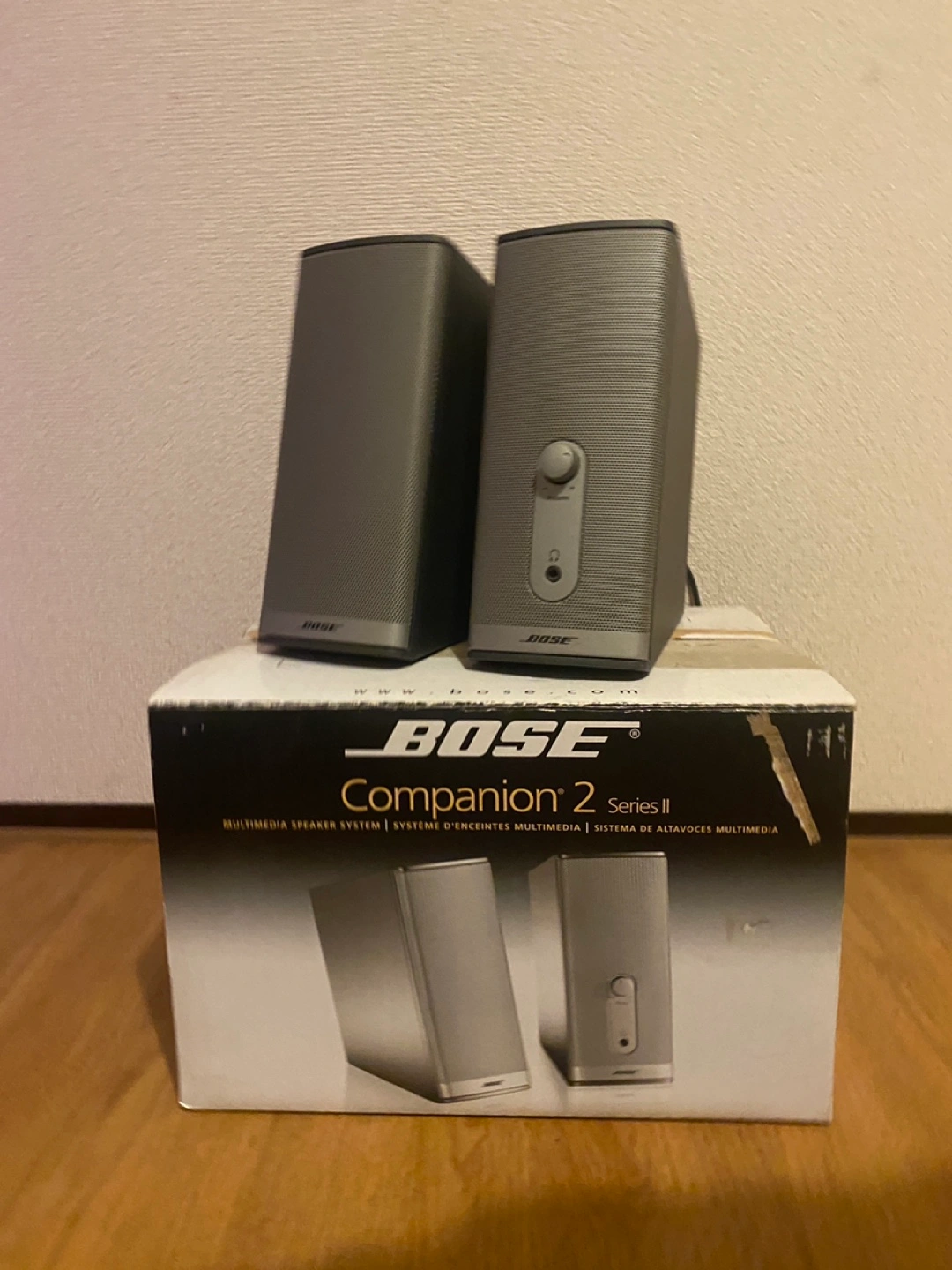 長年PC用スピーカーとして使用していたBOSEのスピーカーです。 某家電量販店で元値11,980円でした。 こちらの品番は現在生産中止になっているようですが、後続よりこちらの方がいいというレビューも見られました。 中央に向かうように置くと音が立体的に聴こえて良かったです。 使用していたメインPCをデスクトップ型からノートに変えて、使用頻度が少なくなったので販売します。 (※デバイスにはイヤホンジャックでの接続、電源はコンセントとなります) 通電確認済です。音も問題なく出ます。 ブランド:BOSE 商品状態:10年以上使用、外箱にテープ跡有 内容物:スピーカー、外箱、中の緩衝材、説明書、ケーブル一式 ※スピーカーとケーブルは全てアルコールで拭いてます。 室内での利用のみですが、長年使用していたため中古品であるということをご了承の上、ご購入ください。 ご不明点等ございましたらご連絡ください。