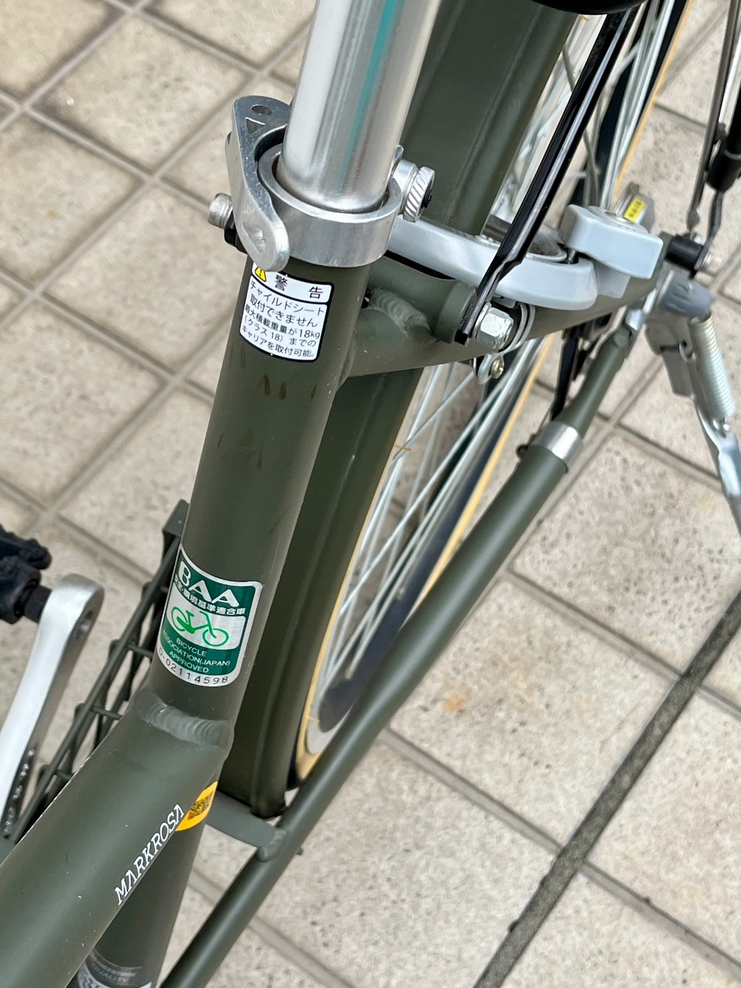 ブリヂストン マークローザ 26インチ ●手渡し 限定とさせていただきます。 自由が丘周辺でのお渡し希望です。 ご希望の方はコメントでご連絡ください。 ●2020年 約1年間、月4,5回使用し、その後は使用せずにカバーにかけ、たまにケアをしていました。 ●オプションカゴ付き ●鍵2本、取扱説明書付き ●転倒歴、衝突歴、パンク歴はありません ●防犯登録解除してお譲り致しますので、再登録をよろしくお願いいたします。 マットなカーキ(モスグリーン色)に、ハンドルとサドルのブラウンがマッチしていてお気に入りの自転車でした。妻が妊娠する前に買ったものだ。今はママチャリにしか乗らない。 ご縁のある方ぜひ乗ってください(^^) よろしくお願いします。