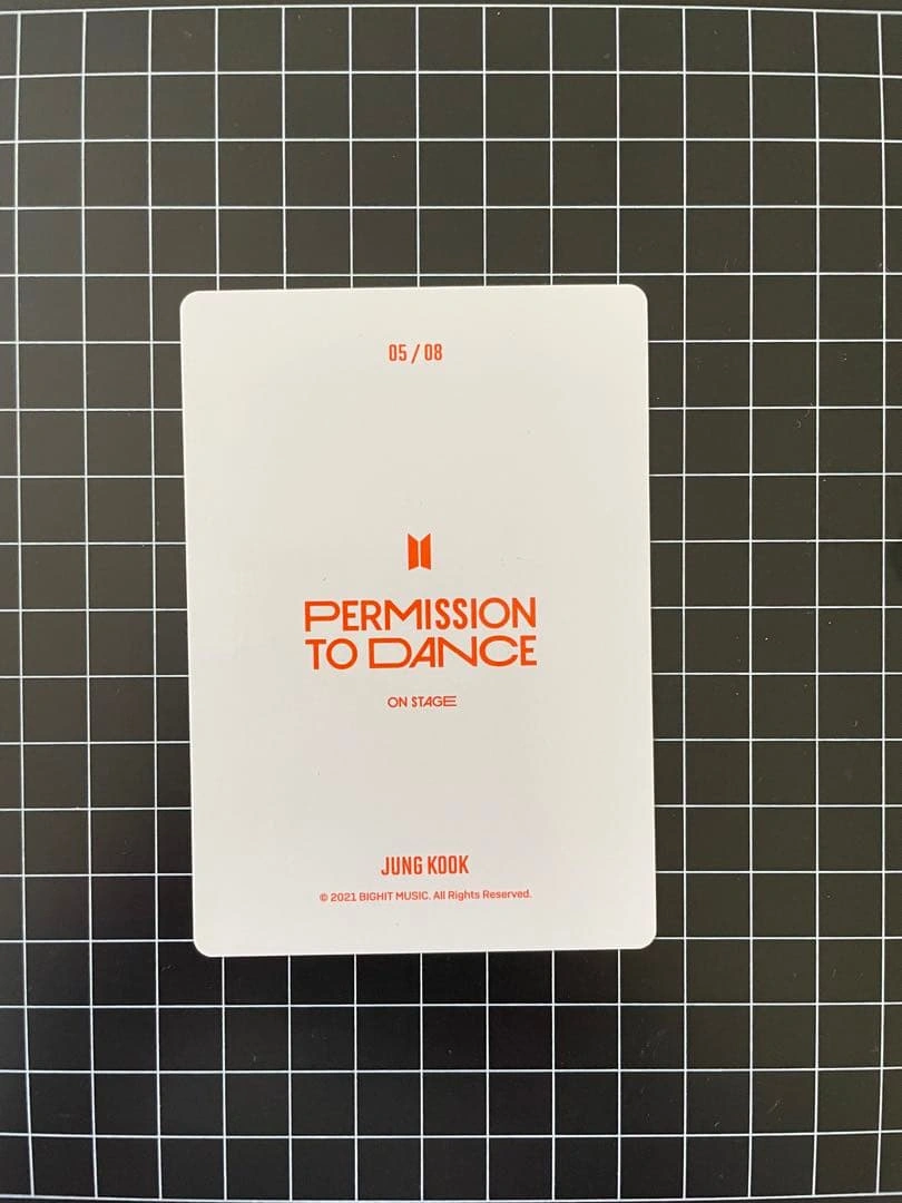 あたたかさ見ていただきありがとうございます! BTS Jungkook ♡︎ Permission To Dance ミ二トレカ これは正式な製品です。 目立った傷や汚れ等はありませんが、包装 + 暗所に保管しておりました。 梱包方法; バブルメーラー、トップローダー、ハードケース、防水加工 ご希望の方はお気軽にご連絡ください。