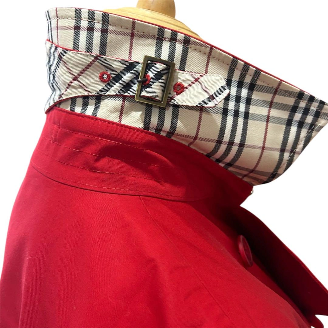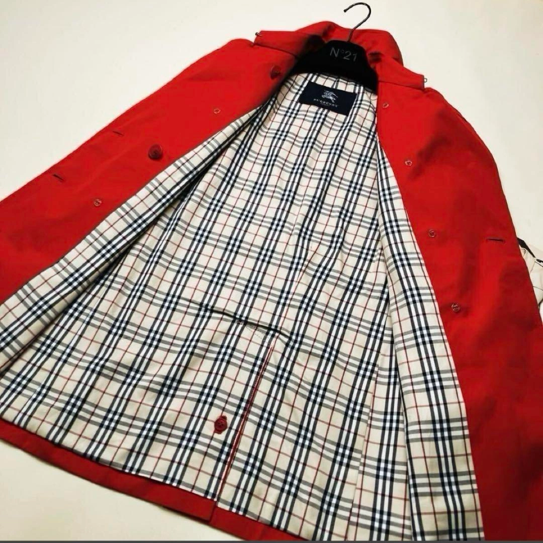 BURBERRY LONDONのトレンチコートです。鮮やかなレッドカラーに、裏地と襟元にはブランドアイコンのノバチェックが施されており、上品なデザインです。 大人気のレッドのトレンチコートで、ノバチェックがアクセント! 丈感の丁度良く、とっても可愛いです♪ 11号と大きめなので、使いやすいトレンチコートです! 参考価格12万 カラー: レッド系 サイズ:11 着 丈:約76cm 身 幅:約52cm 肩 幅:約42cm 袖 丈:約61cm ※サイズ表記に関しては製造国によって違いがあります。平置きでの実測値を参考にしてください。 【素 材】表地:綿 【ランク】4 【状態】フロントシミあり 5 数回使用程度の超美品 4 多少の傷・汚れがあるが程度良好の美品 3 一般的な使用感のあるお品 2 傷・汚れがあり使用感を感じるUSED品 1 傷・汚れなどが多く見受けられる 平置きで直線でしているおります。多少の誤差はご容赦ください #バーバリー #Burberry #トレンチコート #ノバチェック #レッドコート #バーバリーロンドン ご希望の方はお気軽にご連絡ください。