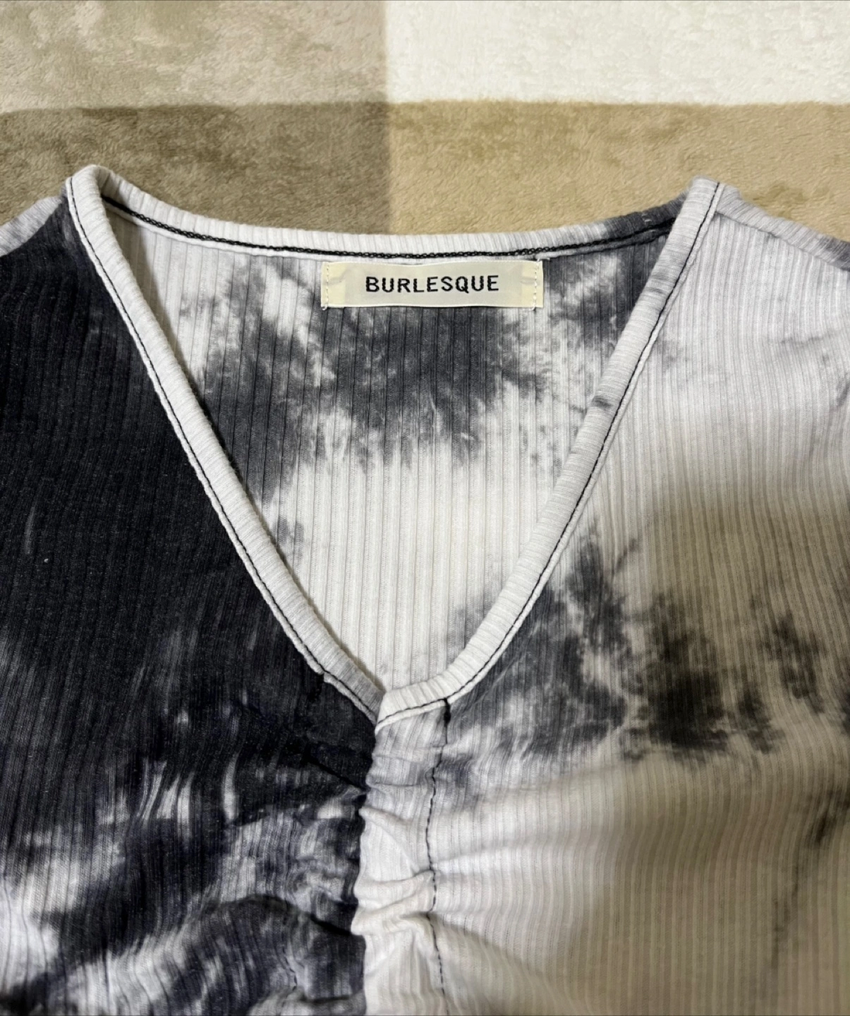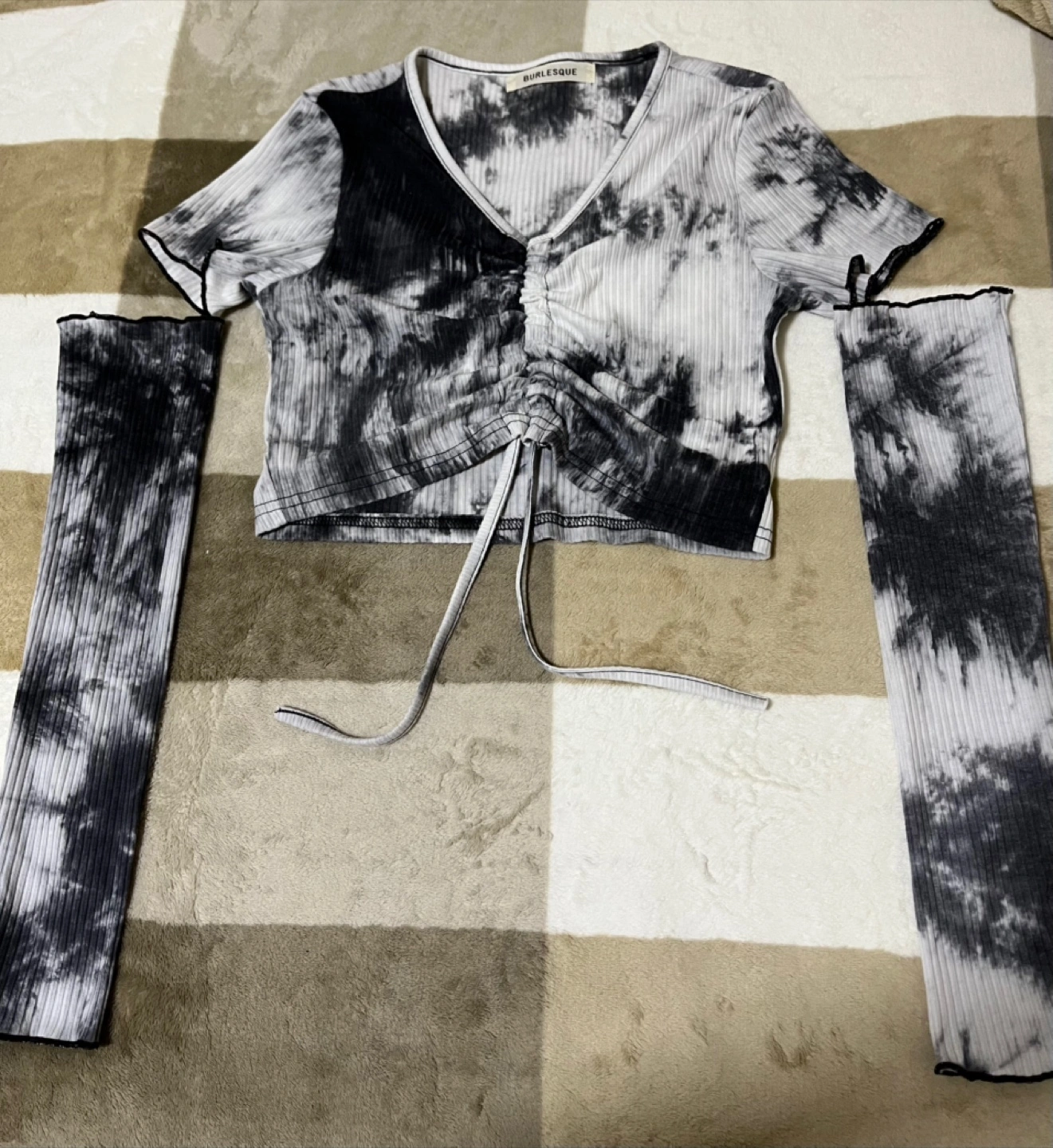 Burlesqueのタイダイ柄トップスです。 伸縮性のあるリブ素材で、体にフィットします。別途スリーブも付属します。 【ブランド】 Burlesque 【カラー】 ブラックxホワイト 【素材】ポリエステル、ポリウレタン サイズにつきましては、写真と詳細をご確認の上、ご検討ください。中古品のため、写真を参考にご購入ください。返品はお受けできませんので、予めご了承ください。 ご質問がありましたらメッセージをお送りください。 よろしくお願いいたします。 武蔵小山駅または学芸駅でお待ちください。