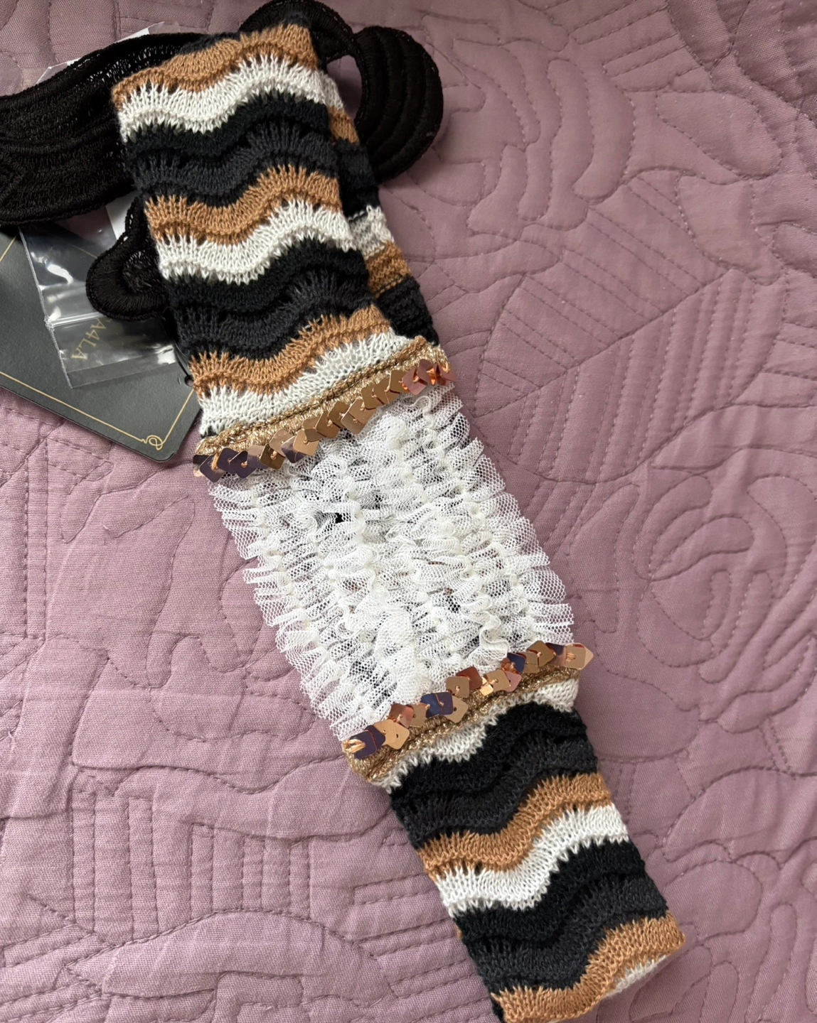 【ca4la】カシラヘアバンド ニットやレース、スパンコールをあしらった繊細なアールデコデザインのヘアバンド。 華やかですが、落ち着いた色味でどんなスタイルにも合わせやすく、使いやすいと思います。 サイズ: F カラー: ブラック 〈幅〉 ニット部分: 約4.0cm レース部分: 約6.5cm リボンモチーフ: たて約10.0cm×よこ約10.0cm こちらのお品はとても気に入って購入しましたが、なかなか使用する機会がないため、どなたか使ってくださる方がいらっしゃればと思い、出品致します。 商品状態:新品、未使用・室内保管 自宅保管品であるということをご了承の上、ご購入ください。 ご不明点等ございましたらご連絡ください。