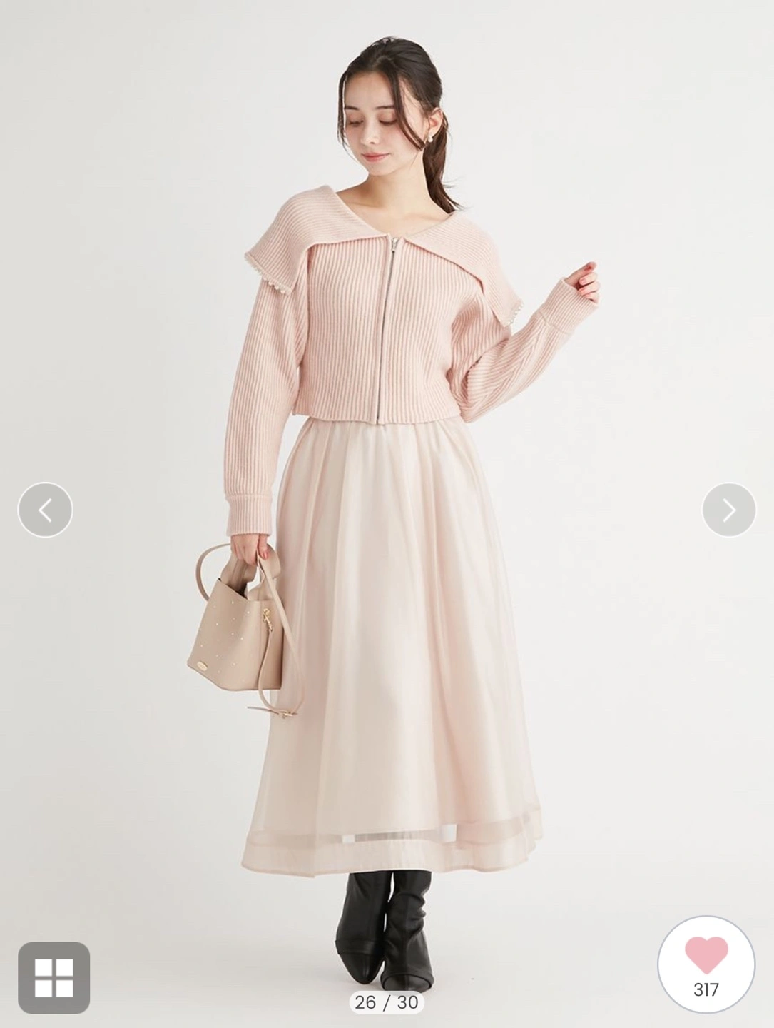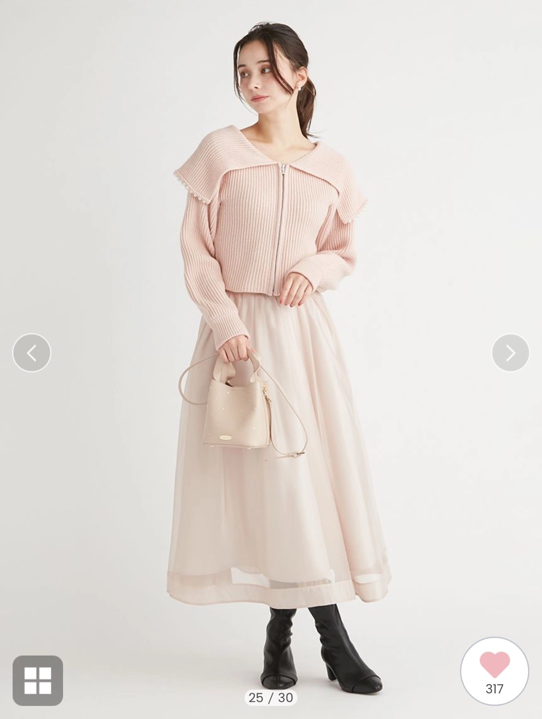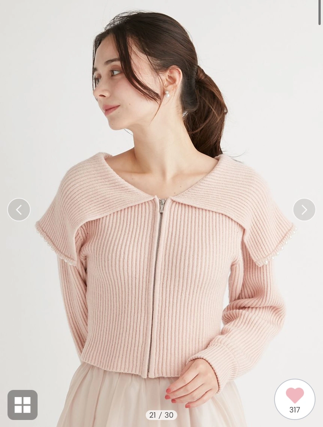 CELFODE ジップパールカーディガン お色・ピンク size・FREE 【新品・未使用・タグ付き】 . FREE 肩幅:36/着丈:41.5/ そで丈:57.5/バスト:77 【USAGI限定カラー:PNK】 ピンク×白パールの組み合わせが可愛いカーディガン。 暗くなりがちな秋冬のコーディネートの差し色になるような明るい色で限定色を作成しました。 ブルべ・イエベ問わず、どなたにも使いやすいような優しいピンク色に仕上げました。 柔らかで肌当たりの良い糸を使用したニットカーディガン。 セーラーのようなビックカラーが特徴的なデザイン。 衿端にパールを施したフェミニンなディテールがポイントです。 凹凸感のある編地にすることで、甘くなりすぎないようにしました。 シルエットはややコンパクトにし、ボリュームのあるボトムやハイウエストボトムなどと相性抜群です。 透け感:なし 裏地:なし 伸縮性:あり 光沢感:なし 生地の厚さ:やや厚手