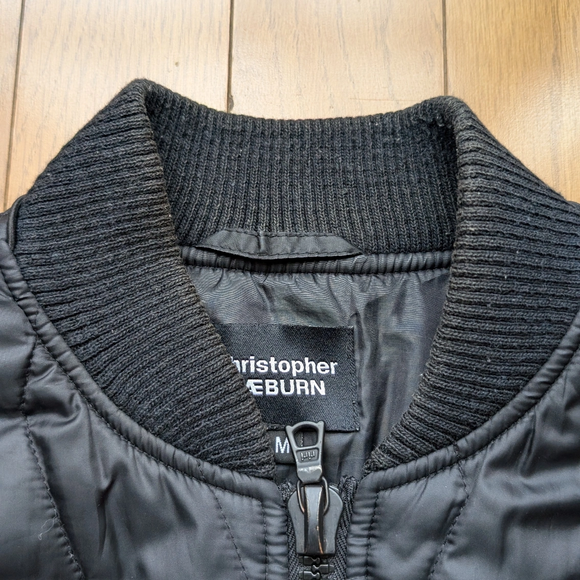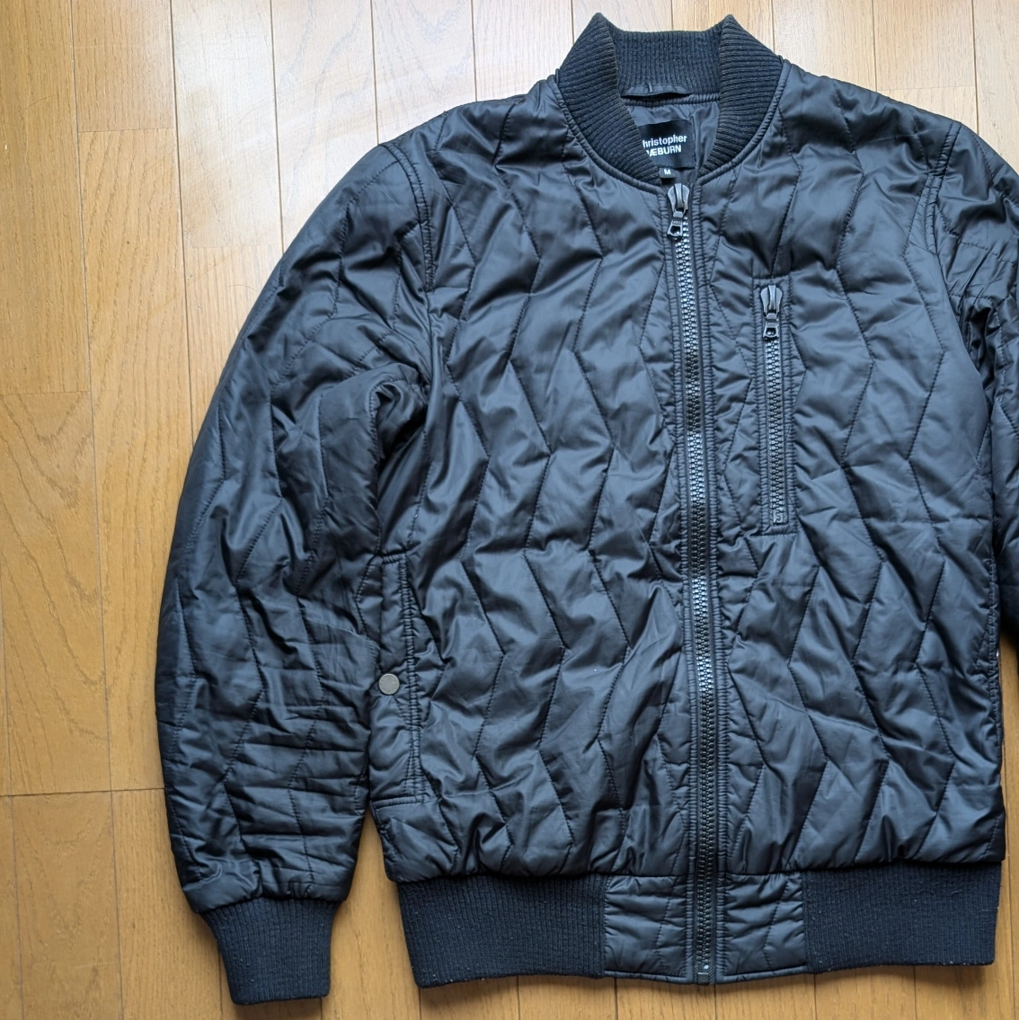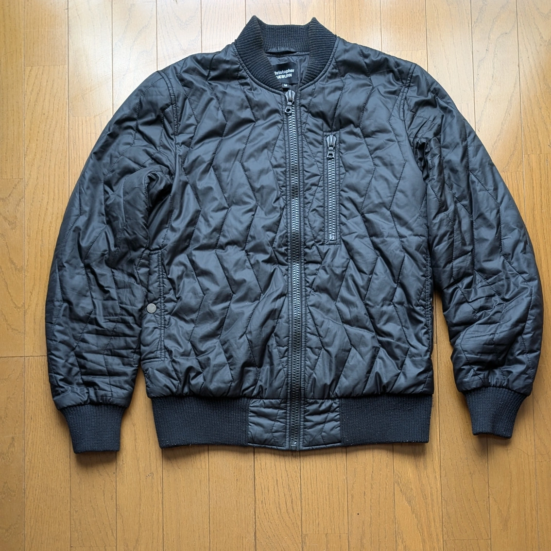イギリスのファッションブランド「クリストファー レイバーン(後にレイバーン(RÆBURN))」のMA-1型のキルティングジャケットになります。 同タイプのアウターは多いですが、キルティングで品のあるシルエットは中々ないと思います。 襟元に色褪せありです。 肩幅...43cm 身幅...49cm 袖丈...65cm 着丈...60cm 人気モデル...MA-1 カラー...ブラック