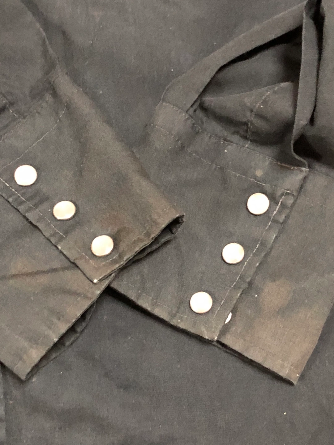 CHUTE#1 ウエスタンシャツ ・カラー:ブラック ・刺繍デザイン ・使用感あり ・カラー飛び散り染みあり。 サイズ 肩幅:43cm 身幅:44,5cm 身丈:70cm 袖丈:57cm 素人採寸の為、誤差はご理解下さい。 いつだかよく覚えていませんが代々木体育館 で行われた、美容師のフリーマーケットにて購入した物です。 当時、胸の刺繍デザインが気に入り購入しました。これから先、着用する事の無い為出品致します。 当方、美容師をしており、それに伴いカラー剤の飛び散り染みが所々ございます。 古着になる為、ご理解下さい。 どうぞ宜しくお願い致します。