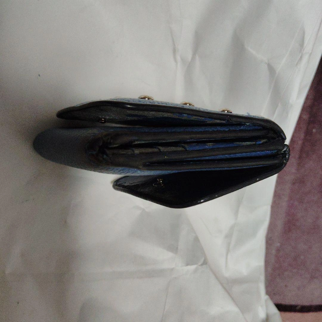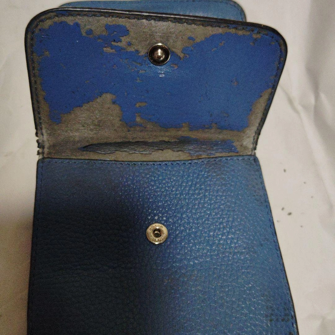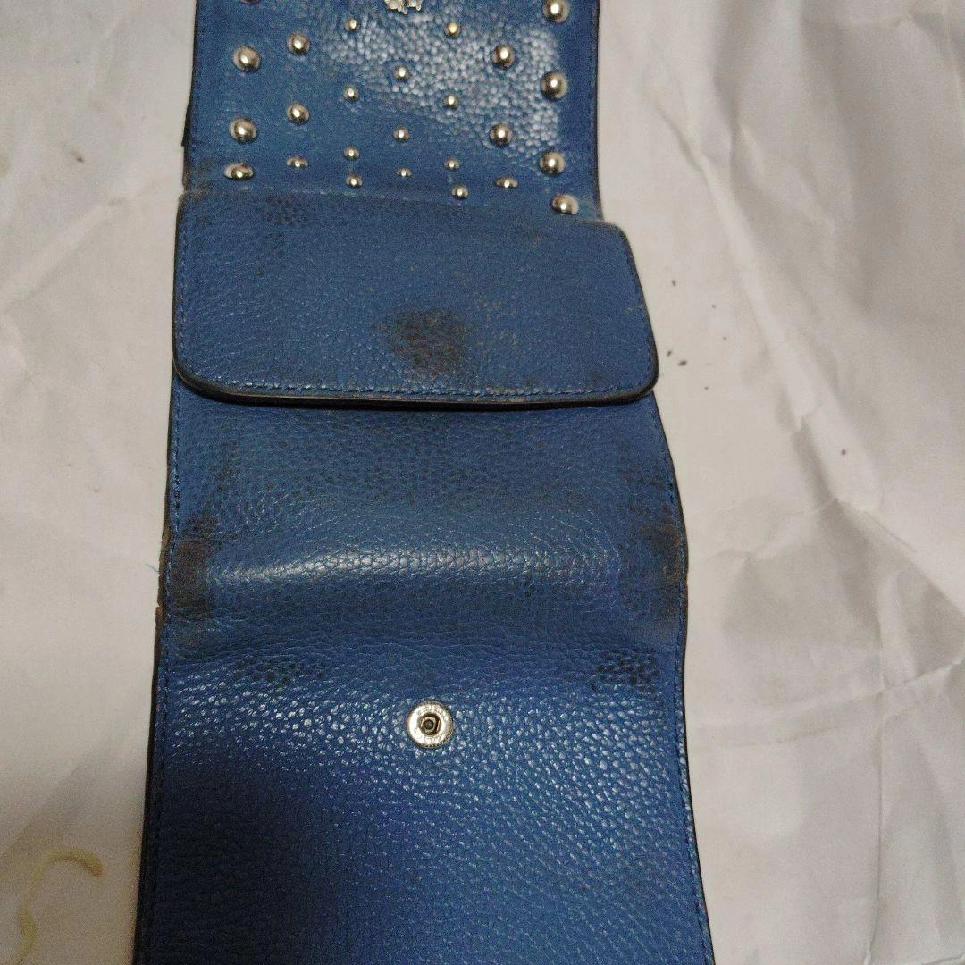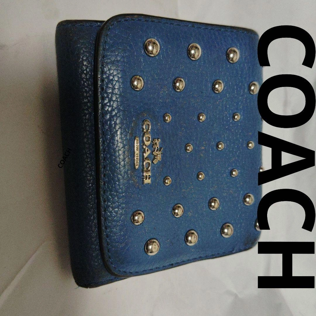 コーチのスタッズ付きの青い折り財布です。 海外の空港の免税品店で購入しました。 使い込んで内側がボロボロですが、外は割合きれいです。 コンパクトで持ち運びやすいサイズ感。ブルーのレザーにスタッズがアクセントになっています。 使用に伴うキズや汚れが多数あります。状態は写真にてご確認ください。 まだお使いいただけるお品ですので、お手頃価格でお探しの方におすすめです。 ※中古品にご理解いただける方のみご購入をお願いします。 サイズ 縦:約9cm 横:約11cm マチ:約3cm - ブランド: COACH - カラー: ブルー 水色 - デザイン: スタッズ付き 水玉 ドット - 素材: レザー - 状態: 内側にダメージあり ご希望の方はお気軽にご連絡ください。