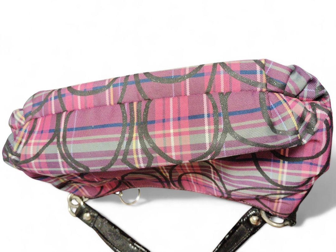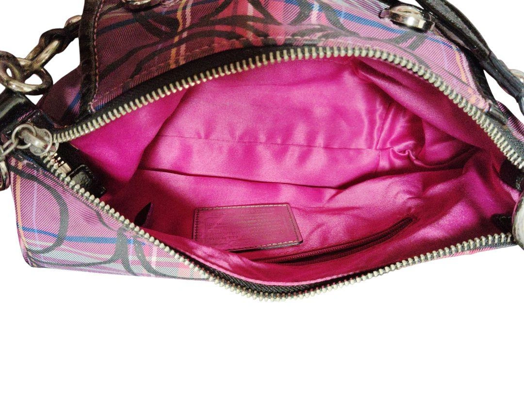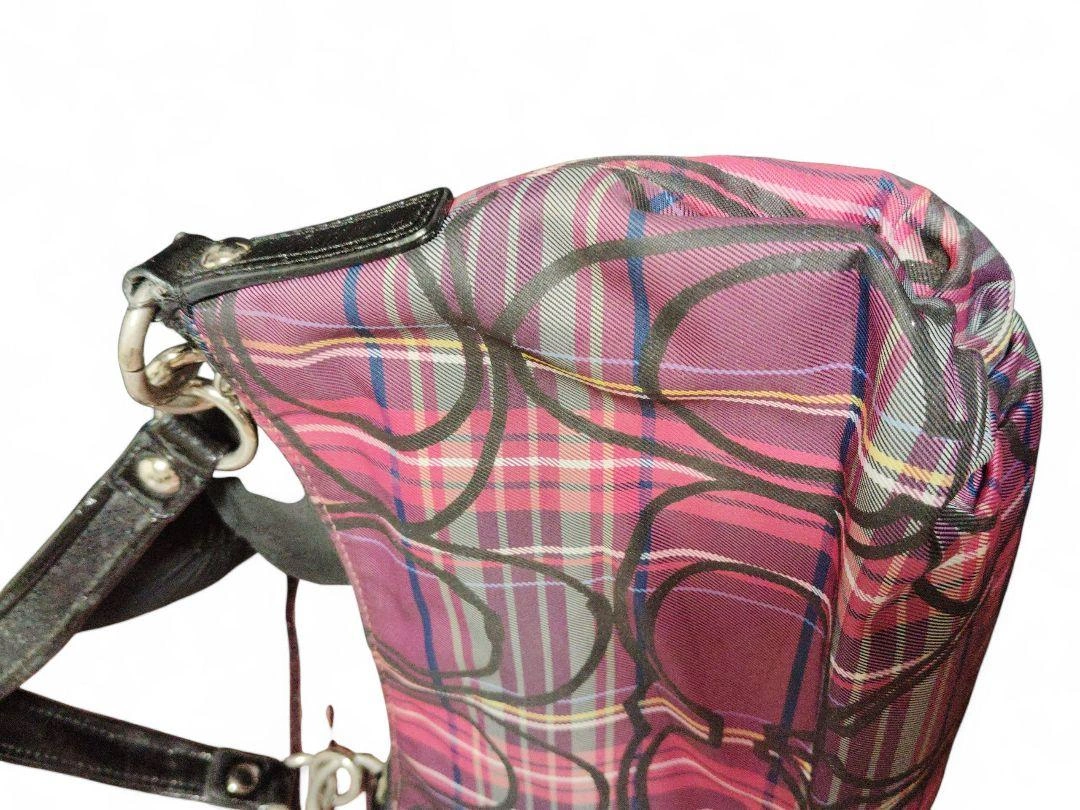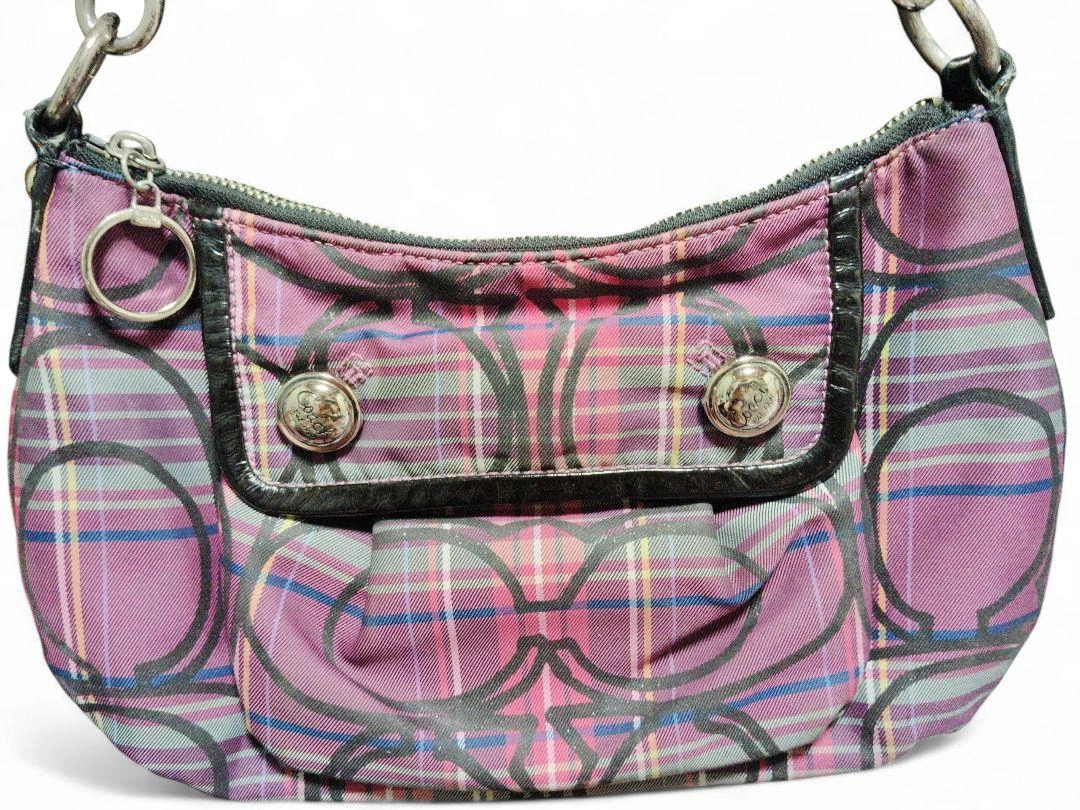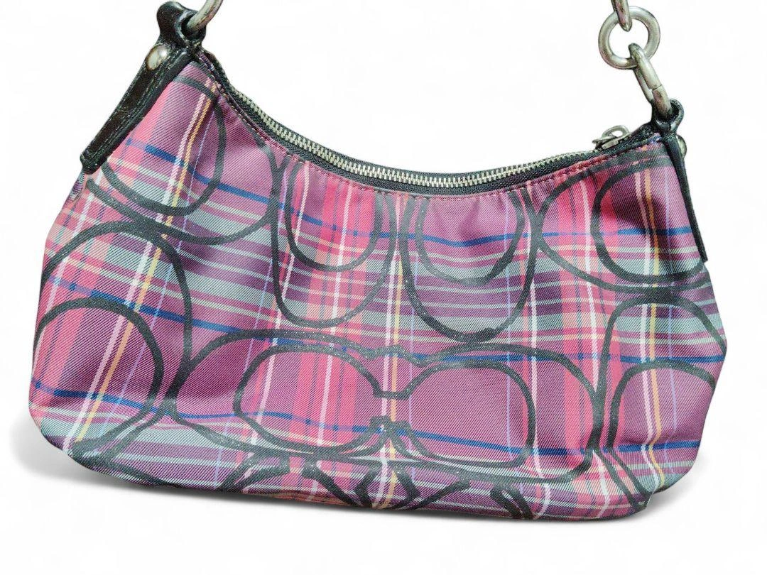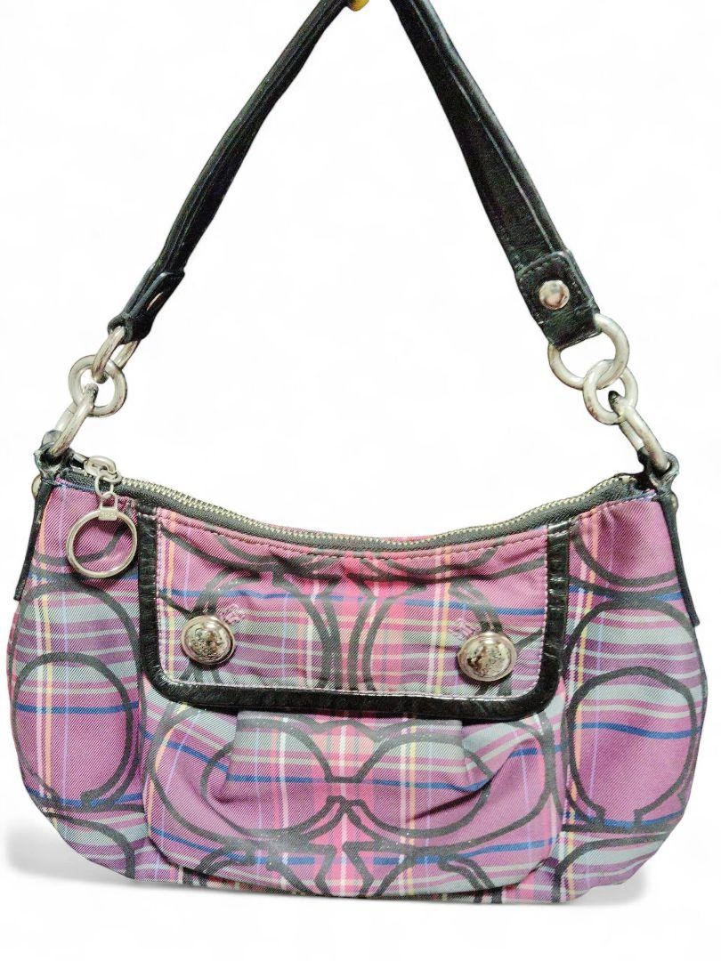 COACH(コーチ)の人気シリーズ「Poppy(ポピー)」の、上品なタータンチェック柄ワンショルダーバッグです。 型番:14366 カラー:パープル系チェック 素材:ナイロン×レザー 仕様:ワンショルダー(肩掛けタイプ) 開閉:ファスナー式 内側:ファスナーポケット×1、オープンポケット×2 状態は、目立った傷や汚れはなく、全体的にきれいな状態です。ファスナーの開閉もスムーズで、内側も清潔です。使用感は少なめかと 思います。 サイズ(おおよそ) 幅:約30cm 高さ:約17cm マチ:約10cm ショルダーストラップ:約40cm(肩掛けタイプ) 定価35000円程度 ご覧いただきありがとうございます。 カラー...パープル系