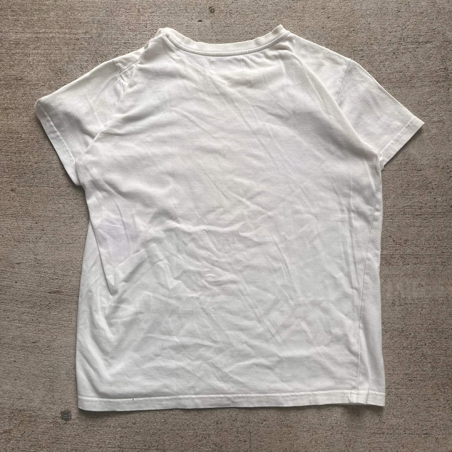 あたたかさ【ブランドの魅力】 Coca-ColaのTシャツは、ブランドの象徴的なデザインを取り入れており、カジュアルなスタイルにぴったりです。 【デザイン】 "Enjoy Coca-Cola"のメッセージがプリントされており、シンプルながらも目を引くデザインです。日常のコーディネートにアクセントを加えます。 【素材と着心地】 コットン素材(推測)で、快適な着心地を提供します。普段使いにも適しており、リラックスしたスタイルを楽しめます。 - ブランド: Coca-Cola - 色: 白 - デザイン: Enjoy Coca-Colaのプリント - 製造年: 2016年 - 素材: コットン(推測) ご覧いただきありがとうございます。 カラー···ホワイト 柄・デザイン···プリ ント(ロゴなど) 肩幅:39cm 身幅:42cm 袖丈:16cm 着丈:56cm