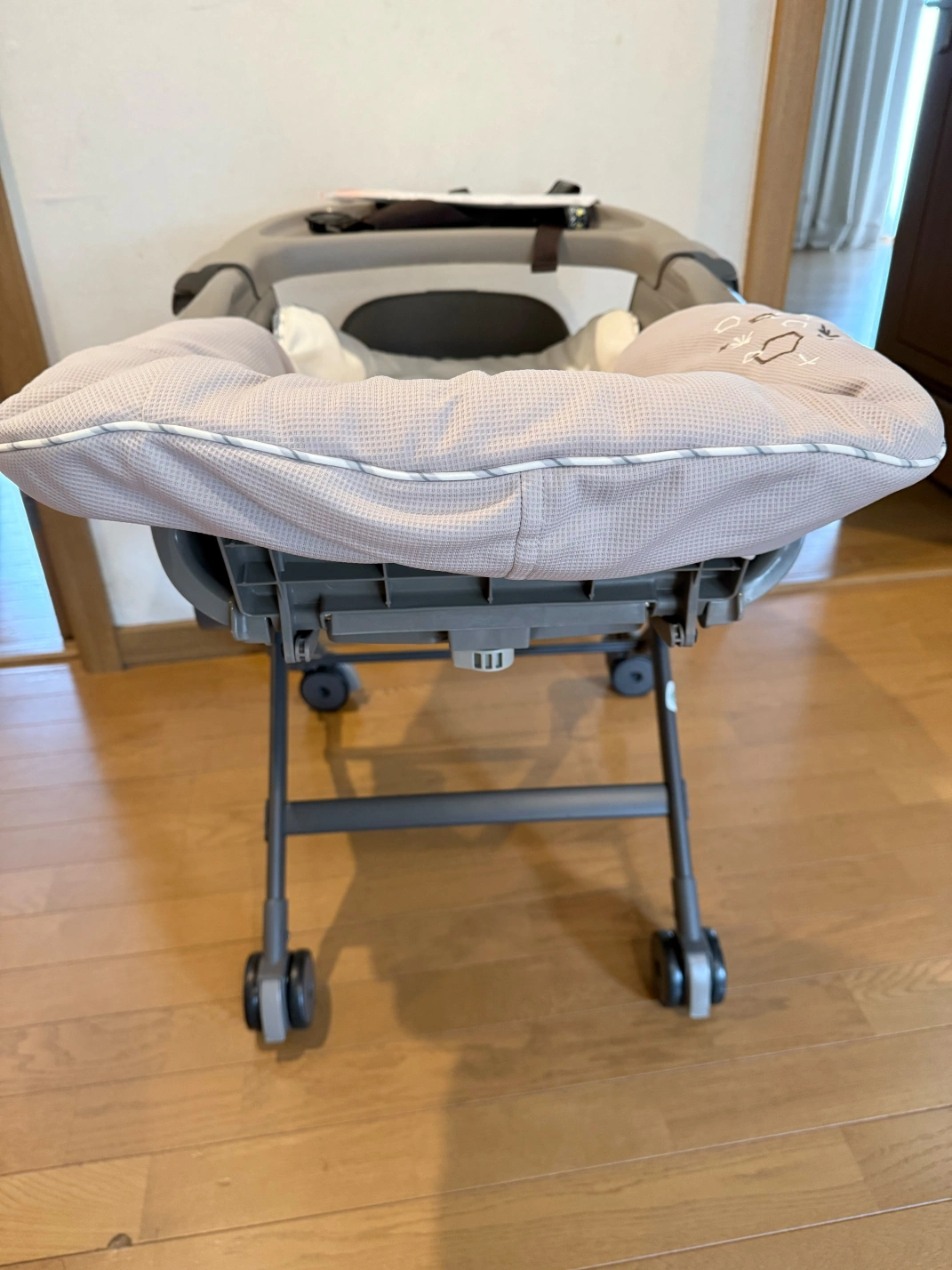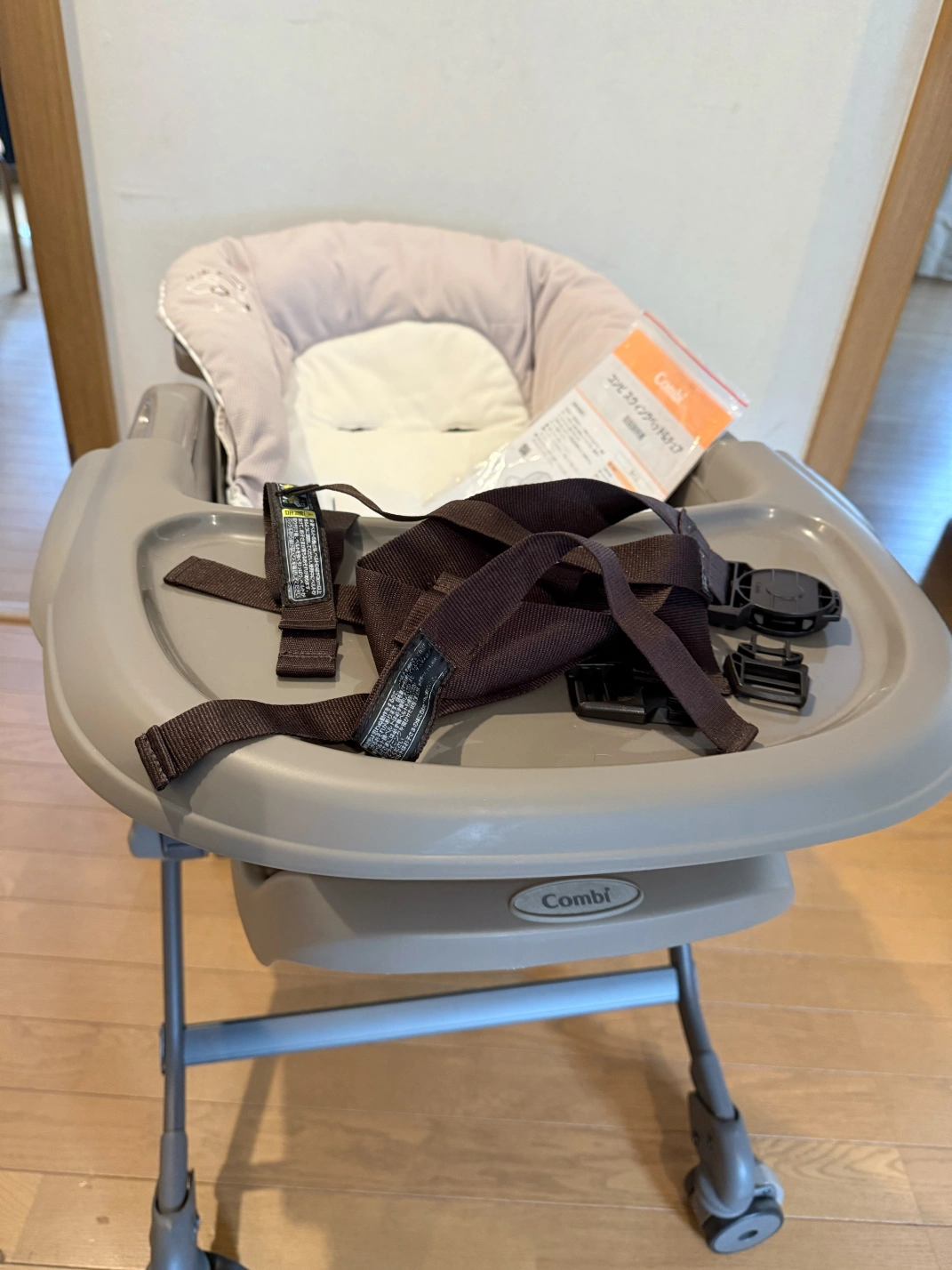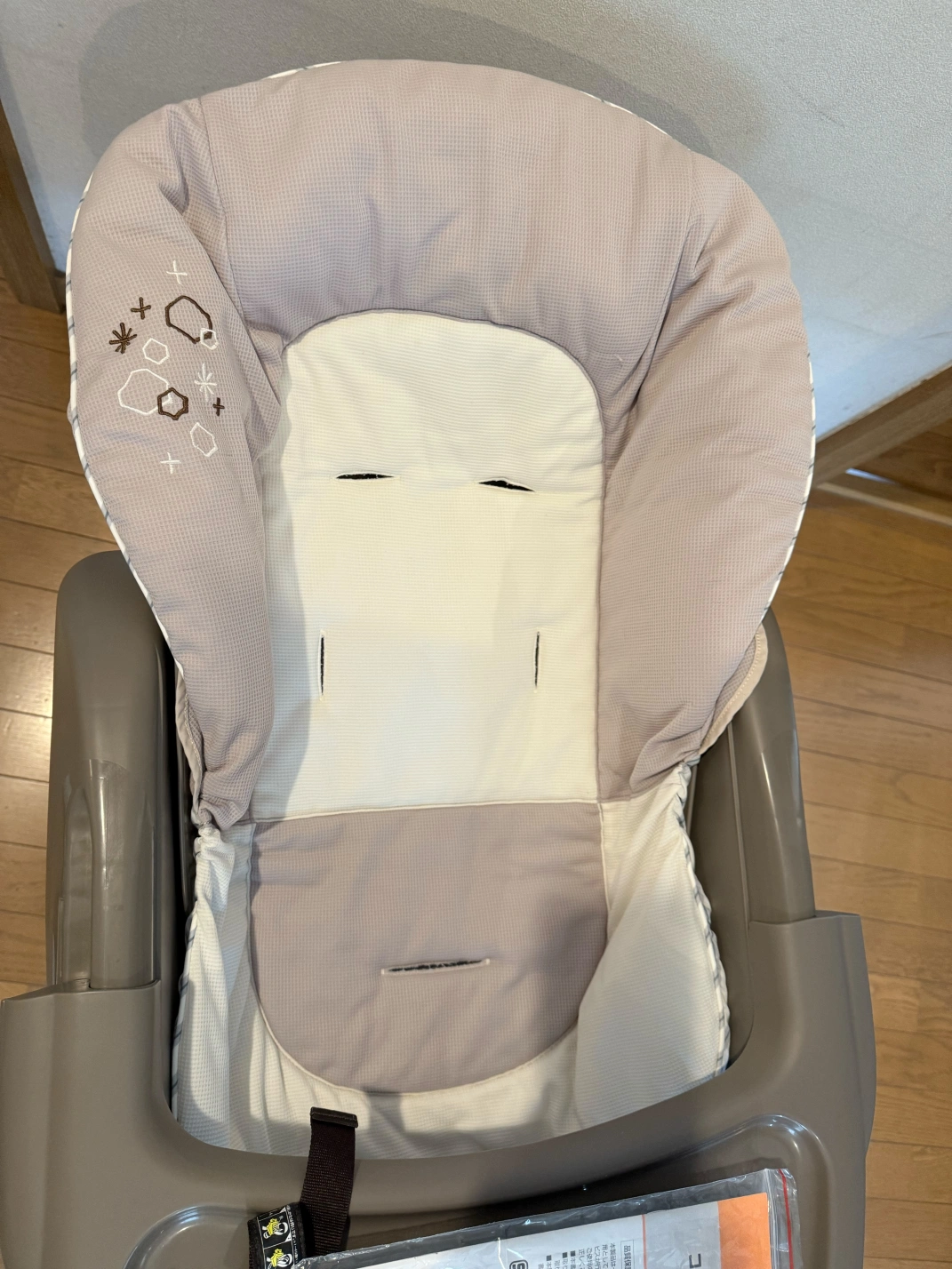あたたかさ・ブランド:コンビ ・ハイローチェア 約八ヶ月使用しました。 新生児期〜二ヶ月頃までは手 動スウィングを使って寝かせていましたが、三ヶ月頃からベッドで一人で寝られるようになったのでしばらく使わずにいました。 五ヶ月から離乳食を始めたのでそれからは毎日使用しました。 ・クッションとベルトは何度も洗濯しています。(洗濯ネット使用) その為、ベルトの一部の警告文が消えてしまっています。