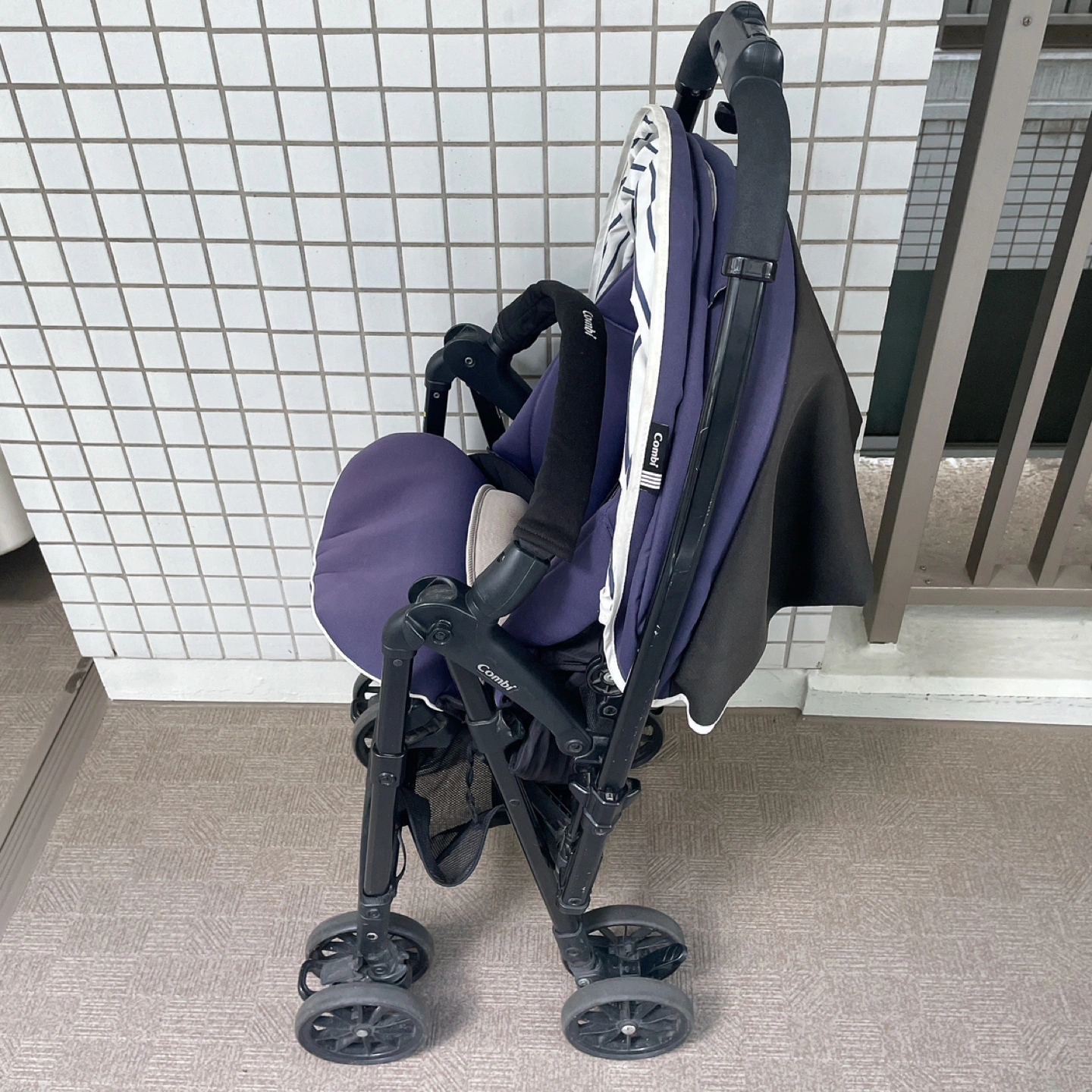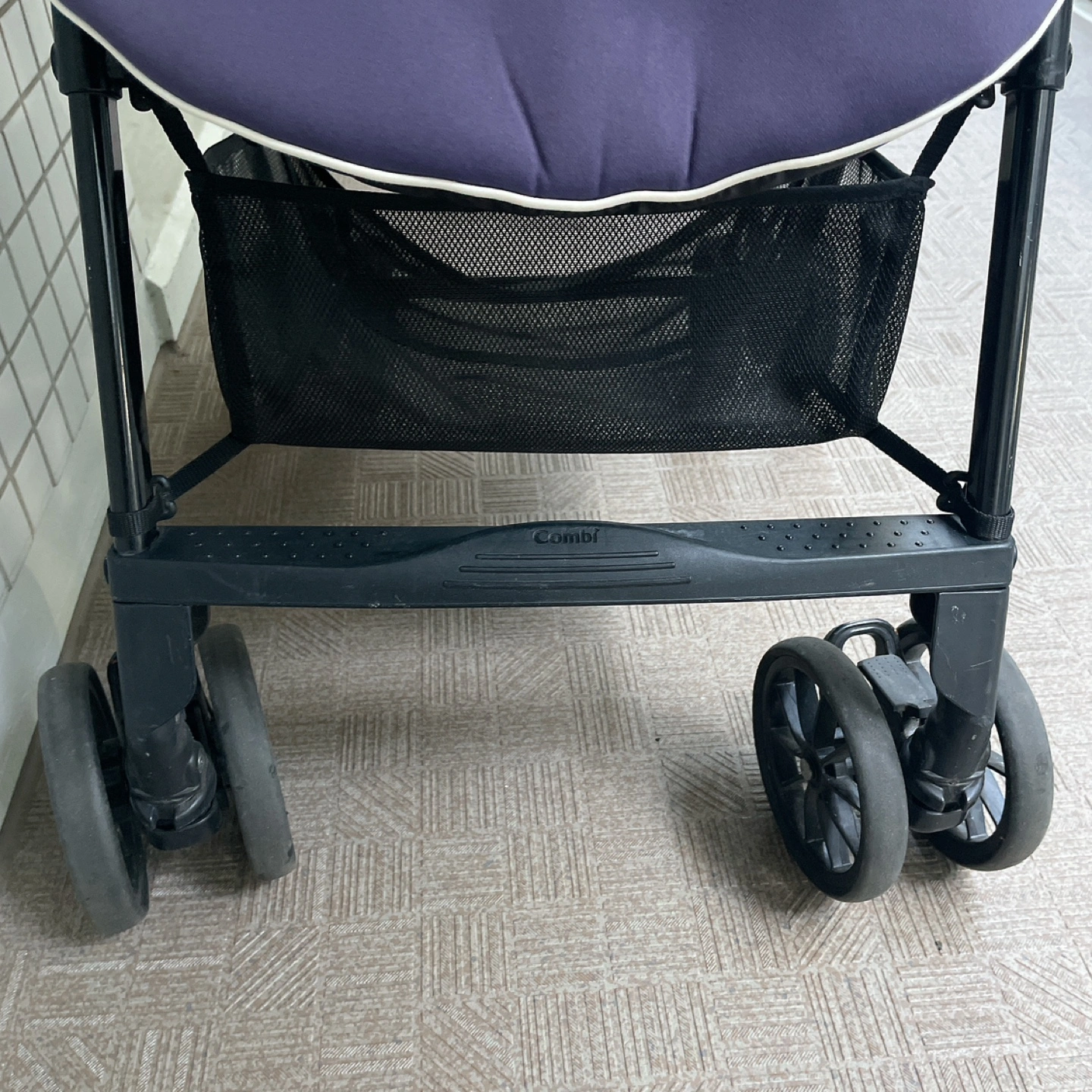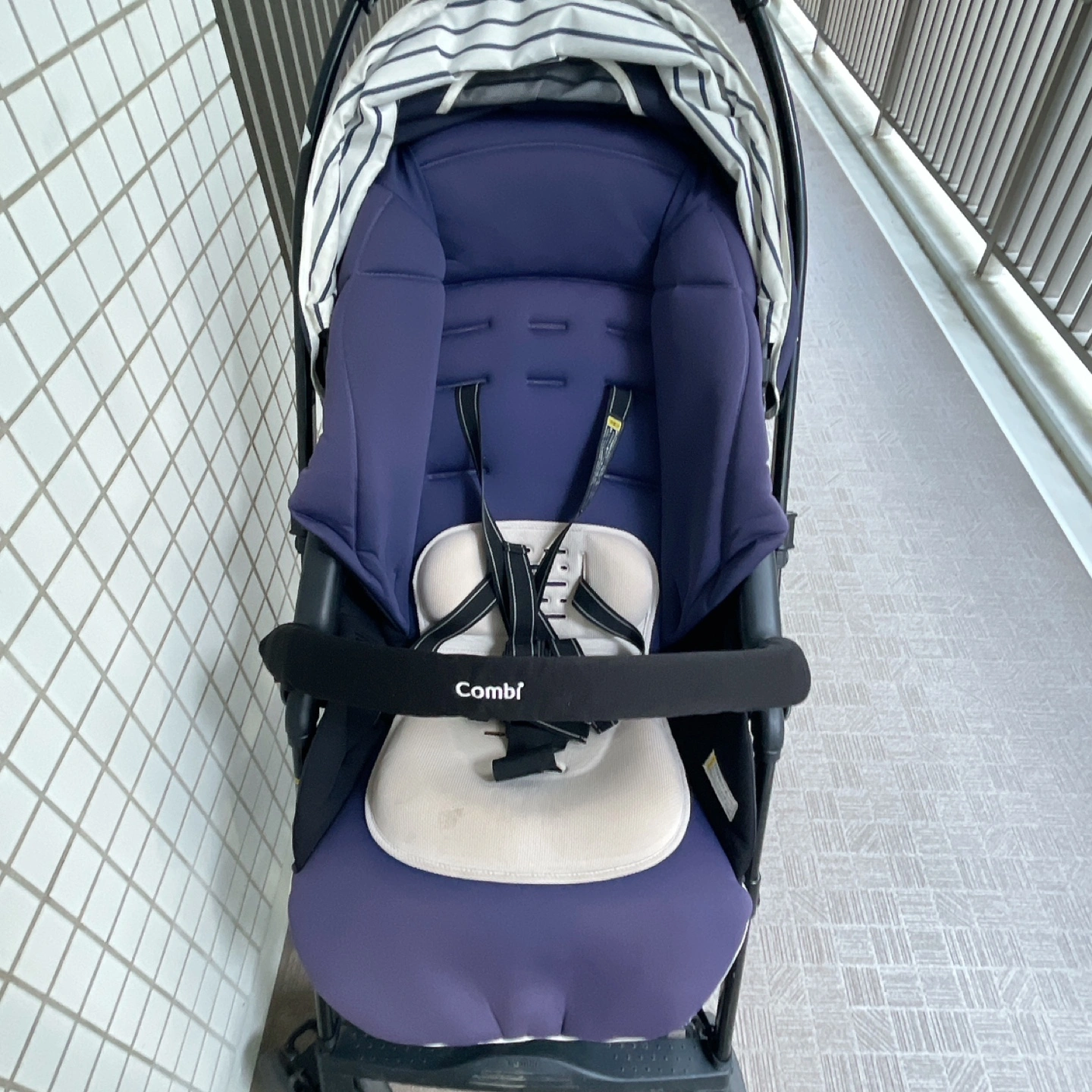 combiベビーカー メチャライトエッグショックNH ネイビー 軽量4.6kgベビーカー 「メチャライト(MECHALIGHT)」 フラットにできるので、B型ベビーカーと併用しつつ2歳でもお昼寝に重宝しました。 折りたたみ時、閉じづらいときがあるためコツをお伝えします。 特筆すべき汚れはありませんが、2人の子どもが使ったので使用感はあります。写真でご確認ください。 ・紺色、シェードの裏はストライプです。SPF50+の生地 ・エッグショッククッション、シートは洗ってお渡しします。 *取りに来ていただける方のみでお願いします。 【おまけ】 裾のところが破れている箇所があるものの、まだ使えるためレインカバーをご希望でしたらおつけします。(コンビのものではありません) 良かったらお使い下さい。 amazonで¥32,800 税込で現在販売されてます 〜受け渡し・お支払い〜 蘆花恒春園ドッグラン付近を希望します。 世田谷区粕谷周辺であれば中間地点でお渡しもできるかもしれませんので、ご相談ください お支払いは受け渡し時に現金にてお願いします。 ●生後1カ月からの紫外線ケア ビッグサンシェード 幌にUVカット率99%、UPF50+の生地を採用。日差しや紫外線から赤ちゃんを守ります。 ●出し入れラクラク! 大型カゴ 間口が広く出し入れがしやすい大型カゴを採用しました。(耐荷重5kg) ●安心ハイシート 53cm ●ゆったりリクライニング 125~170度 ●段差の乗り越えもスムーズ 140mmダブルホイール・4輪ソフトサスペンション ●いつも清潔 洗濯機丸洗いOK * [本体サイズ] W480×D810~900×H995~1030mm * ビッグサンシェード UV99%カット生地 * UPF 50+生地 * 安心ハイシート 53cm * うれしい軽量4.6kg * [製造国] 中華人民共和国 * [対象] 1ヶ月 ~ 36ヶ月