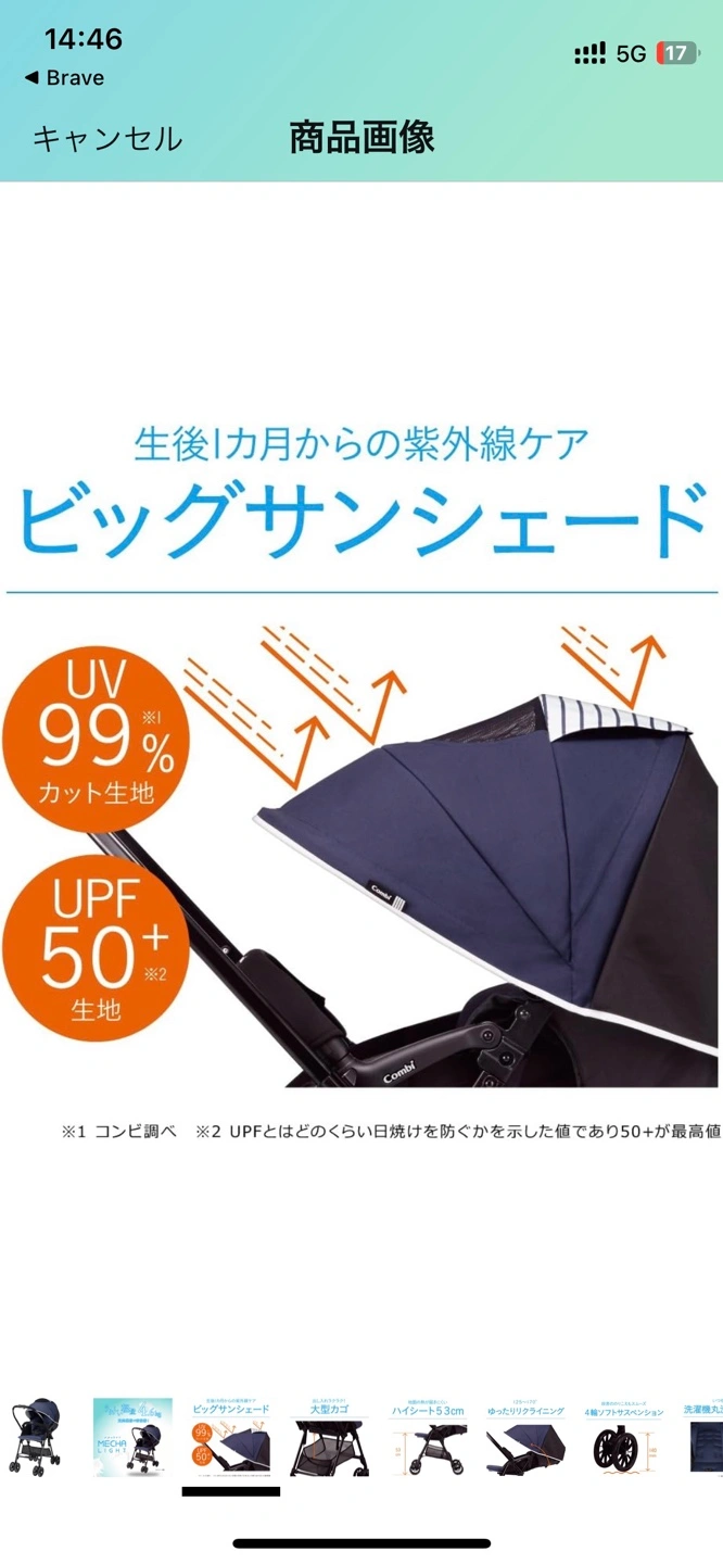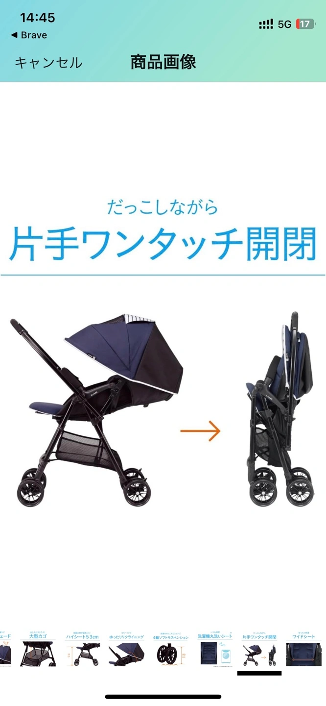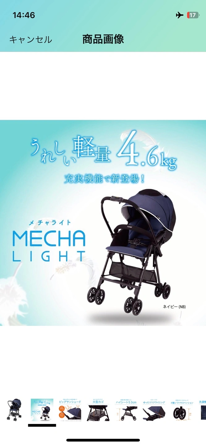 combiベビーカー メチャライトエッグショックNH ネイビー 軽量4.6kgベビーカー 「メチャライト(MECHALIGHT)」 フラットにできるので、B型ベビーカーと併用しつつ2歳でもお昼寝に重宝しました。 折りたたみ時、閉じづらいときがあるためコツをお伝えします。 特筆すべき汚れはありませんが、2人の子どもが使ったので使用感はあります。写真でご確認ください。 ・紺色、シェードの裏はストライプです。SPF50+の生地 ・エッグショッククッション、シートは洗ってお渡しします。 *取りに来ていただける方のみでお願いします。 【おまけ】 裾のところが破れている箇所があるものの、まだ使えるためレインカバーをご希望でしたらおつけします。(コンビのものではありません) 良かったらお使い下さい。 amazonで¥32,800 税込で現在販売されてます 〜受け渡し・お支払い〜 蘆花恒春園ドッグラン付近を希望します。 世田谷区粕谷周辺であれば中間地点でお渡しもできるかもしれませんので、ご相談ください お支払いは受け渡し時に現金にてお願いします。 ●生後1カ月からの紫外線ケア ビッグサンシェード 幌にUVカット率99%、UPF50+の生地を採用。日差しや紫外線から赤ちゃんを守ります。 ●出し入れラクラク! 大型カゴ 間口が広く出し入れがしやすい大型カゴを採用しました。(耐荷重5kg) ●安心ハイシート 53cm ●ゆったりリクライニング 125~170度 ●段差の乗り越えもスムーズ 140mmダブルホイール・4輪ソフトサスペンション ●いつも清潔 洗濯機丸洗いOK * [本体サイズ] W480×D810~900×H995~1030mm * ビッグサンシェード UV99%カット生地 * UPF 50+生地 * 安心ハイシート 53cm * うれしい軽量4.6kg * [製造国] 中華人民共和国 * [対象] 1ヶ月 ~ 36ヶ月