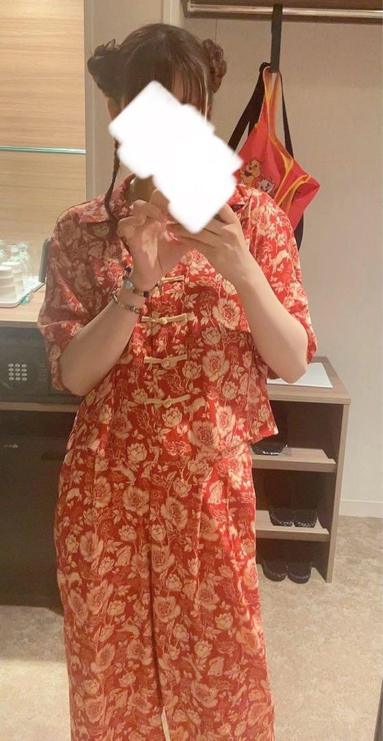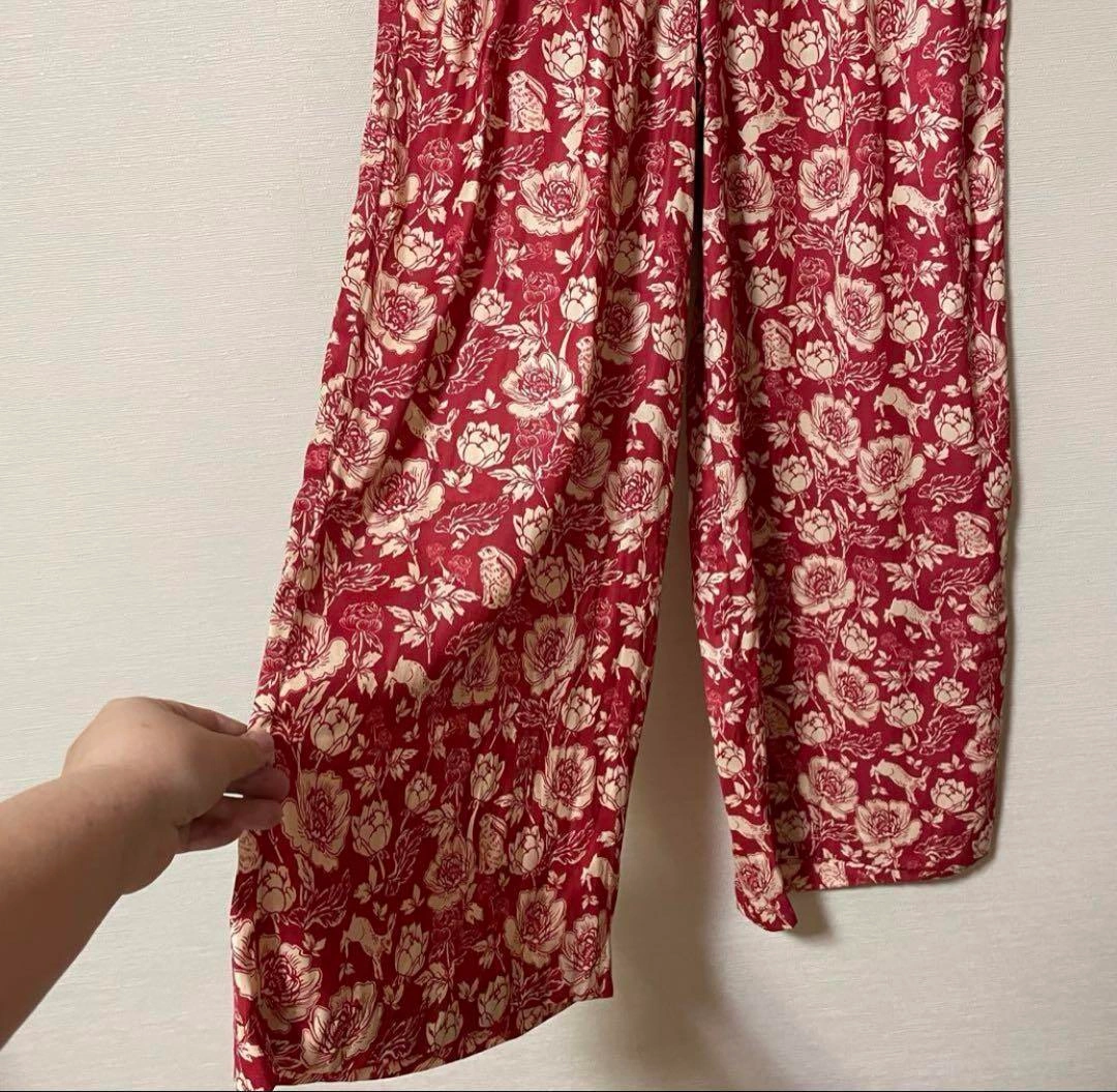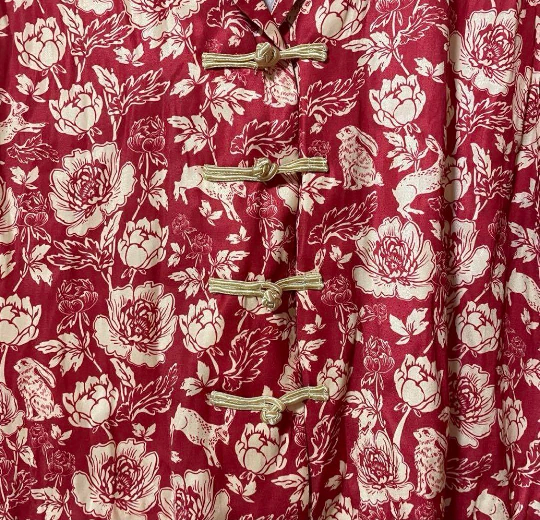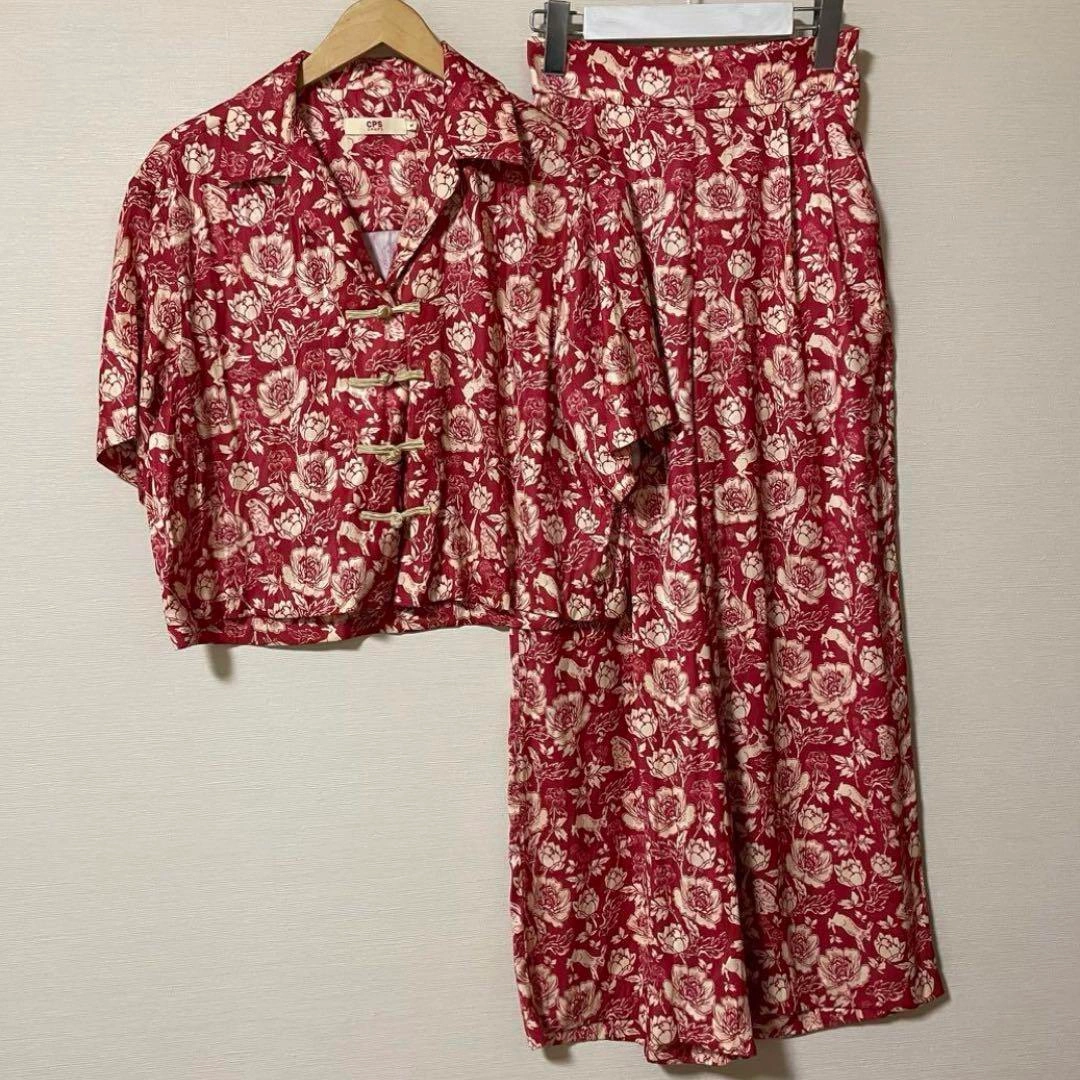 カンボジアの購入品です。 タイのブランド、CPS chaps のチャイナシャツとワイドパンツのセットアップです。 中国の卯年にちなんだ柄で可愛いです。 トップスは数回着用、ズボンは161cmで丈が合うと思います。 パンツは両脇にポケットがあります。 平置きサイズ トップス 着丈51cm 身幅52cm 肩幅46cm 袖丈24cm パンツ ウエスト33〜38cm 着丈97cm 股下63cm 素材 ポリエステル カラー···レッド 季節···春夏 ご希望の方はお気軽にご連絡ください。