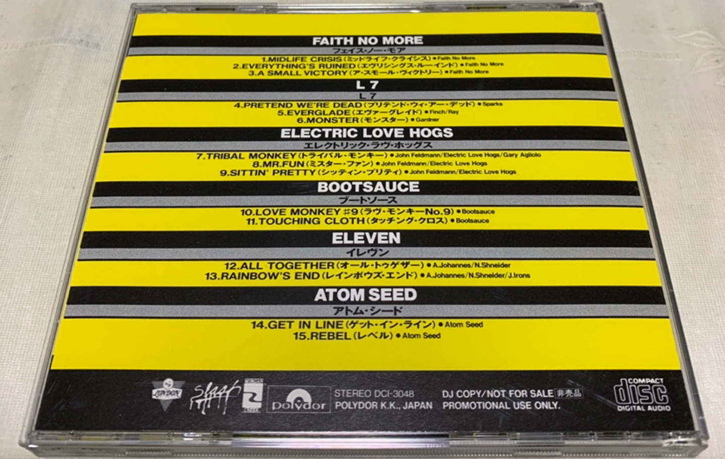 【アルバム概要】 このCD「CROSS IT OVER」は、様々なアーティストによるトラックを収録したコンピレーションアルバムです。特に、FAITH NO MOREやL7などの著名なバンドが参加しており、ジャンルの多様性が魅力です。 【トラックリスト】 収録されているトラックは、各アーティストの代表曲が含まれており、リスナーにとって新たな音楽体験を提供します。特に、FAITH NO MOREの「Everything's Ruined」やL7の「Pretend We're Dead」は必聴です。 【デザインと状態】 CDのデザインは、スプラッター模様が特徴的で、視覚的にも楽しませてくれます。また、プロモーション用のコピーとして提供されており、コレクターズアイテムとしての価値も高いです。 - タイトル: CROSS IT OVER - アーティスト: FAITH NO MORE, L7, ELECTRIC LOVE HOGS, BOOTSAUCE, ELEVEN, ATOM SEED - トラックリスト: 1. FAITH NO MORE - Everything's Ruined 2. L7 - Pretend We're Dead 3. ELECTRIC LOVE HOGS - Monkey 4. BOOTSAUCE - Love Monkey 5. ELEVEN - All Together 6. ATOM SEED - Get In Line - CDデザイン: スプラッターデザインのディスク - プロモーション情報: DJ COPY NOT FOR SALE ご覧いただきありがとうございます。