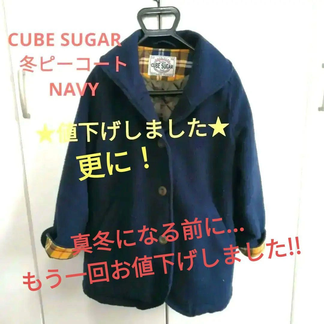 CUBE SUGAR の暖かいピーコートです。 袖口を押し返して着ると、裏地の黄色チェック柄が可愛いです。ウッドの大きめボタンも素敵です。 少し大きめだったので数回着用しました。クローゼット保管していました。生地の特性から表面に少し毛玉がありますが、形崩れや目立つ汚れはありません(◍•ᴗ•◍) 中古品であることをご理解のうえご検討ください。よろしくお願い致します。 ○サイズ感(cm) 身丈 74 身幅 47 肩幅 37 袖丈 60 袖幅 17 ※素人採寸ですので若干の誤差がございます。 カラー...ネイビー 着丈...ミドル 柄・デザイン...無地、裏地チェック フード...フードなし 季節感...冬 BEAMS コムサ Samantha SM2 グリーンレーベル nanae ご希望の方はお気軽にご連絡ください。