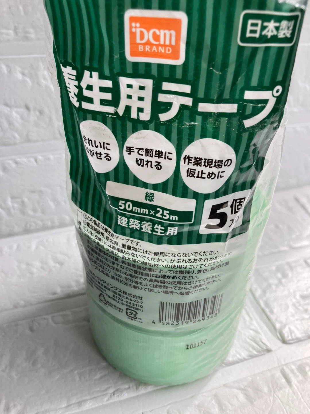 DCMの養生用テープです。 ・カラー:緑 ・サイズ:50mm×25m ・個数:5個 ・建築養生用 中古品であることご了承ください