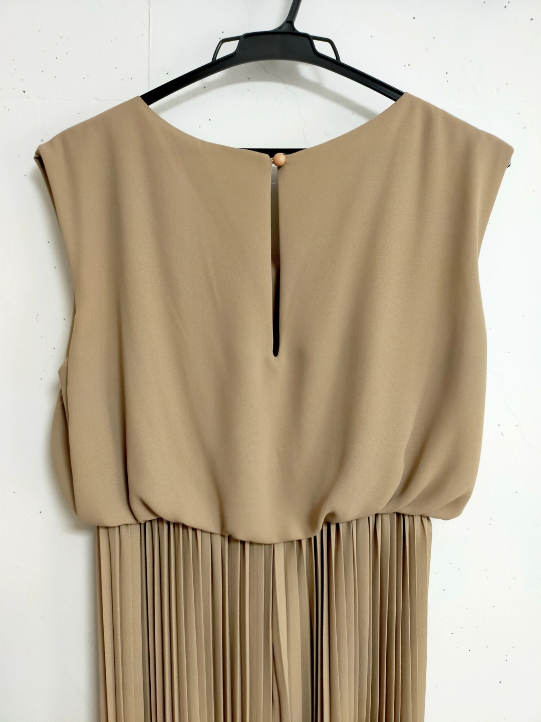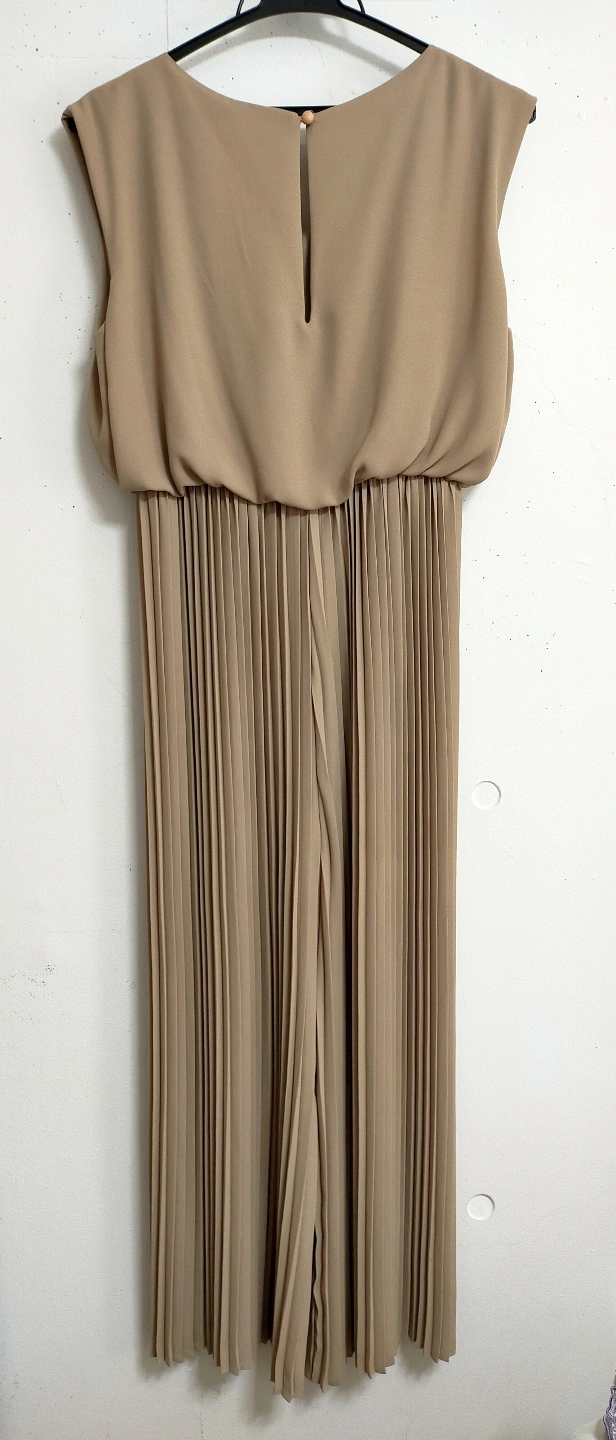 一度、結婚式の二次会で着用し、洗濯のうえ自宅保管です。 特に目立 つ汚れはないと思いますが、素人確認のため、ご理解いただける方でお願いいたします。 ◆商品説明 快適なフィットに女性らしい ディテールがポイントの涼しい スリーブレスジャンプスーツ。 まとまりを与えたい方にはスタイリング いらずのこの一着がオススメです。 ◆デザイン性 ウエストをバンディングで絞り メリハリをつけワイドなレッグライン には細かいプリーツでポイントを+。 背中には深めのスリットが入り ボタンでクロージングされた着脱の しやすいお作りになりました。 商品ディテールカットをご確認ください。 ◆着こなしPOINT 歩くたびプリーツが揺れ上品 なので単品着用でその魅力を 魅せるのが良さそうです。 足元はフラットまとめでより 大人っぽく演出できるのでお勧め