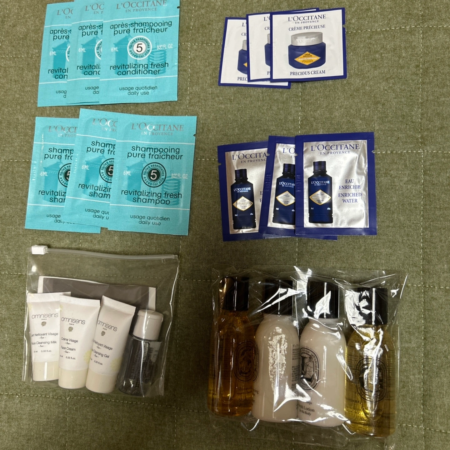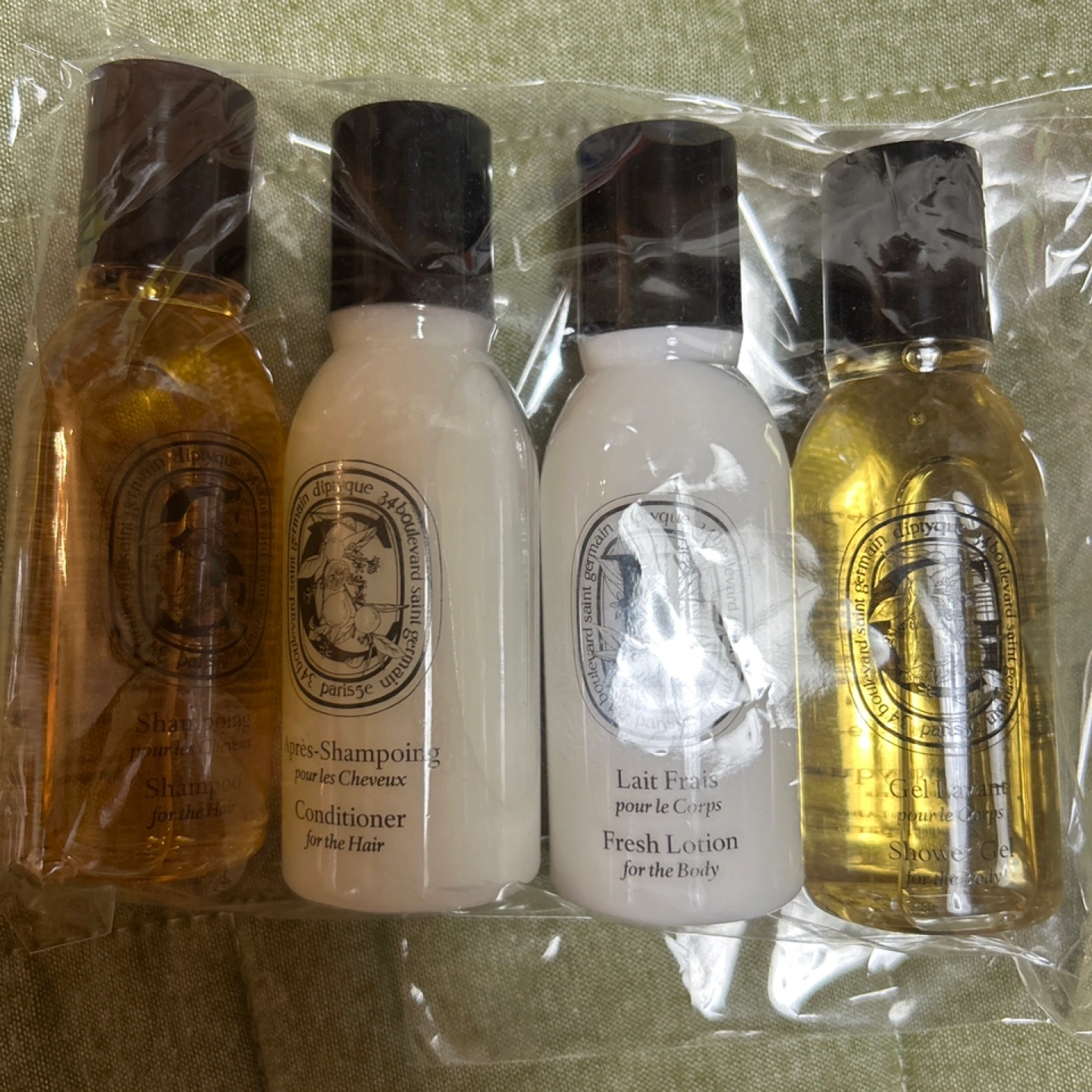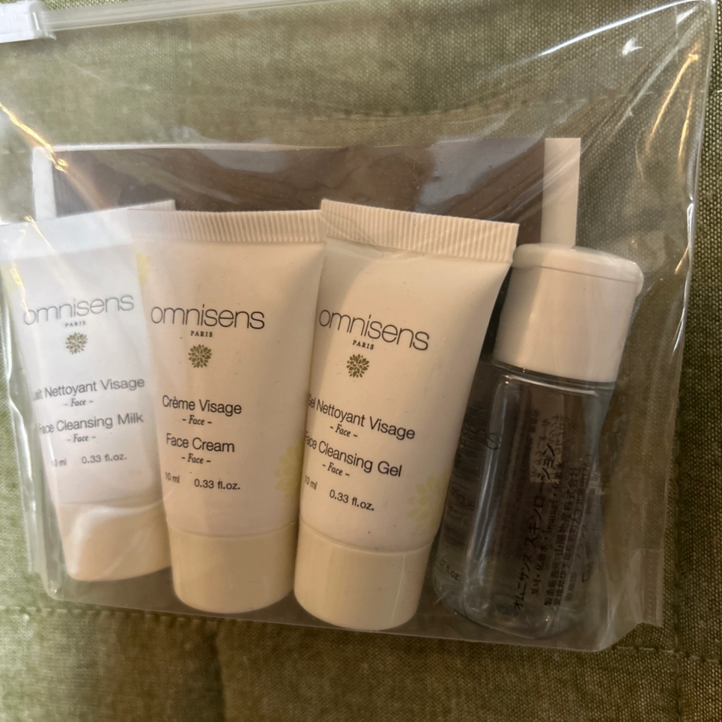 【高品質なボディケア】 Diptyqueのボディローションとシャンプーは、贅沢な成分を使用しており、肌をしっとりと保湿します。特に旅行中のスキンケアに最適です。 【フェイスケアの充実】 Omnisensのフェイスケアセットには、クレンジングミルク、クレンジングジェル、クリーム、トニックローションが含まれており、肌をしっかりとケアします。旅行先でも手軽に使用できるサイズです。 【旅行に最適】 コンパクトなサイズで、旅行用に特化したセットです。必要なアイテムが揃っており、持ち運びも便利です。 - ブランド: Diptyque - 製品タイプ: ボディローション - 製品名: Lait Frais - 製品名: Apres-Shampooing - 製品名: Shampooing - ブランド: Omnisens - 製品タイプ: フェイスケアセット - 製品名: Face Cleansing Milk - 製品名: Face Cleansing Gel - 製品名: Face Cream - 製品名: Tonic Lotion ご覧いただきありがとうございます。