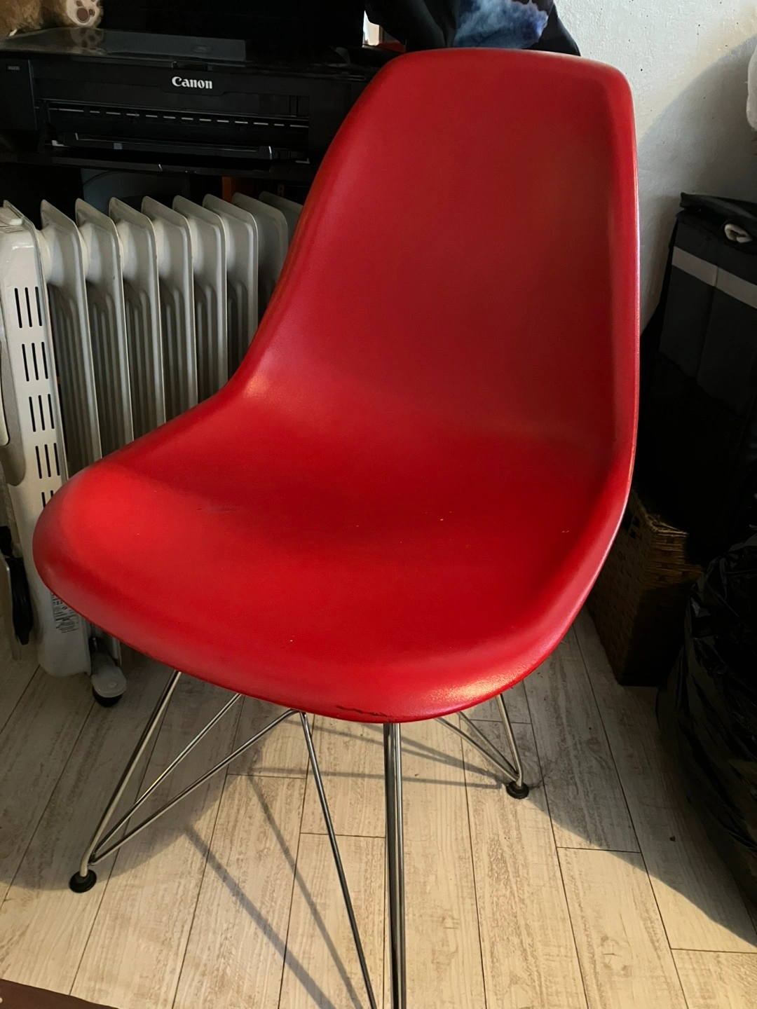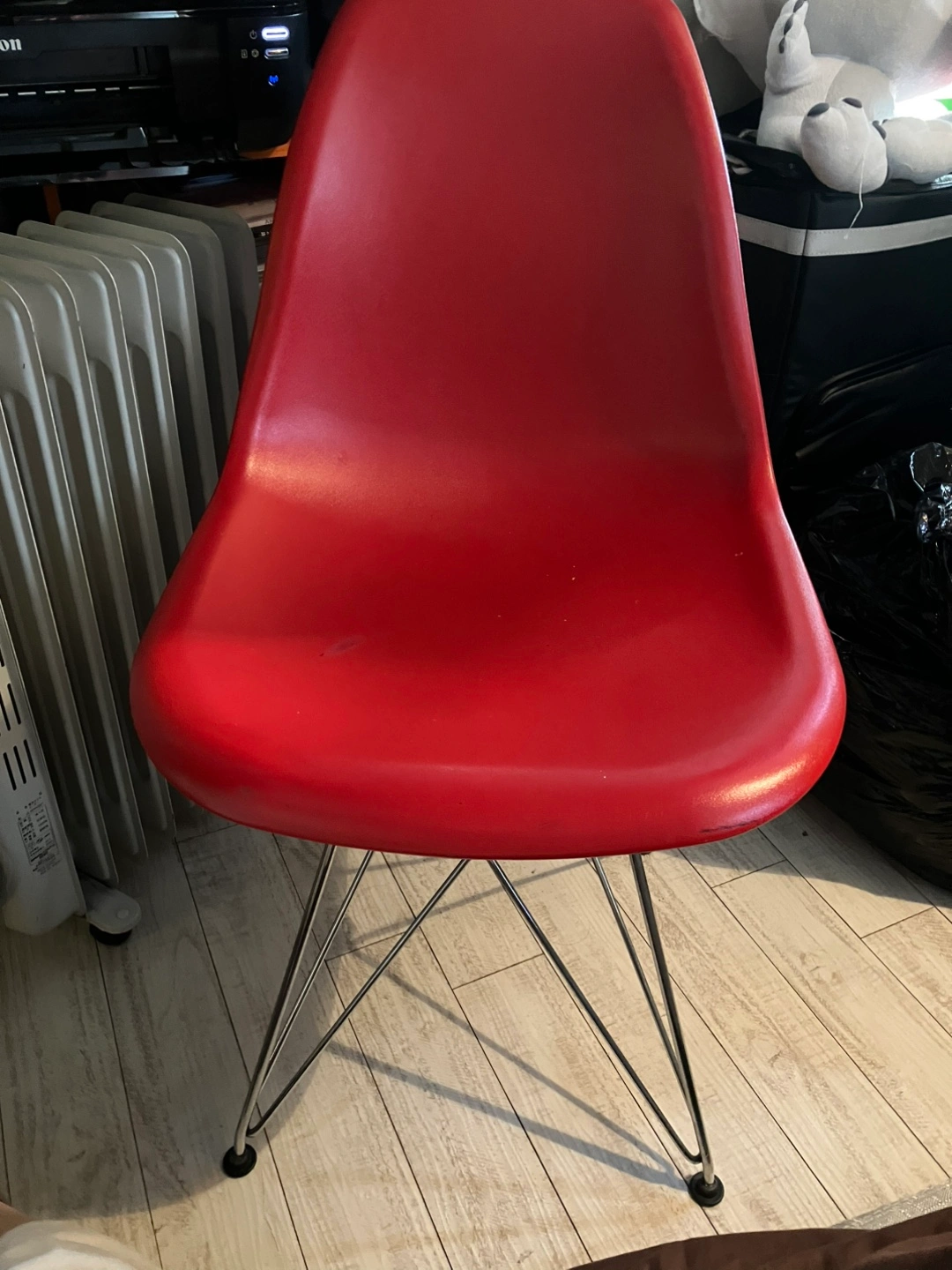 あたたかさイームスチェア リプロダクト品 カラー:レッド 脚:スチール 中古品 小さなキズありますが、比較的綺麗です *必ずお時間調整いただいた上でお問い合わせください *また、当日キャンセルなきようよろしくお願いします。 遠方でしたら着払いにて発送可能です
