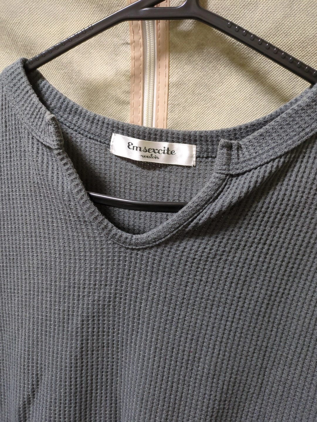 あたたかさ・ブランド:Emsexcite ・色:グレー ・Vネック ・ワッフル生地 ・スリット入り 見る限りシミや糸ツレは確認できませんでした。 サイズ……MからL 薄手のワッフル生地 これからのシーズンの部屋着に最適 受け渡し時間 日中……曜日により可能 早朝7:30から9時応相談 指定場所なら夕方17時から夜中2時くらいまで対応できますので ご相談下さい(⋆ᴗ͈ˬᴗ͈)” 他にも多数出品しております(*^^*)