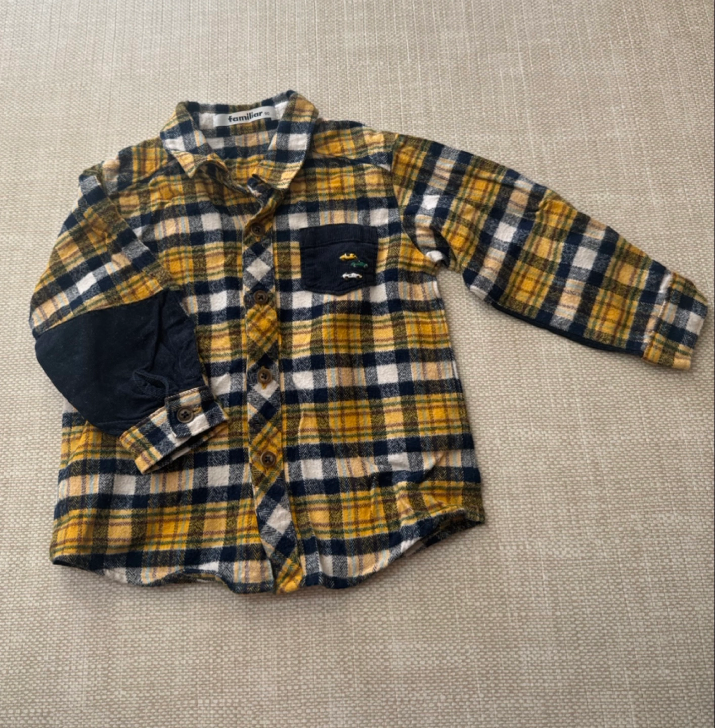 ご覧いただきありがとうございます。 ファミリアのチェック柄長袖シャツ、サイズは90cmです。 胸ポケットの刺繍が可愛いく、少しふわっとした素材感です。 - ブランド: familiar - カラー: イエロー/ネイビー/ホワイト - サイズ: 90cm - デザイン: チェック柄 - ポケット: 胸ポケットあり ほぼ着ないままにサイズアウトしてしまったので、どなたかに着ていただけると嬉しいです。 タグの下部に名前スタンプを押しているため、マジックで塗り潰します。 お渡し前にアイロンをかけますが、畳じわがつく可能性があります。ご容赦くださいませ。