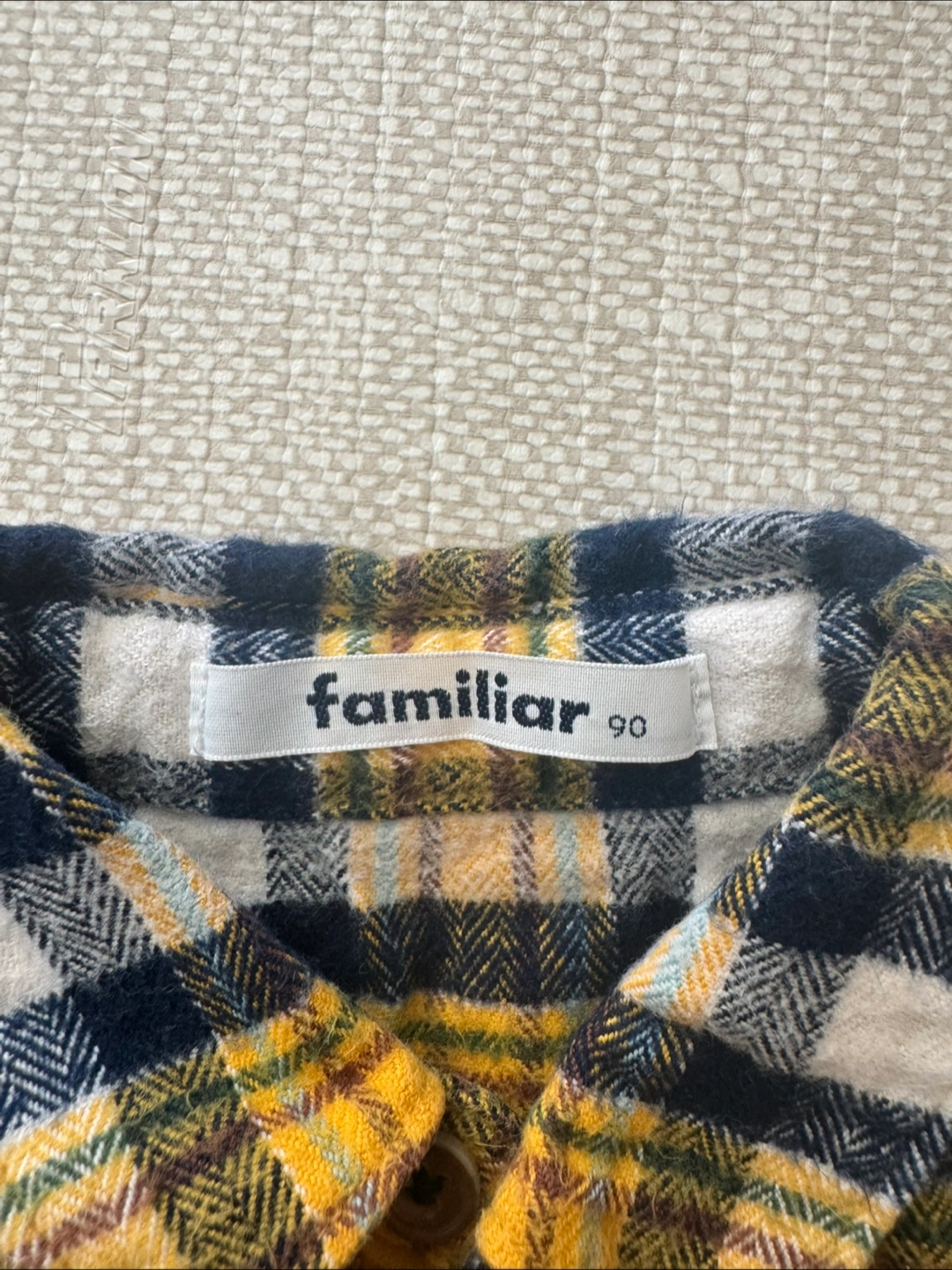 ご覧いただきありがとうございます。 ファミリアのチェック柄長袖シャツ、サイズは90cmです。 胸ポケットの刺繍が可愛いく、少しふわっとした素材感です。 - ブランド: familiar - カラー: イエロー/ネイビー/ホワイト - サイズ: 90cm - デザイン: チェック柄 - ポケット: 胸ポケットあり ほぼ着ないままにサイズアウトしてしまったので、どなたかに着ていただけると嬉しいです。 タグの下部に名前スタンプを押しているため、マジックで塗り潰します。 お渡し前にアイロンをかけますが、畳じわがつく可能性があります。ご容赦くださいませ。