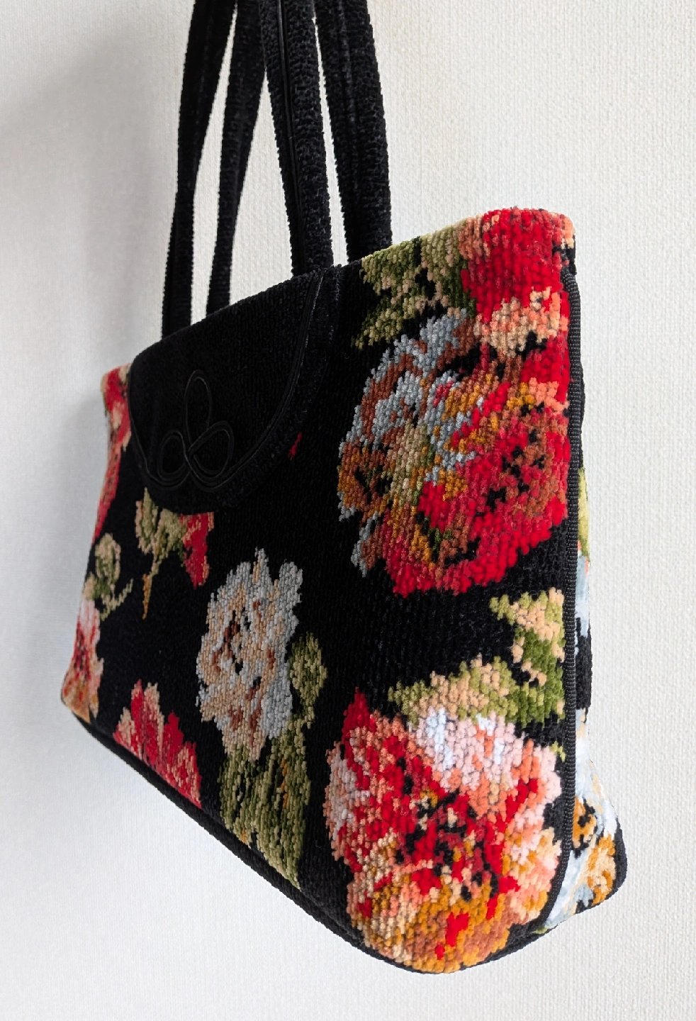 黒地に華やかな花柄が施されたトートバッグです。状態はとても良く、まだまだお使い頂けます。 ブランド: FEILER 色: 黒/多色(花柄) スタイル: トートバッグ 素材: テキスタイル デザイン: フラワー柄 横…30cm 縦…17cm マチ…7.5cm エレガントな小ぶりのバッグなので洋服は勿論、和服にも合わせられます。 どうぞよろしくお願い致します。 受け渡しは小田急線沿いでしたら考慮させて頂きますのでご相談ください。
