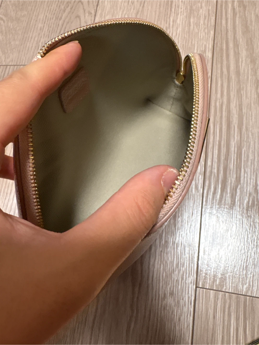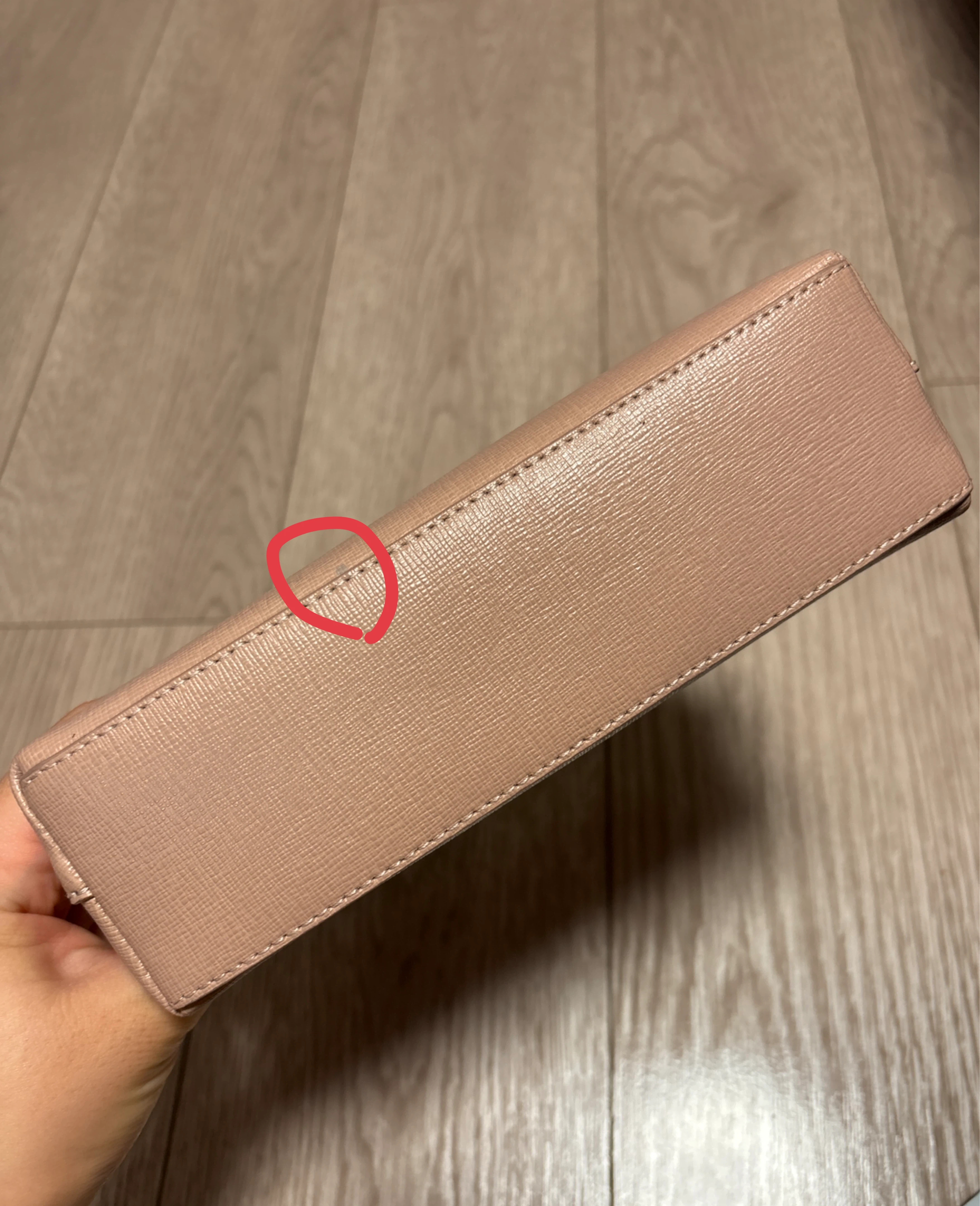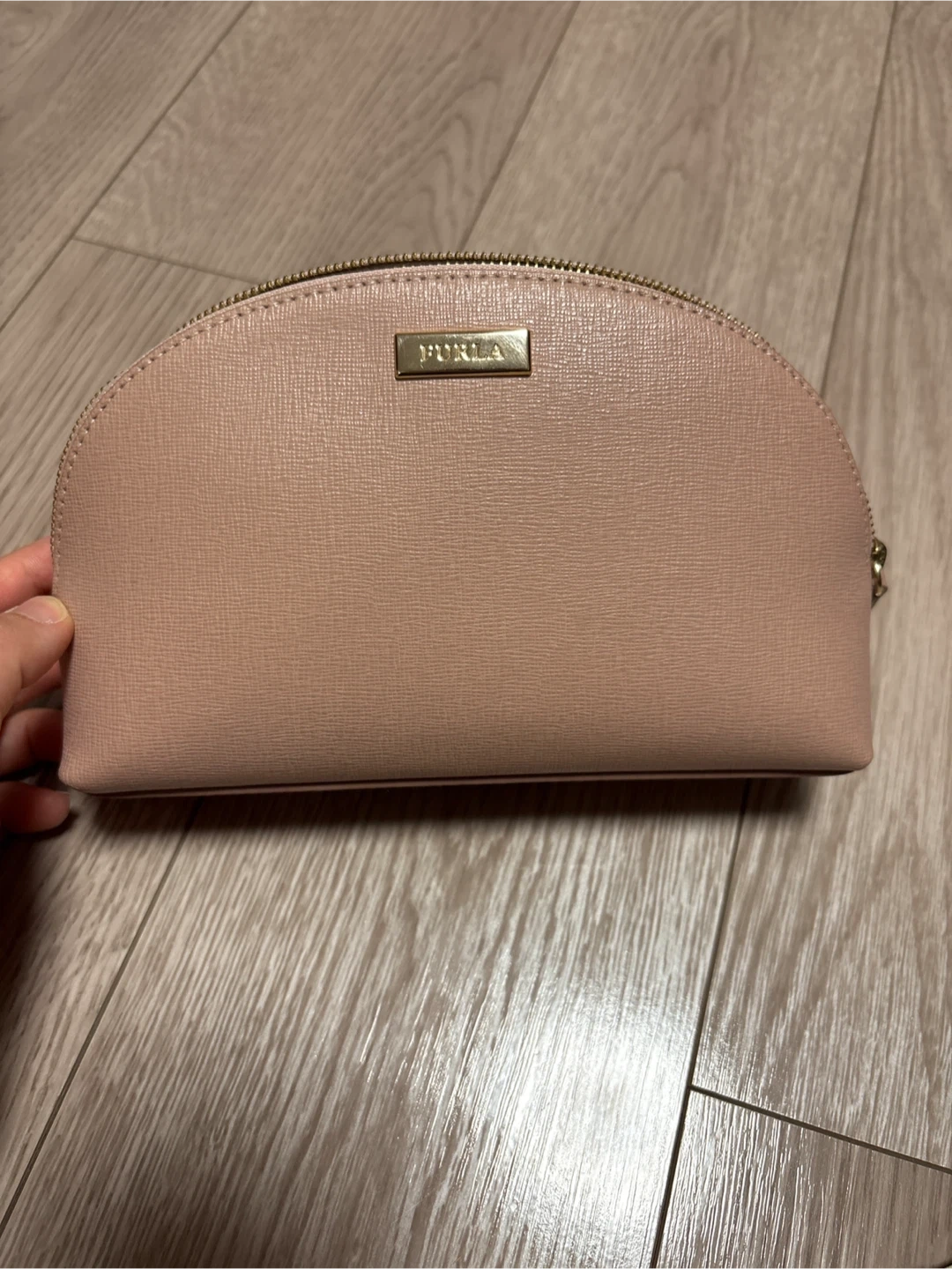 FURLAのポーチです。 数年前にアウトレットで購入しました。 ★サイズ(外寸、素人採寸) 高さ(1番高い所)13cm×横20cm×マチ6cm ★お色 ピンクベージュのような色です。 未使用品ですが、長いこと保管していました。 角スレはありませんが、購入時から正面の底に近いところに 薄い汚れがあります。(3枚目ご参照ください) 完璧を求める方はご遠慮ください。