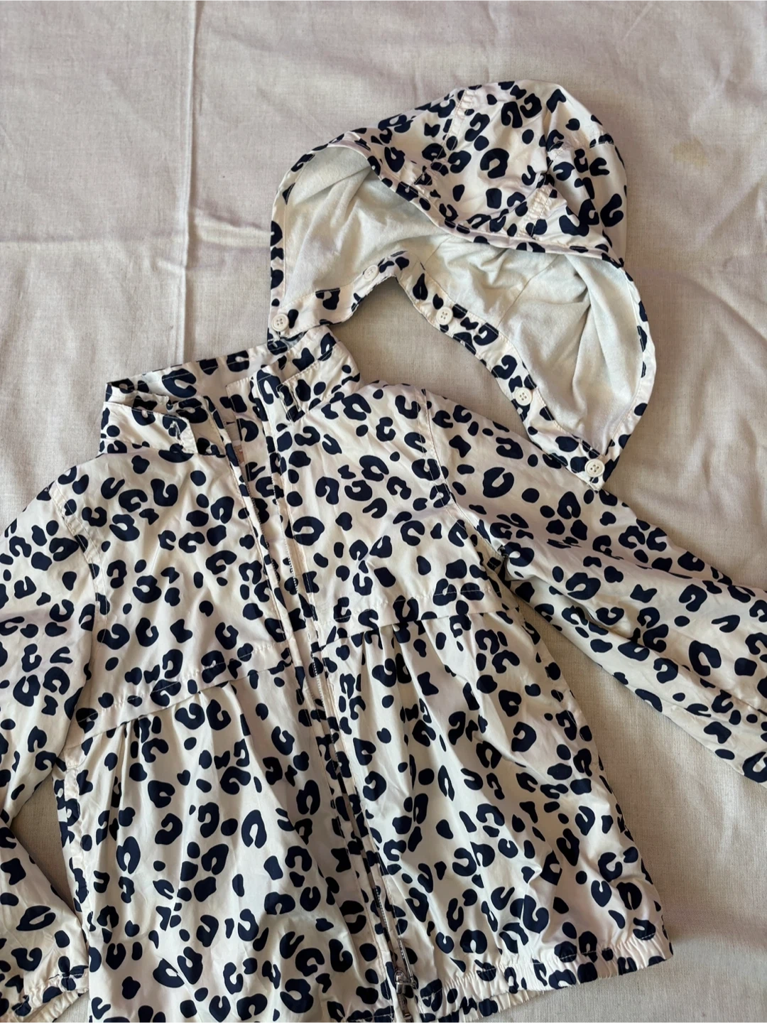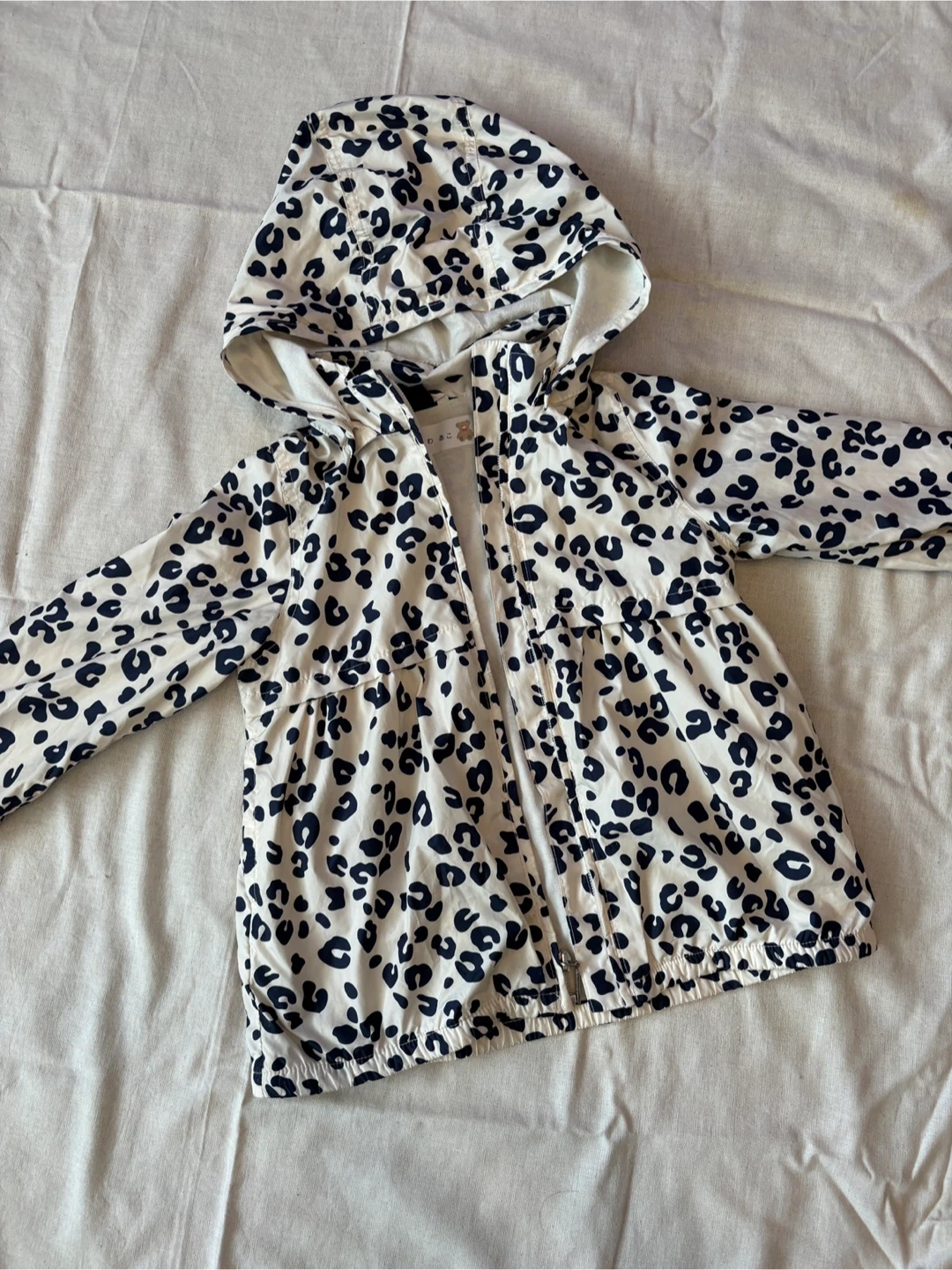 ギャップの薄手アウターです レインコートにも! 秋冬物まとめて出品します。 おまとめの場合多少お値引き出来ますので お気軽にお声掛けください。 ・サイズ:110cm(5歳) ・カラー:白地に黒のヒョウ柄 ・フード付き ・袖口に1箇所小さな汚れあり 中古品であることご了承ください
