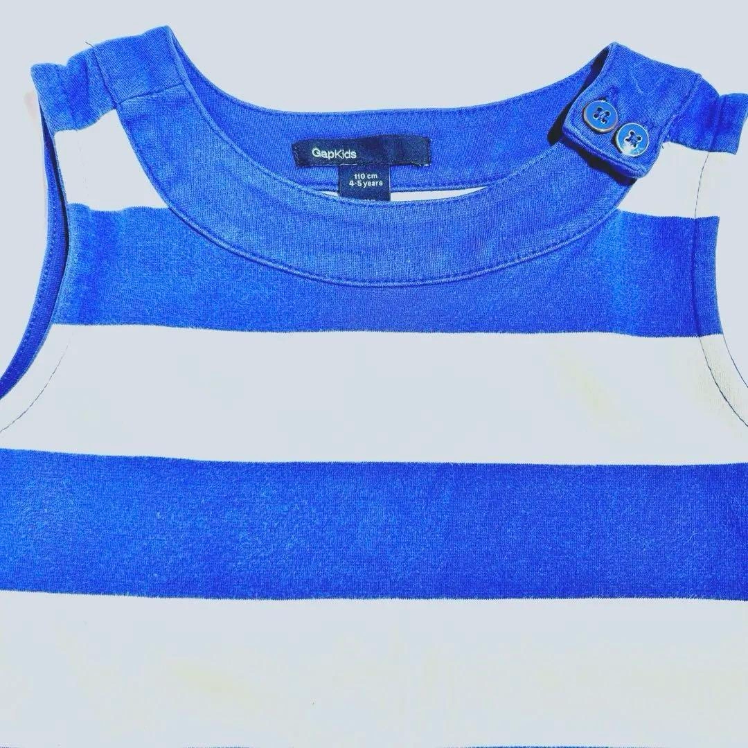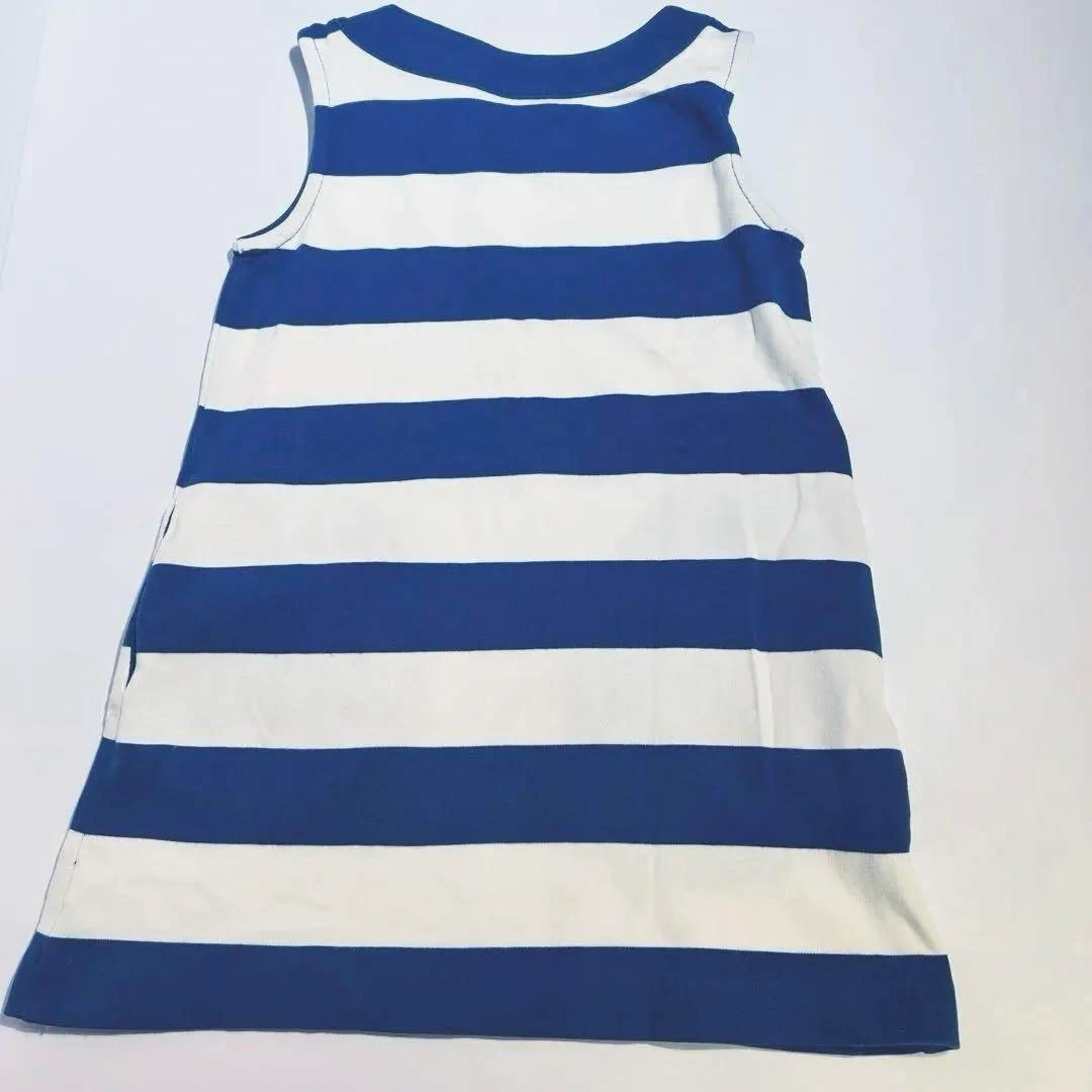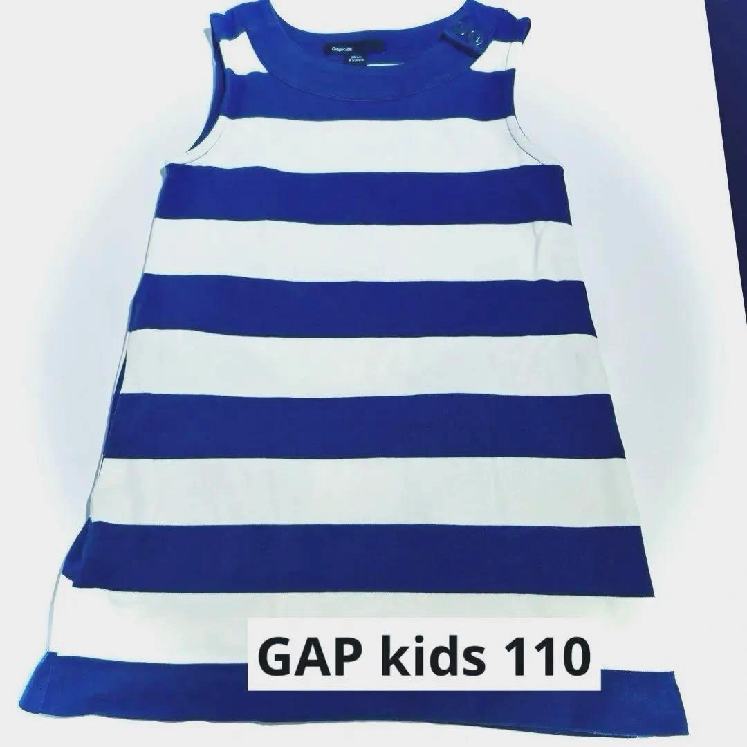 ギャップキッズのボーダーワンピース110センチです。 ワンシーズン着用しましたが、まだまだお使いいただけるかと思います! スカート部分にあまり目立ちませんが、小さなシミがあります。 白✖️青の爽やかな色味で、夏にぴったりの可愛いデザインです! ご希望の方はお気軽にご連絡ください。