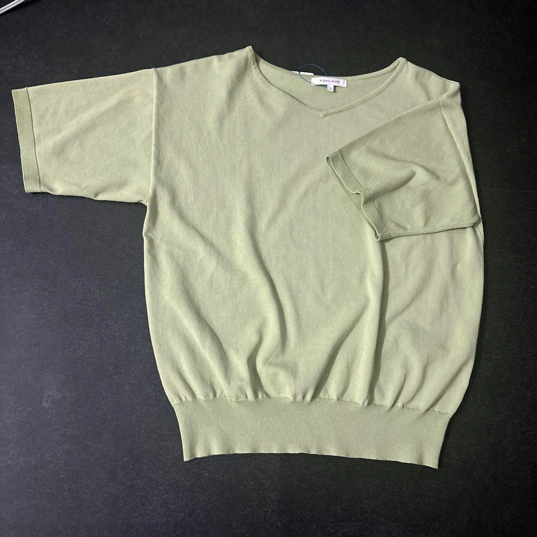 global workの洗えるサラサラVネックプルオーバー、Sサイズです。 春~秋まで着やすい薄手の素材で、洗濯機で洗えるのでお手入れも簡単です。 シンプルでどんなボトムにも合わせやすく、デイリーにもオフィスにも活躍します。 【サイズ】S(ゆったりなのでMの私でも着られました) 【カラー】グリーン 【状態】未使用に近い 【素材】(タグにある素材を記載してください) おしゃれで快適な1枚です。ご希望の方はお気軽にご連絡ください。