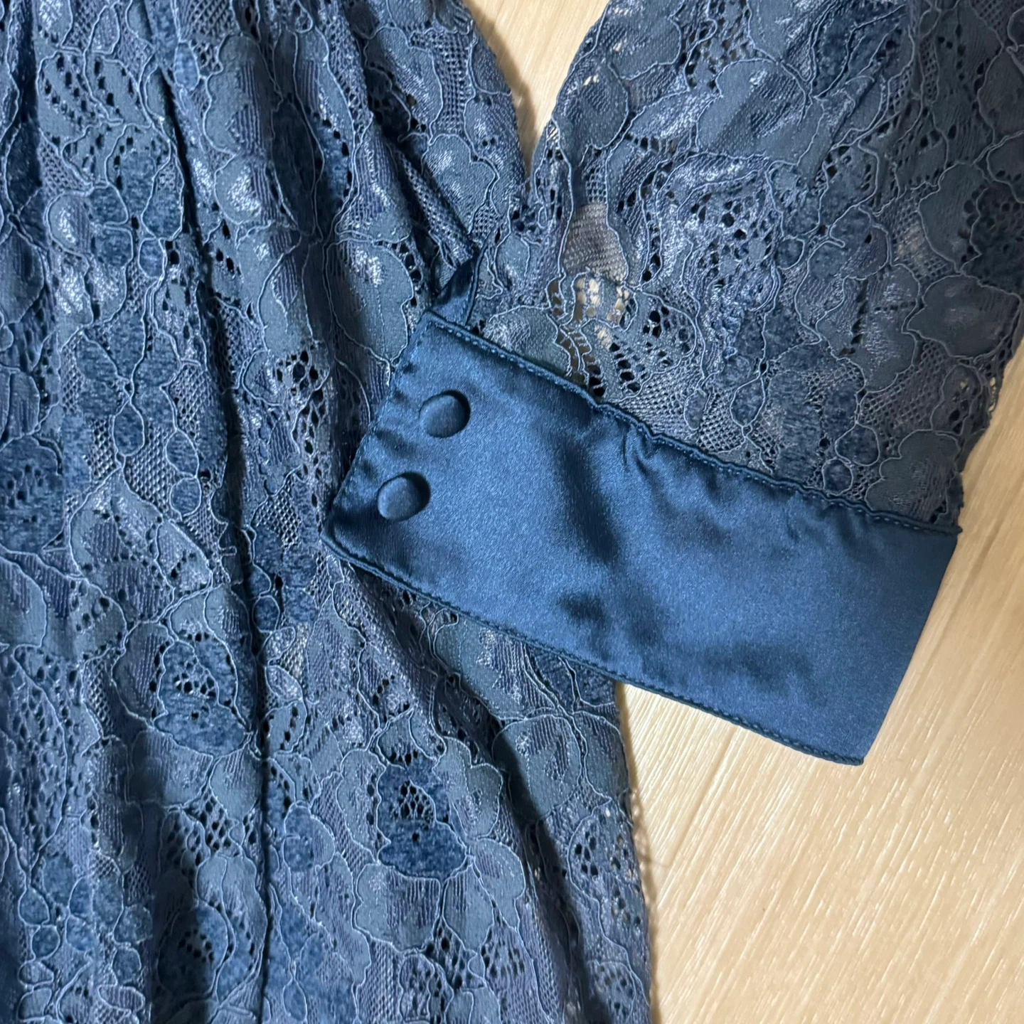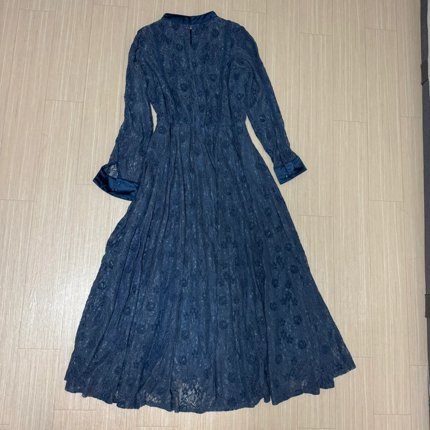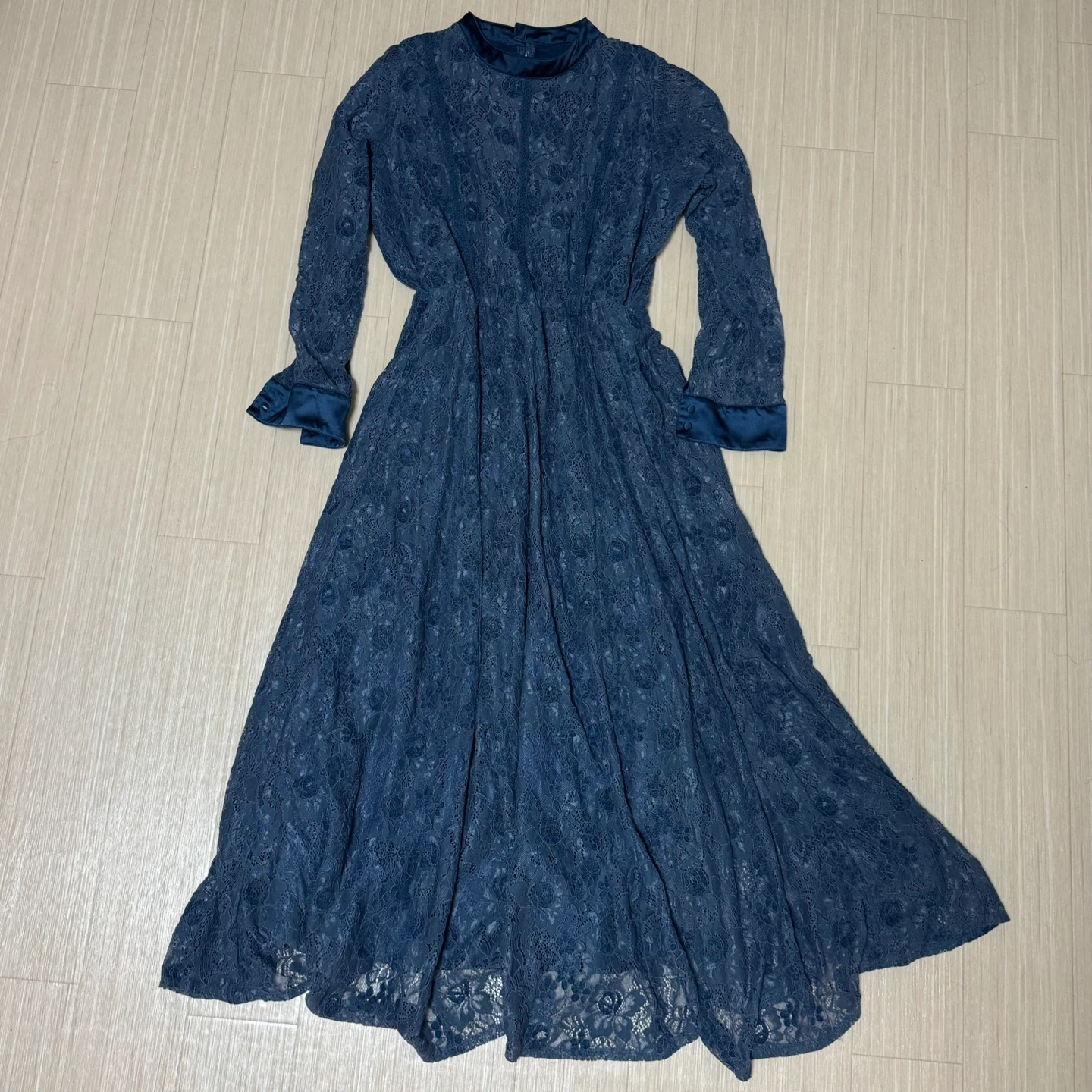 GRL ネイビー レース 長袖 フルレングス ワンピース M