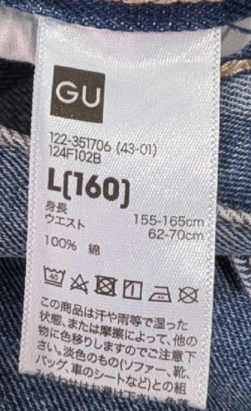 ご覧頂きありがとうございます☘️ GU ジーユーのバレルレッグジーンズです。 【情報】 ブランド:GU ジーユー サイズ:L(160)ウエスト62-70cm、身長155-165cm 素材:綿100% 昨年の購入品です。 2回ほど着用しました。 158cmのおしりから太ももが大きめな娘が履いた際、足首隠れるくらいです。 目立った汚れなどはなく綺麗なのでどなたかに履いて頂ければと思います☺️ 宜しくお願い致します☘️
