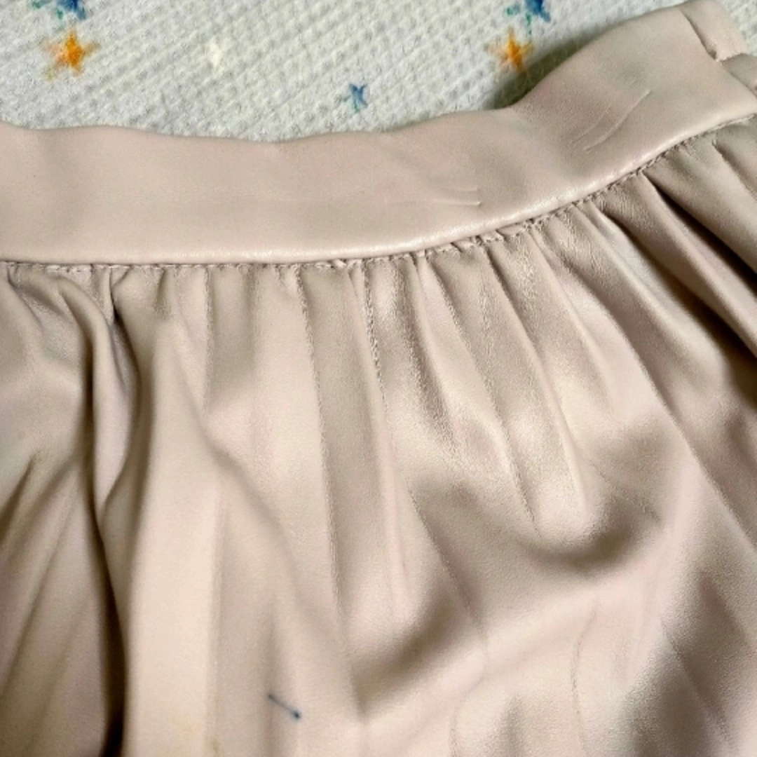 GU ジーユー レディース フェイクレザープリーツスカート GU フェイクレザープリーツスカート 品番328196 定価¥2,739 サイズS カラー アイボリー 合成皮革 2.3回着ただけですが、自宅保管のため畳じわがあらます。 中古にご理解頂ける方にm(_ _)m ウエスト部分に合皮のたわみやペンなどの汚れがございます。トップスを着てしまえば分からない箇所かと思います。