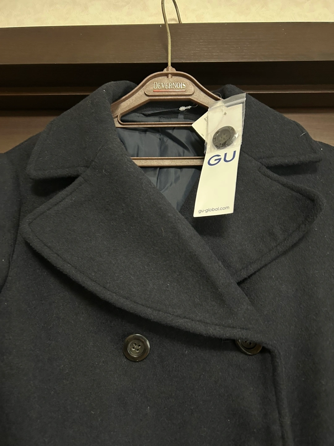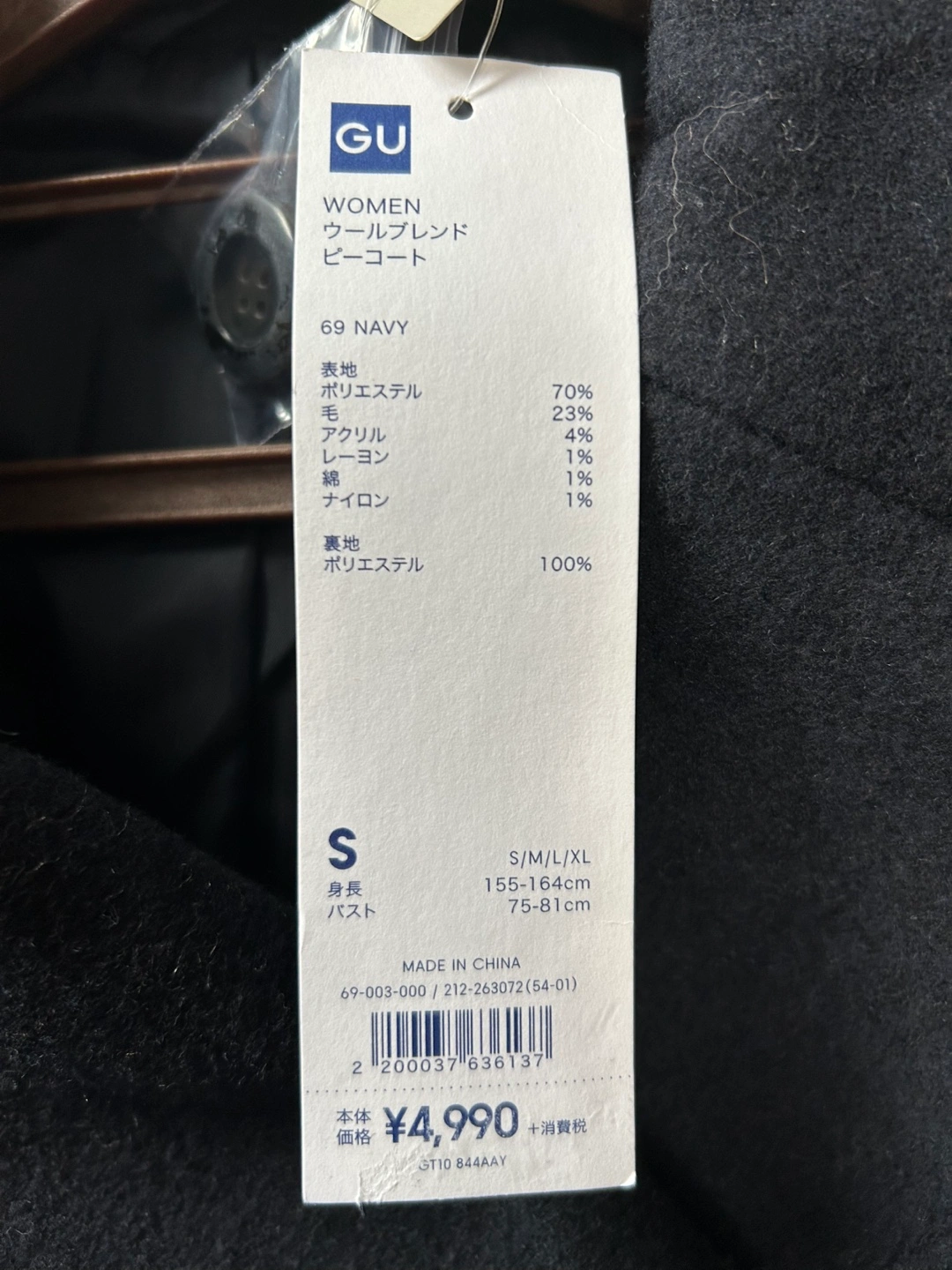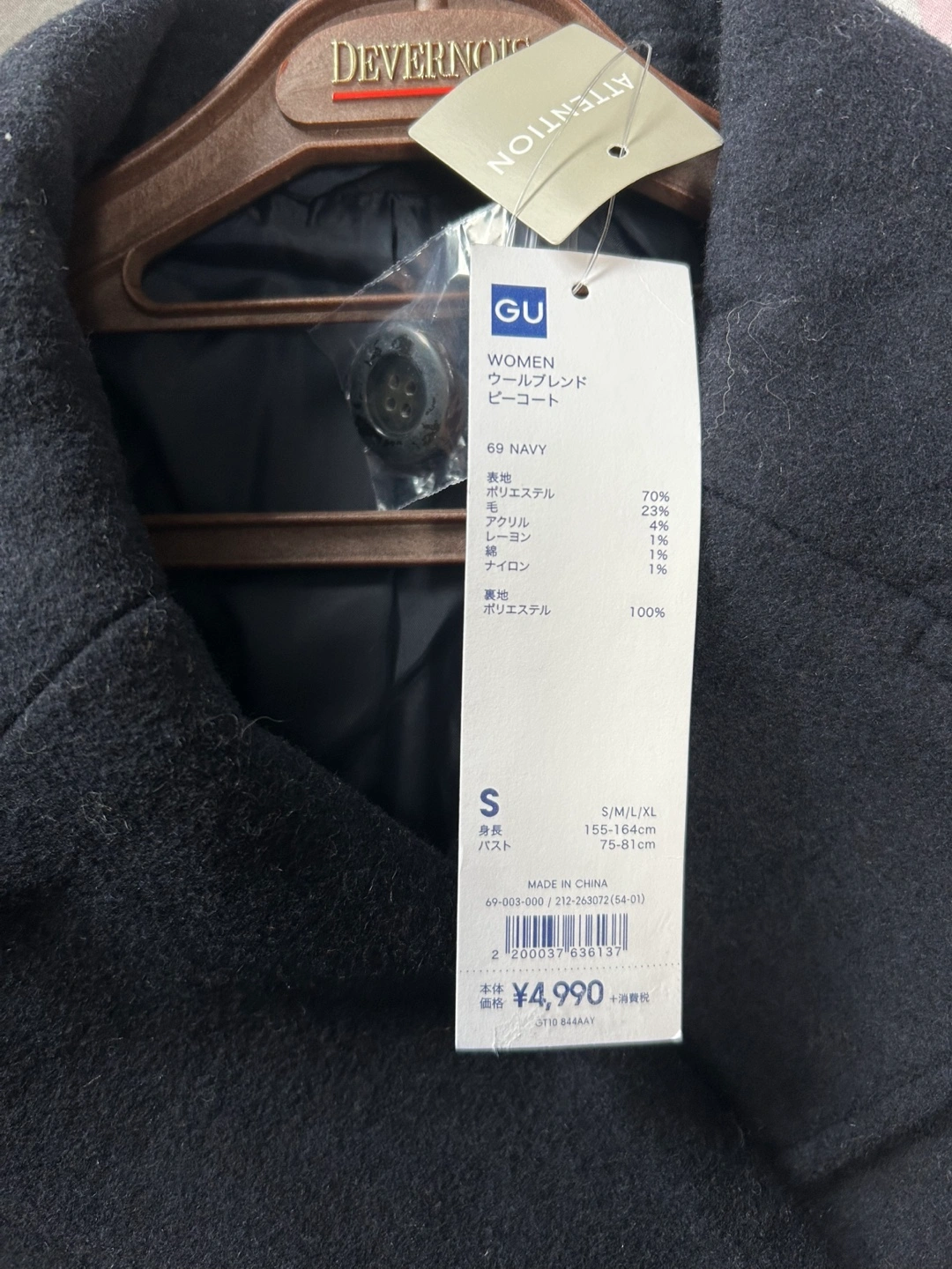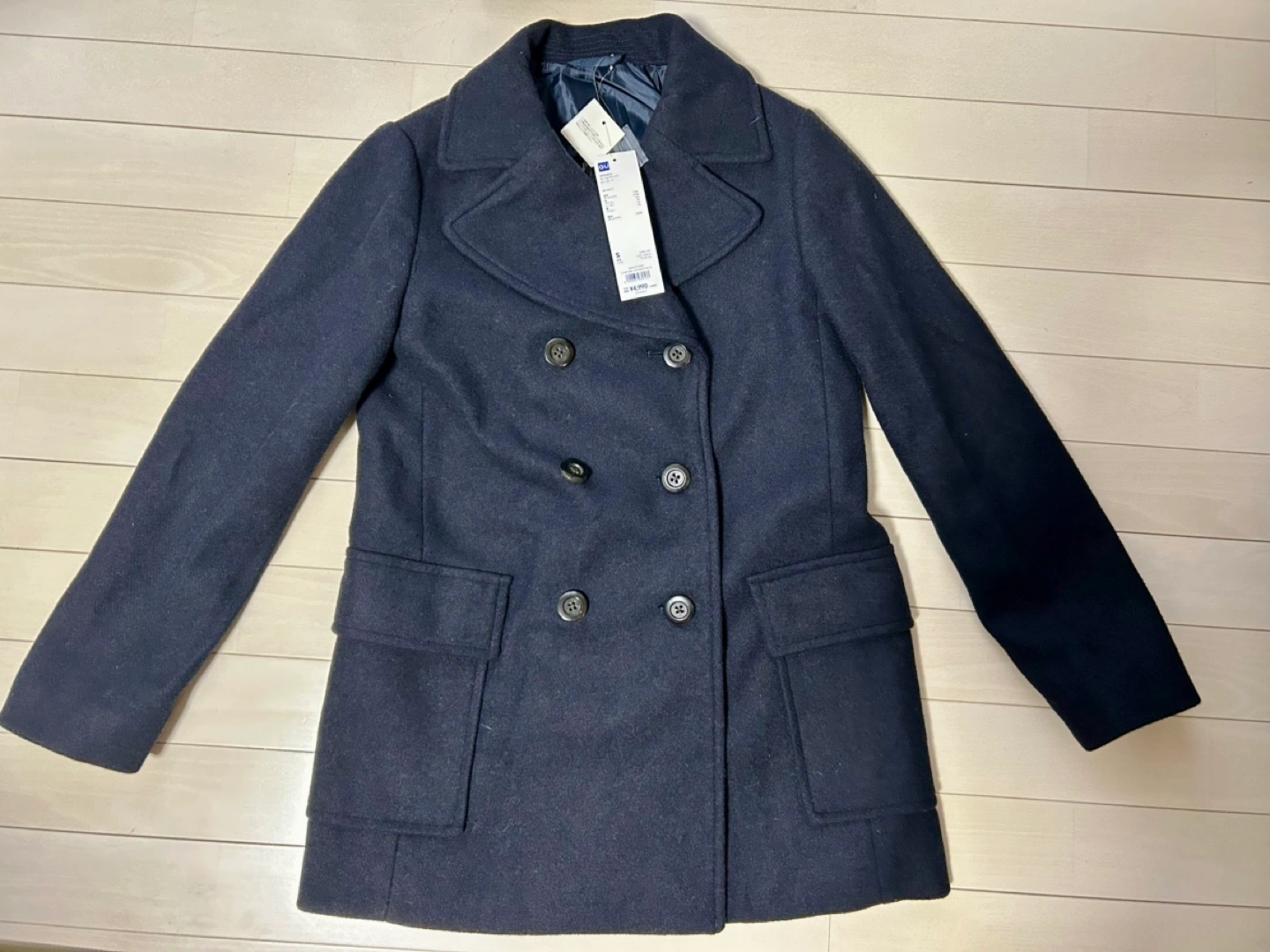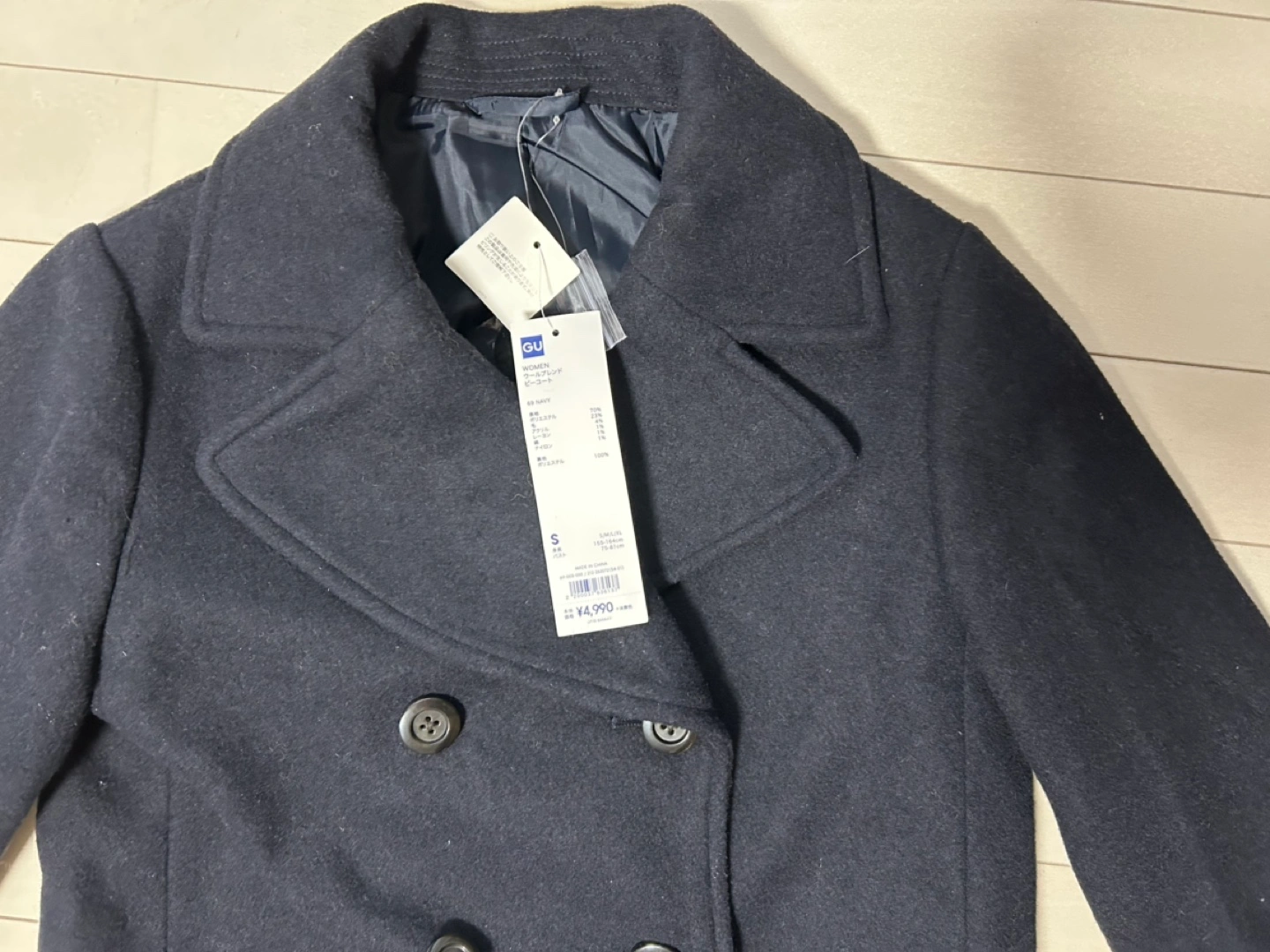 紺のGU製ピーコート、ダブルブレストデザインです。 - ブランド: GU - 色: 紺 .サイズS 身長 155-164cm バスト75-81cm - スタイル: ピーコート - 特徴: ダブルブレスト、ポケット付き WOMEN ウールブレンド ピーコート 69 NAVY 表地 ポリエステル 70% 毛 23% アクリル 4% レーヨン 1% 綿 1% ナイロン 1% 裏地 ポリエステル 100% ご覧いただきありがとうございます。