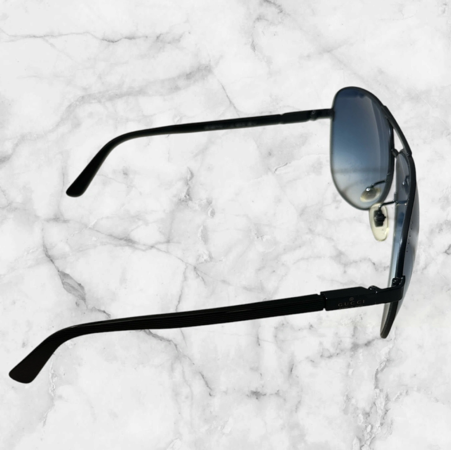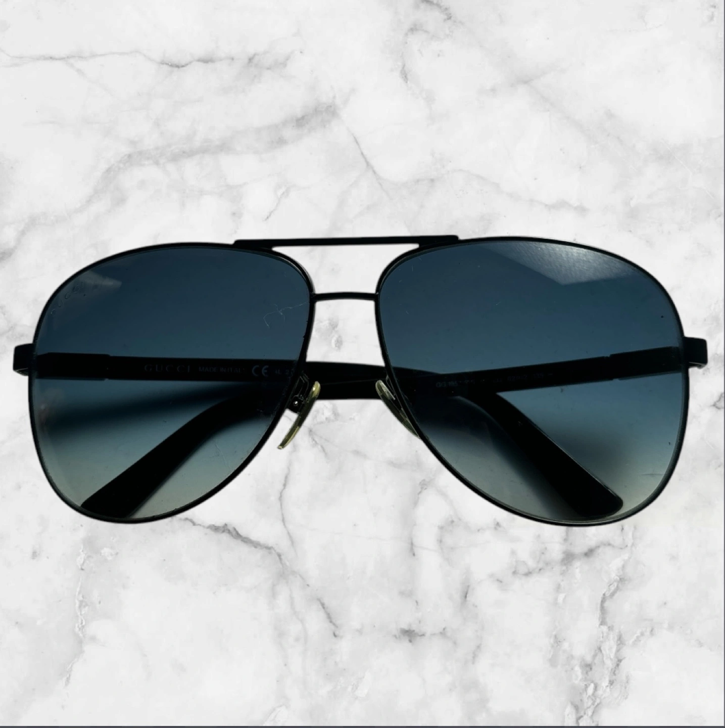 GUCCI サングラス ☆メンズ ☆ケース付き ☆ レンズカラー···ブルー アームのデザインもオシャレです。 ケースはボロボロですが、お付けします。 サングラスは使用による細かな傷や汚れ等あるかと思いますが、目立った傷等は見当たりません 中古になりますので、ご理解のうえご購入ください! NC.NR!! 【ブランドの魅力】 GUCCIは、ラグジュアリーなファッションアイテムで知られるブランドです。このサングラスは、スタイリッシュでありながら、実用性も兼ね備えています。 【デザインと機能】 アビエーター型のデザインは、どんなスタイルにも合わせやすく、グラデーションレンズが目を保護しつつ、ファッション性を高めます。ブラックフレームは、シンプルでありながら高級感を演出します。 【付属品】 GUCCIのケースが付属しており、持ち運びや保管にも便利です。 - ブランド: GUCCI - 付属品: ケース - レンズ色: グラデーション - フレーム色: ブラック - スタイル: アビエーター 他サイトでも出品中です。 他で売れた場合、急に削除しますので、ご了承ください