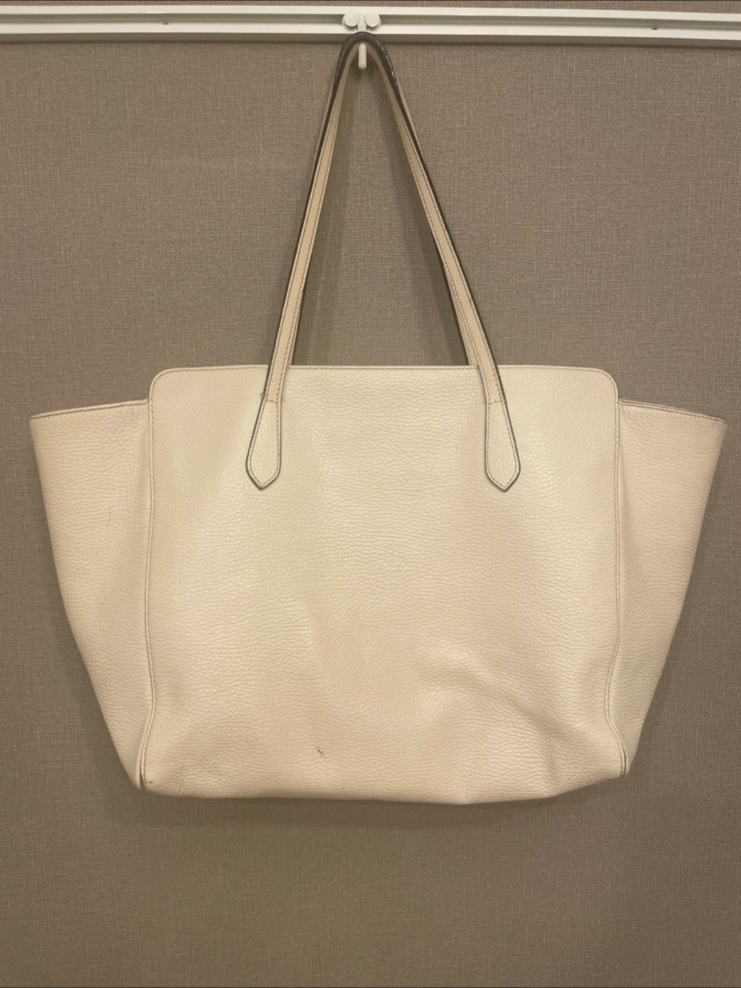 ☆サイズ 縦:約29 横:約34 マチ:約15 ☆商品の状態 多少の使用感はありますがまだまだ使用できる状態です。 ◎四隅のスレ・汚れあります。 (写真3枚目ご確認ください) ◎後ろに傷あります。 (写真5〜6枚目ご確認ください) ◎持ち手・付け根部分 ひび割れ あります。 (写真7〜9枚目ご確認ください) ・ブランド:グッチ ・トー トバッグ ・カラー:アイボリー ・使用感あり