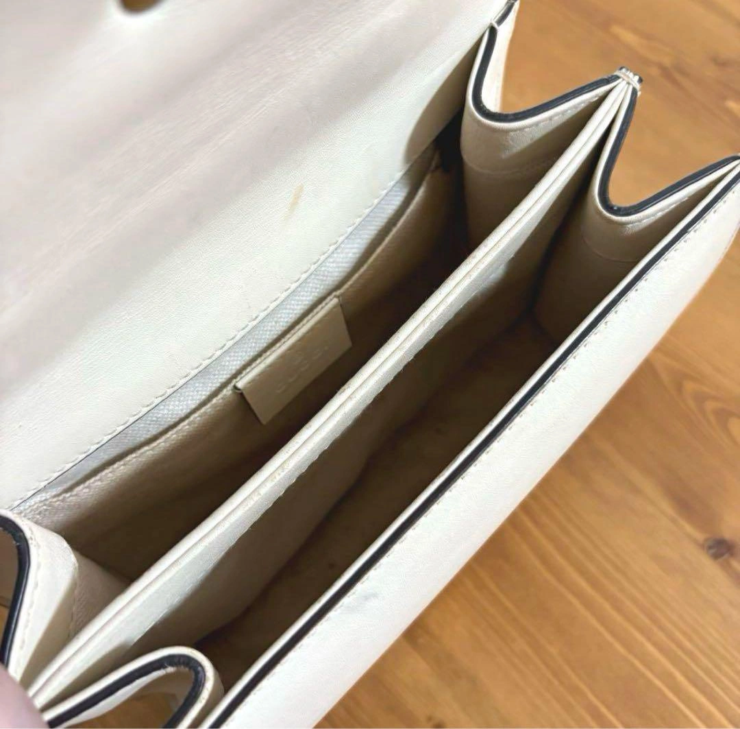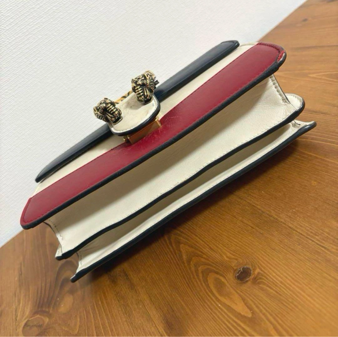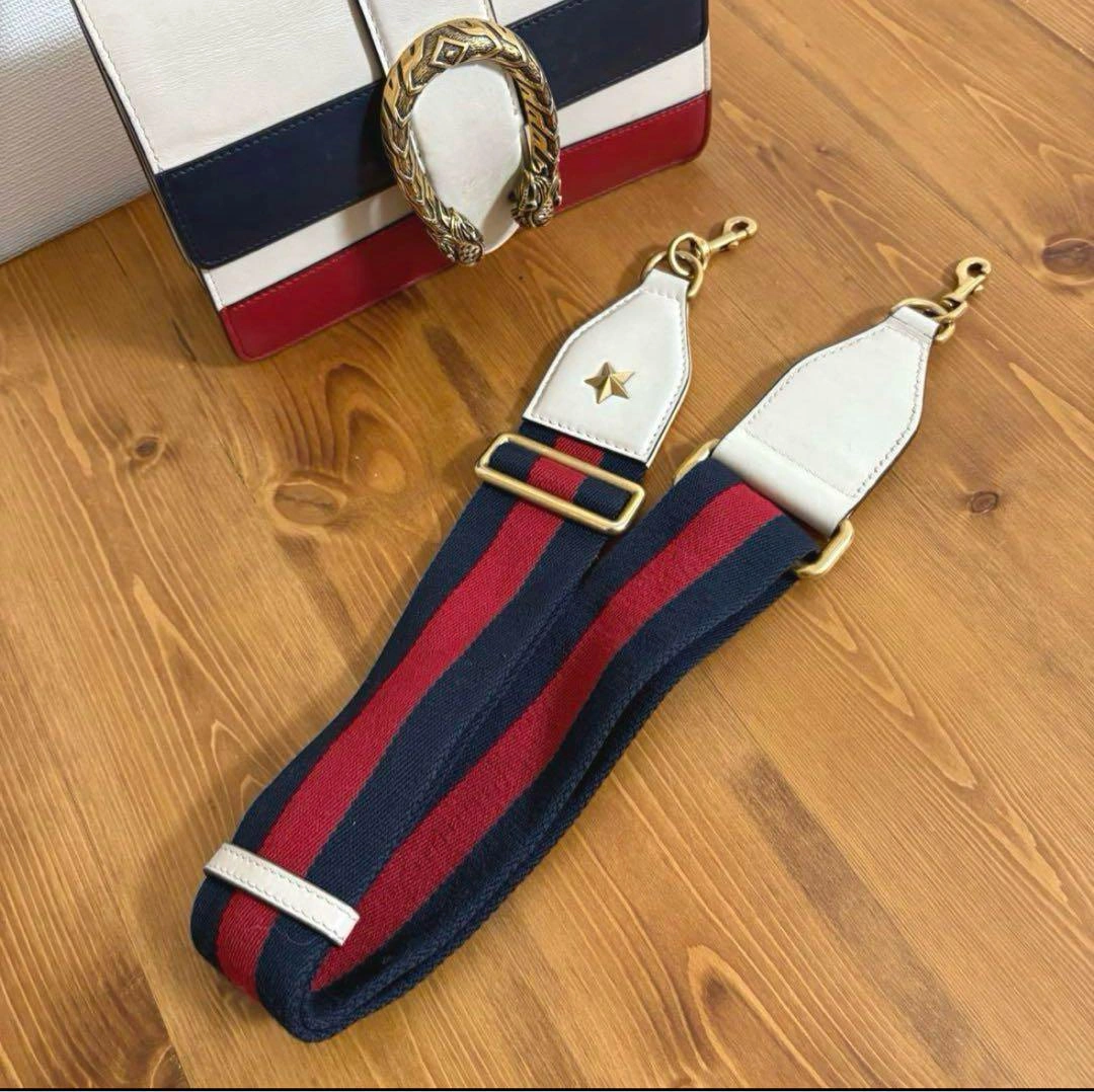128,000円→ お値引き致しました! 【サイズ】 約 W20.5 × H14 × D7cm 【カラー】 アイボリー ネイビー レッド系 金属: ゴールド 【素材】 レザー 【詳細】 GUCCI(グッチ) DIONYSUS ディオニュソス 2way バッグ 銀座の正規店にて購入。 上品なミニバッグを飾るタイガーヘッドはギリシャ神話の神ディオニュソスに由来するモチーフ。神話では、ディオニュソスはゼウスが遣わした虎に乗ってティグリス河を渡ったと言われています。 ショルダーにもハンドバッグにもなる2way仕様でコーディネートや気分によって使い分けができます。 華やかなトリコロールカラーはコーディネートのアクセントに。バンブーの持ち手は上品で落ち着き感があります。 華やかなバックでフォーマルなパーティーにも、ベルトを付けてカジュアルにも使っていただけると思います。 【状態】 外側、内側、全体的に汚れございます。バンブーの持ち手の表面に細かなヒビが入ってますが、使用に問題はございません。 壊れはございませんので問題なくお使いいただけますが、タフに使った中古品・自宅保管のため、神経質な方はご遠慮下さい。気になる点は購入前にコメント下さい。 【その他】 大変気に入っていた物ですので、またどなたかにお使いいただけたら嬉しいです。使用感にご納得いただけましたらご購入ください。 突然商品を削除する可能性がありますので、気になりましたらお気軽にコメント下さいませ。 スモール トップハンドルバッグ ショルダーストラップ レア 希少