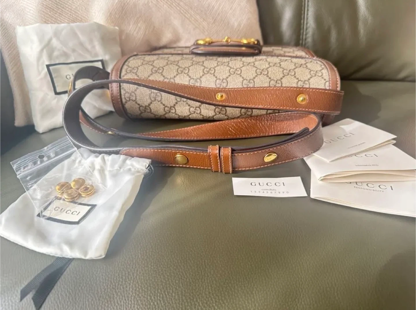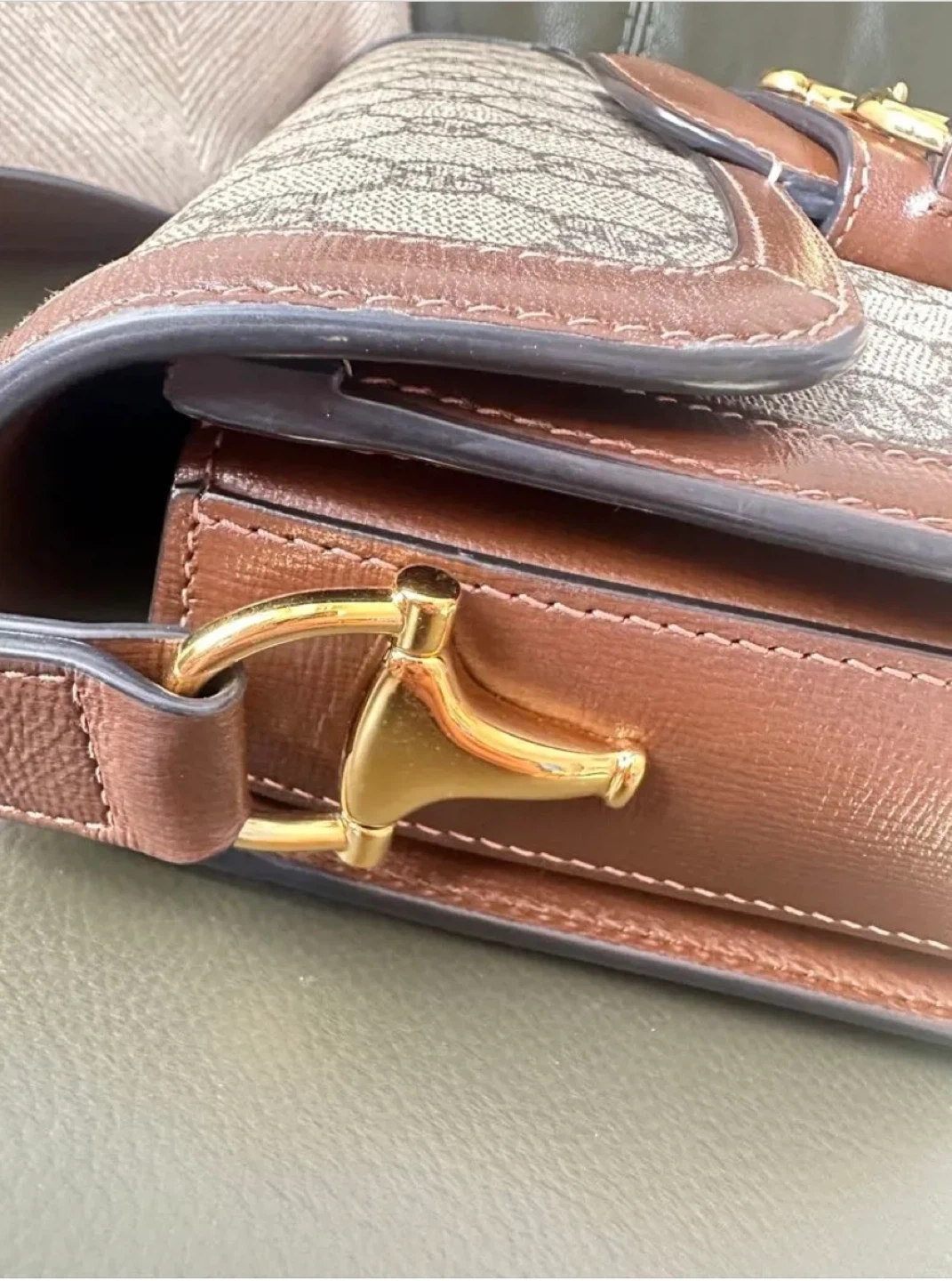 GGパターンのベージュとブラウンのショルダーバッグ 三年前に羽田空港で購入しました。 数回のみの使用で、全体的にとても綺麗な状態です。 大切に保管しておりましたが、使用機会がないため出品いたします。 【ブランド】 グッチ 【商品名】 グッチ GUCCI HORSEBIT 1955 602204 92TCG ショルダーバッグ 【通称】 GUCCI HORSEBIT 1955 【素材】 GGスプリームキャンバス 【対象】 メンズレディース 【サイズ】 横x縦x幅(マチ): 25cmx18cmx8cm ストラップ: 60/99cm 【カラー】 8563/BEIGE+BROWN(ベージュ+ブラウン) / GOLD(ゴールド) 【詳細説明】 内側:ファスナーポケット1 ポケット2 使用感の少ないきれいな中古品です 部分的に擦れ、黒ずみ、小傷、くすみ等があります。 ■ご注意ください■ ※付属情報について:表記または、写真に掲載のないものは付属しておりません。 また、表記にないキズや汚れ等がある場合があります。