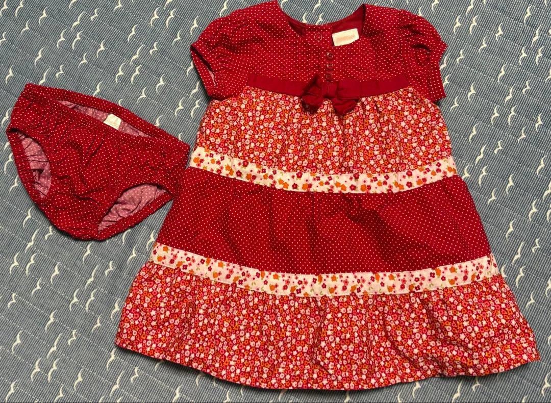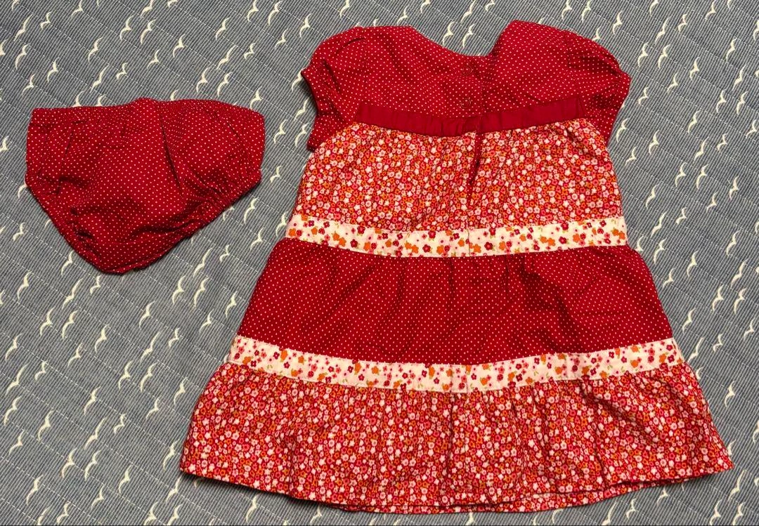とても可愛くて気に入って着せていましたがサイズアウトしましたので着てくださる方にお譲り致します。 ドット柄と花柄のコンビネーション、100%コットン製の赤いワンピースとおむつカバーのセット。 - ブランド: GYMBOREE - サイズ: 3-6 months - 色: 赤 - デザイン: ドット柄と花柄のコンビネーション - 付属品: おむつカバー - 素材: 100% コットン ご覧いただきありがとうございます。 ジンボリー GYMBOREE ご希望の方はお気軽にご連絡ください。